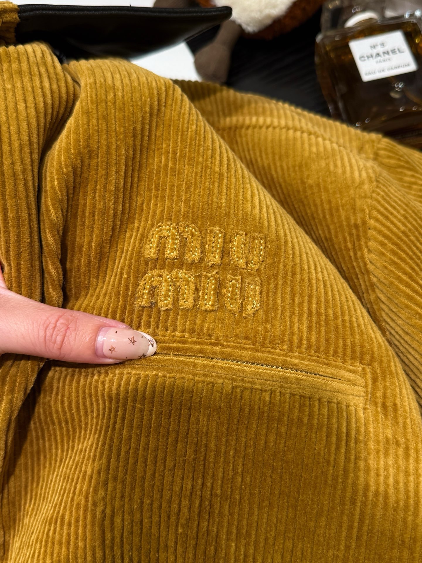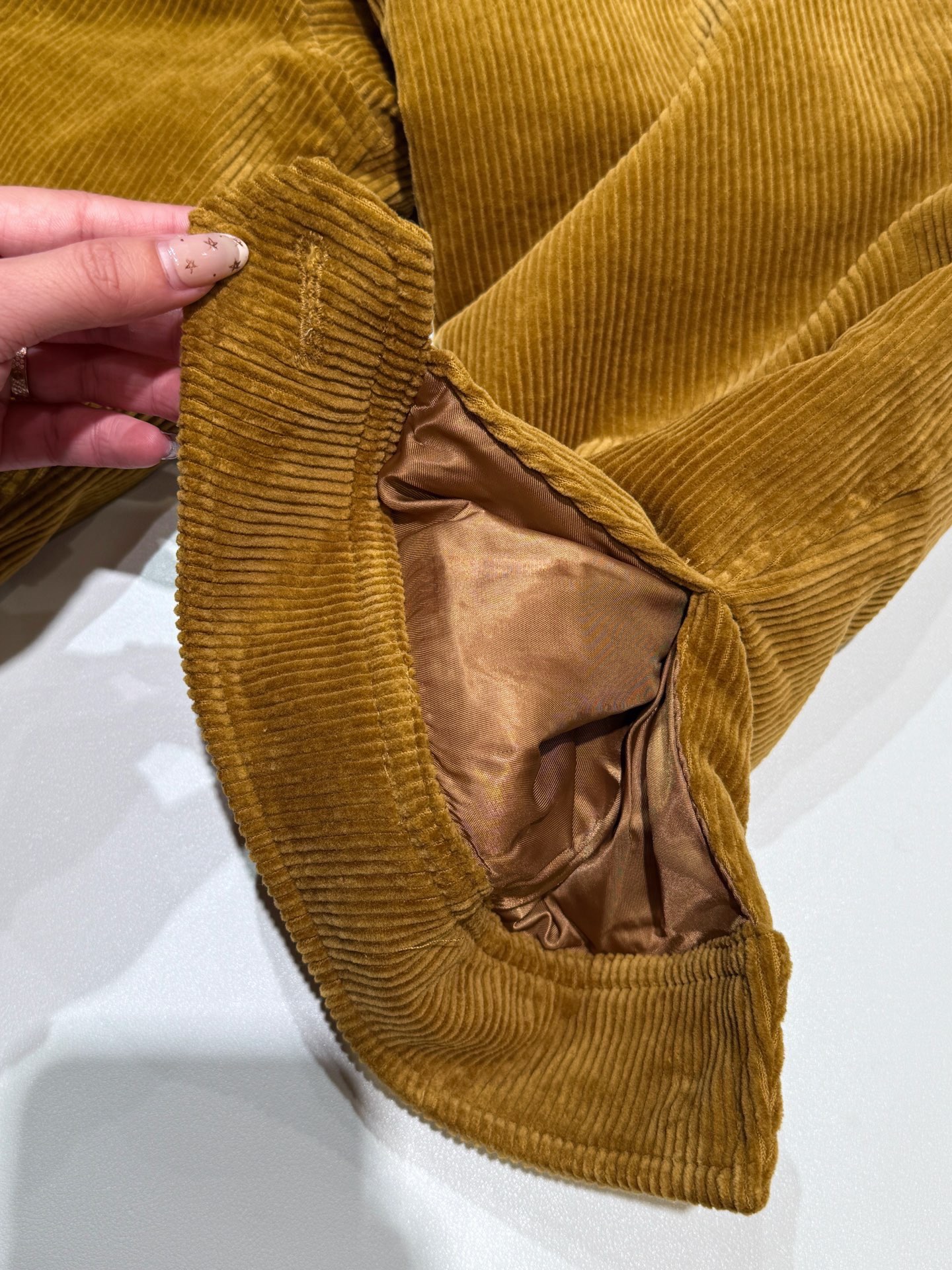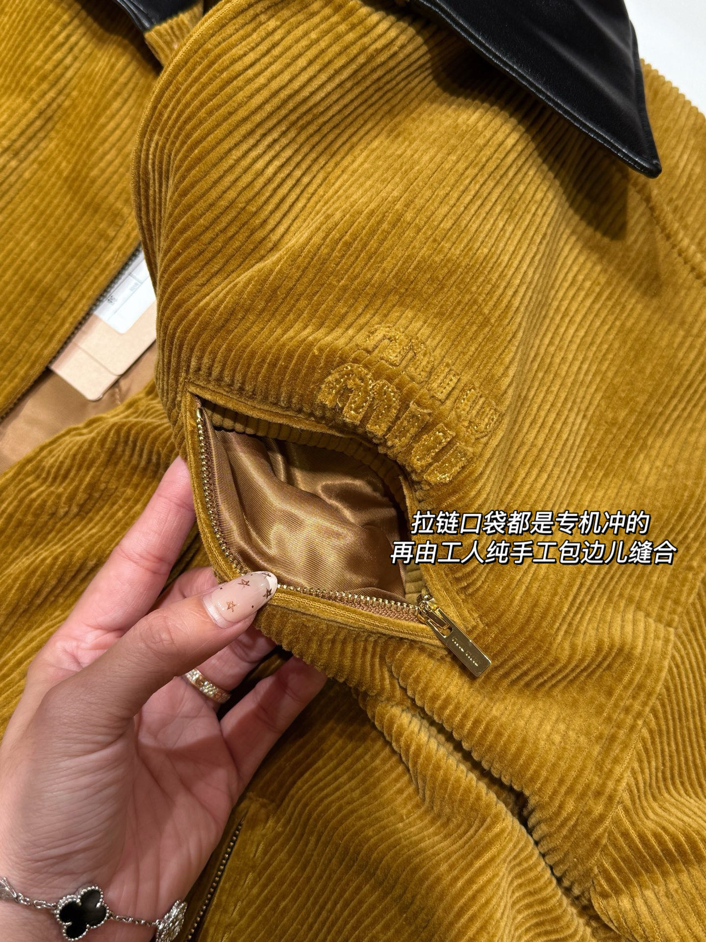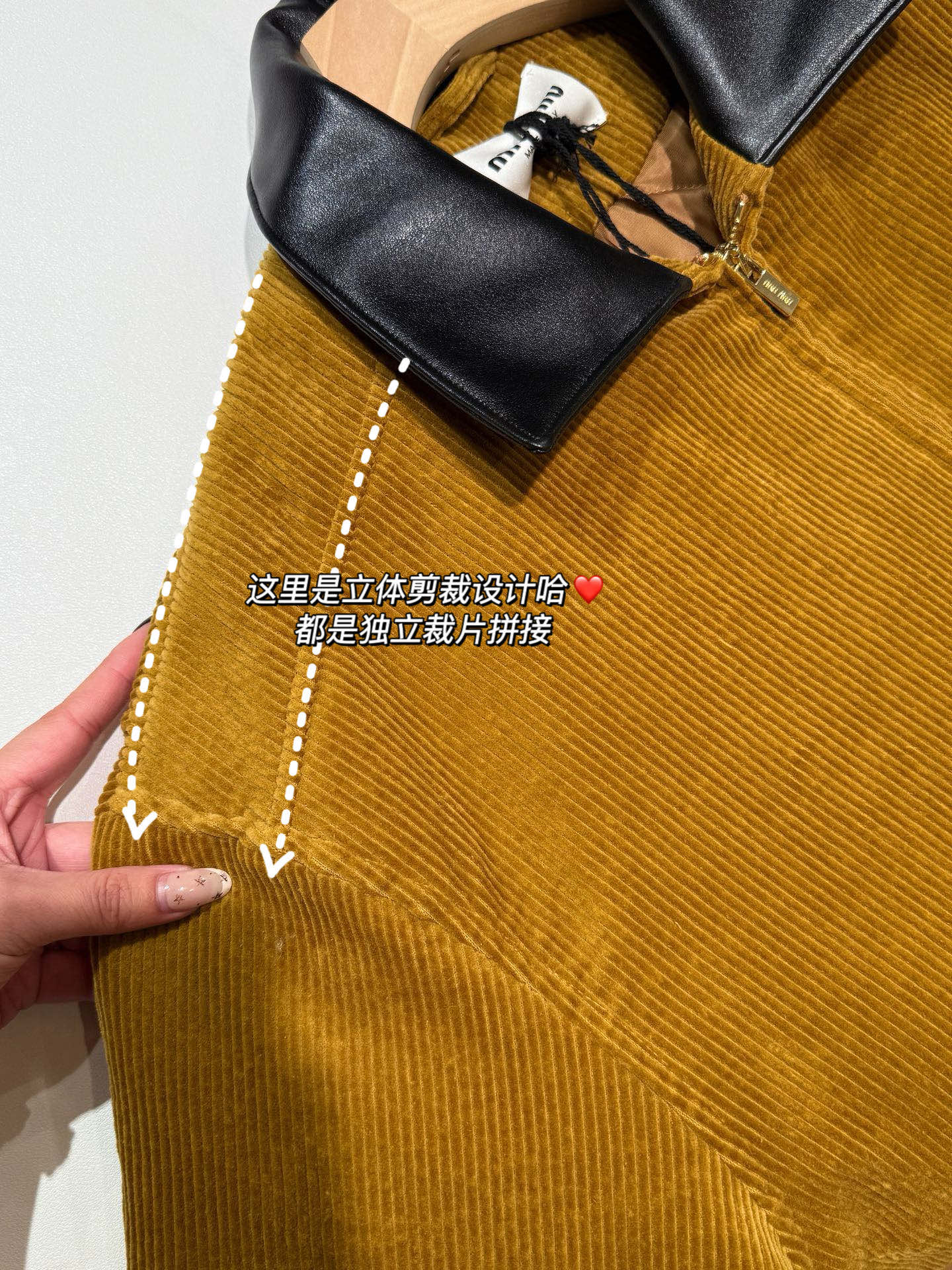 独家miu !!进口的灯芯绒材质,虽小贵 但确实好 独家的魅力在于 所有的用料剪裁与原版一样都是代工的标准化,必须要有十年以上经验的专项服装熟练工才可以 这不是夸张 小作坊每一项都是无法搞定的