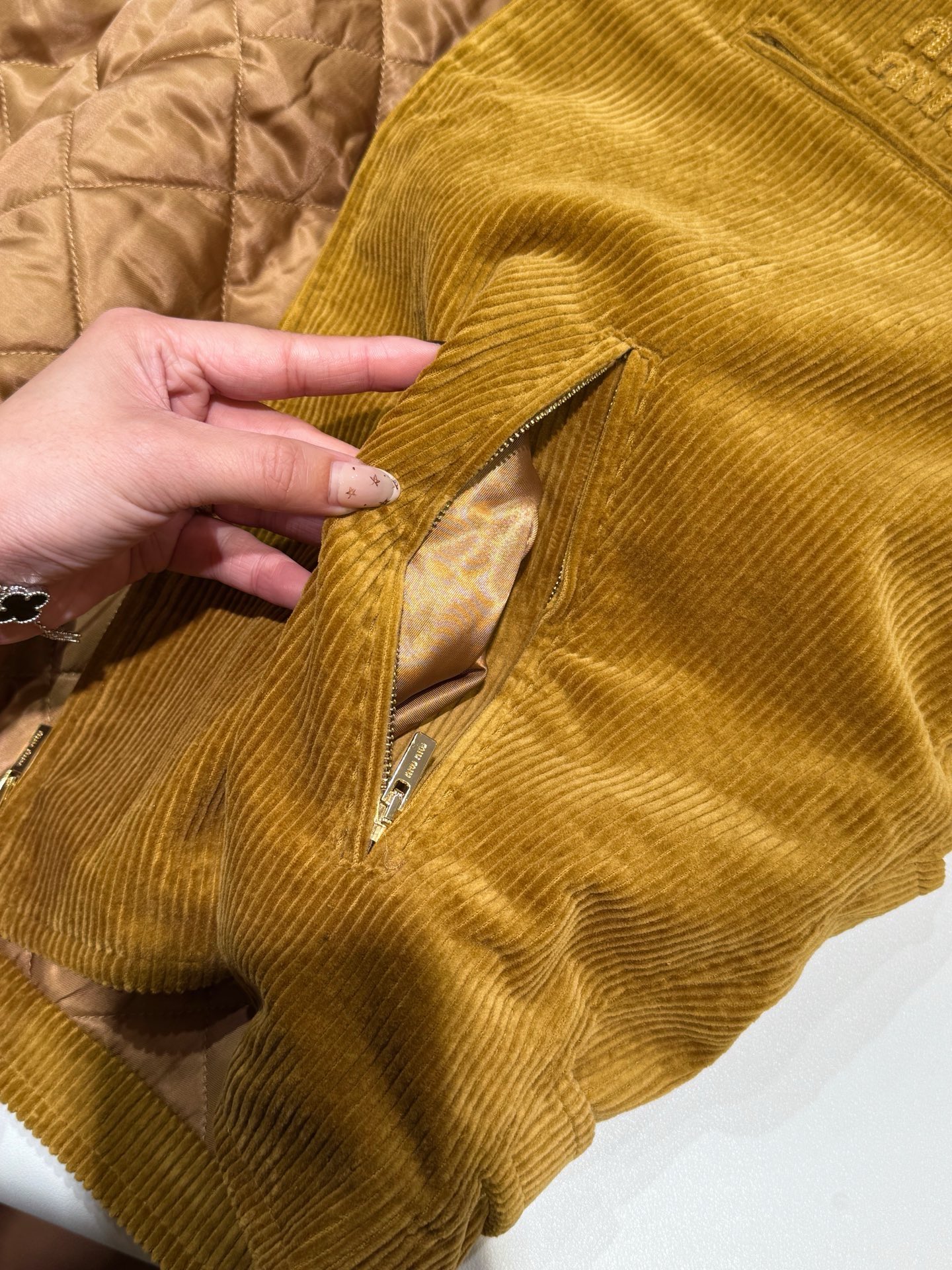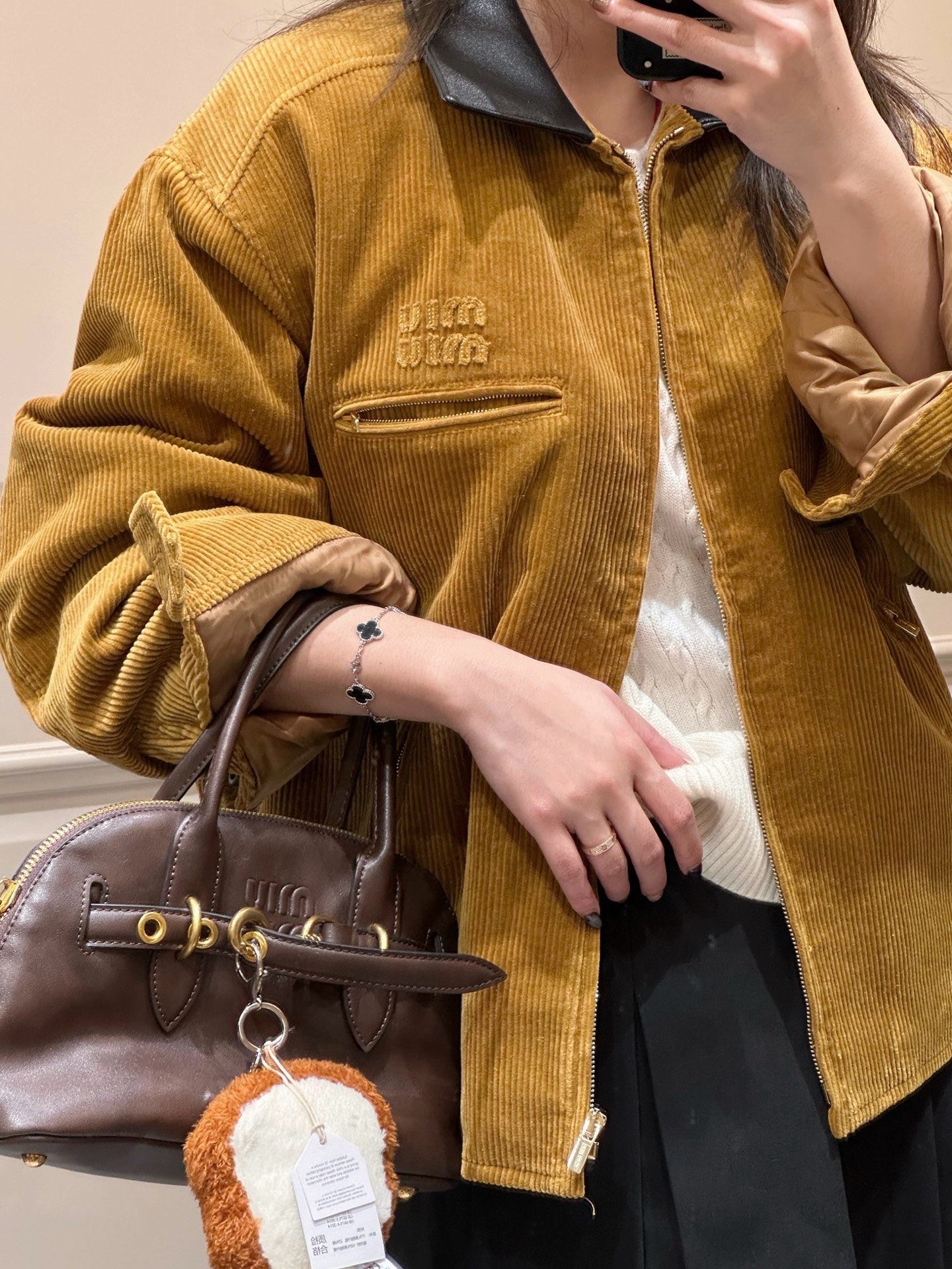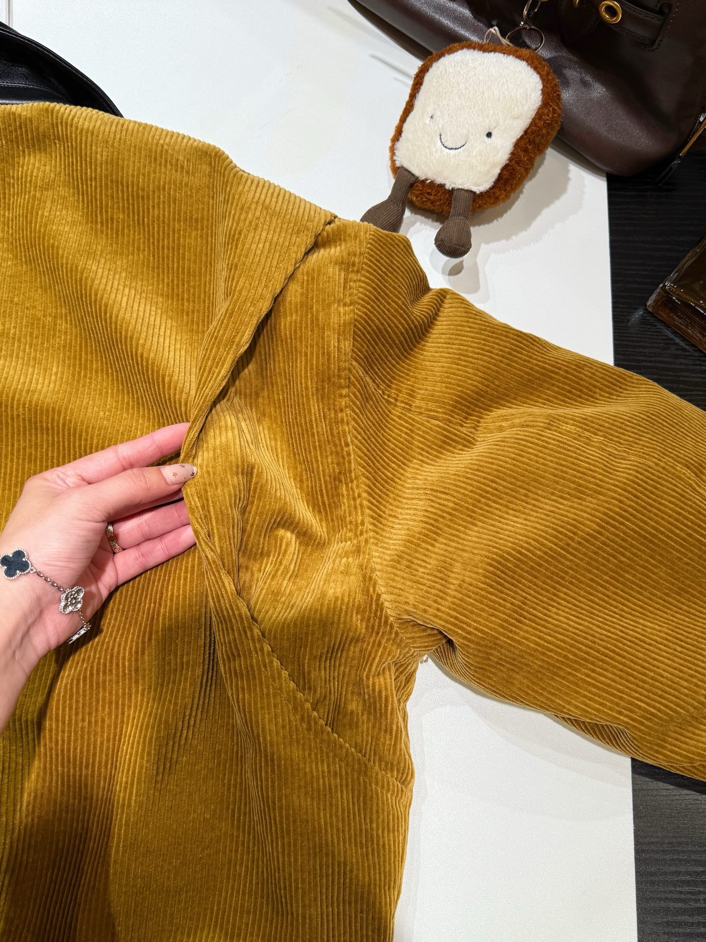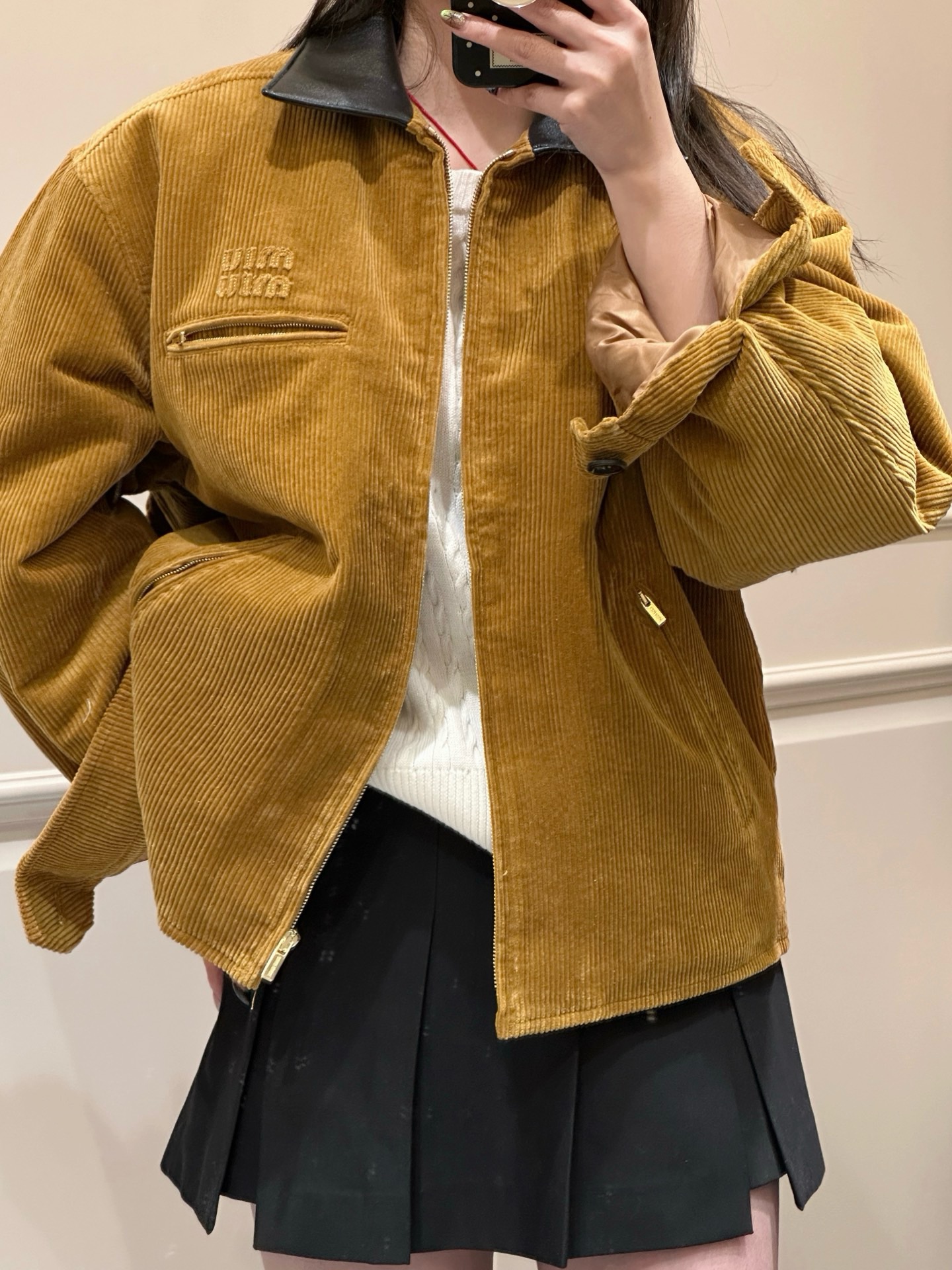 独家miu !!进口的灯芯绒材质,虽小贵 但确实好 独家的魅力在于 所有的用料剪裁与原版一样都是代工的标准化,必须要有十年以上经验的专项服装熟练工才可以 这不是夸张 小作坊每一项都是无法搞定的