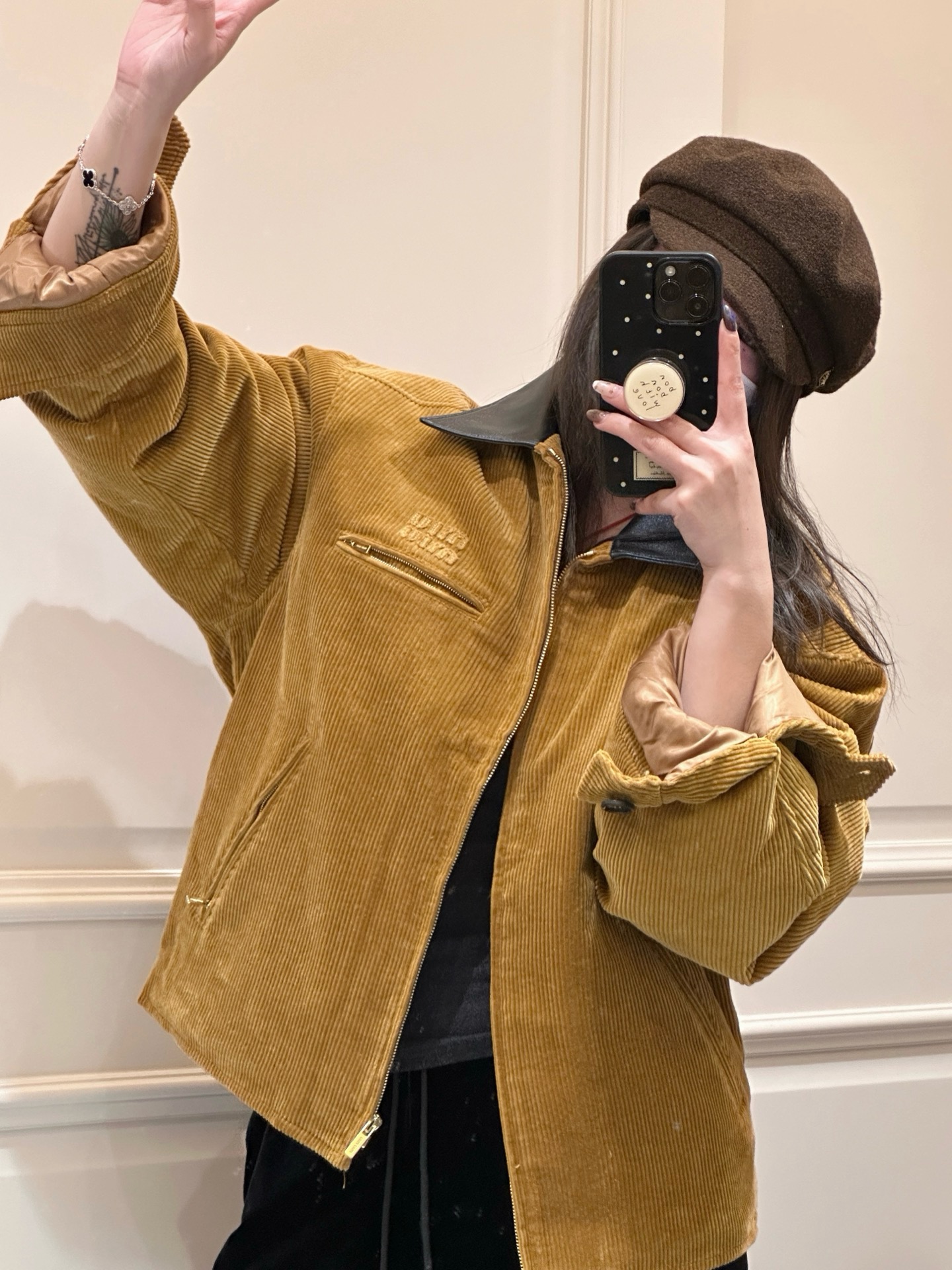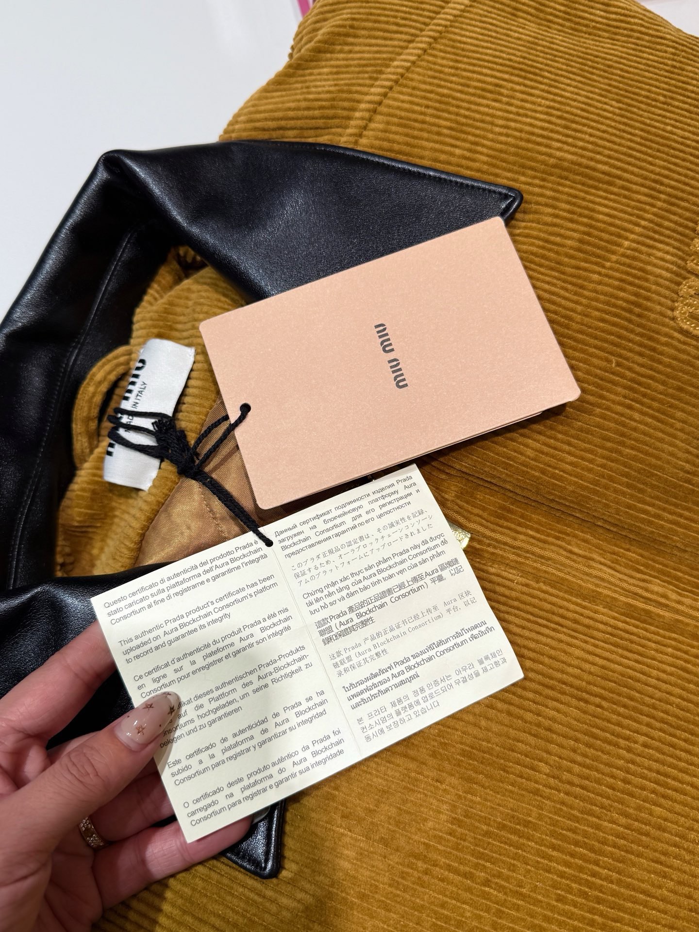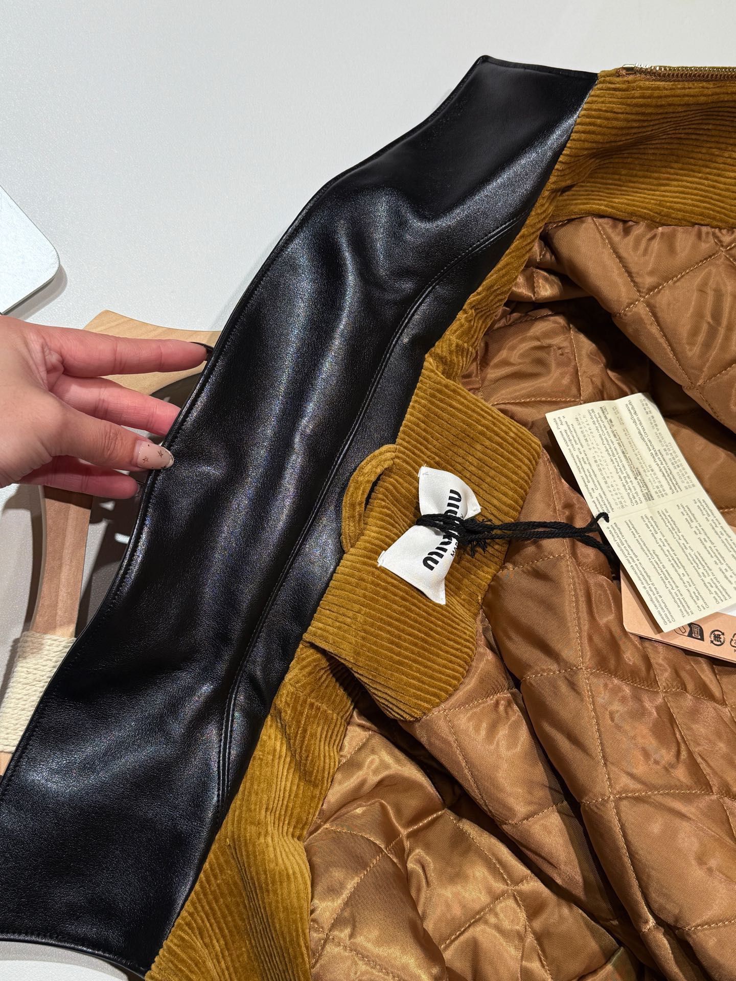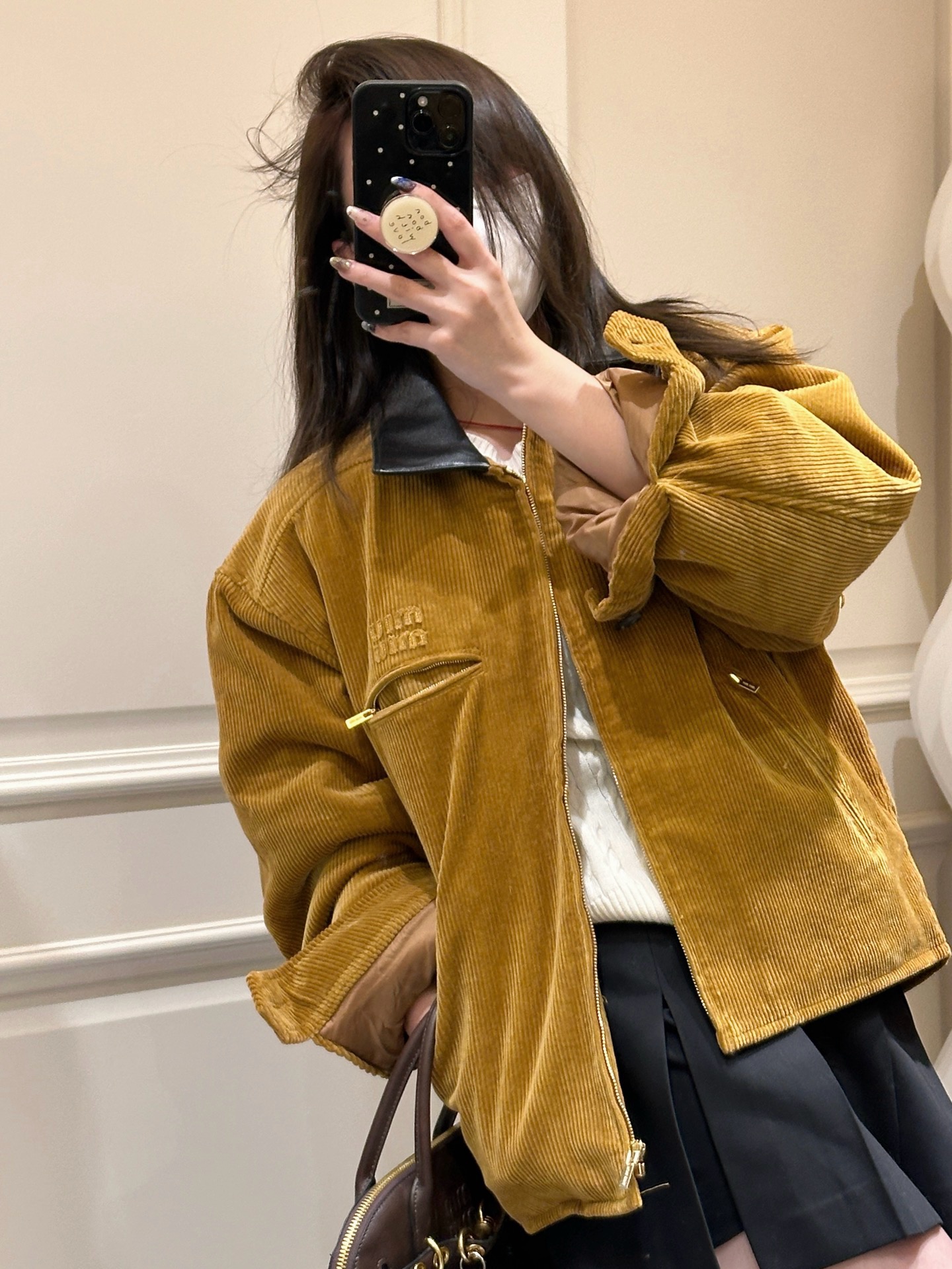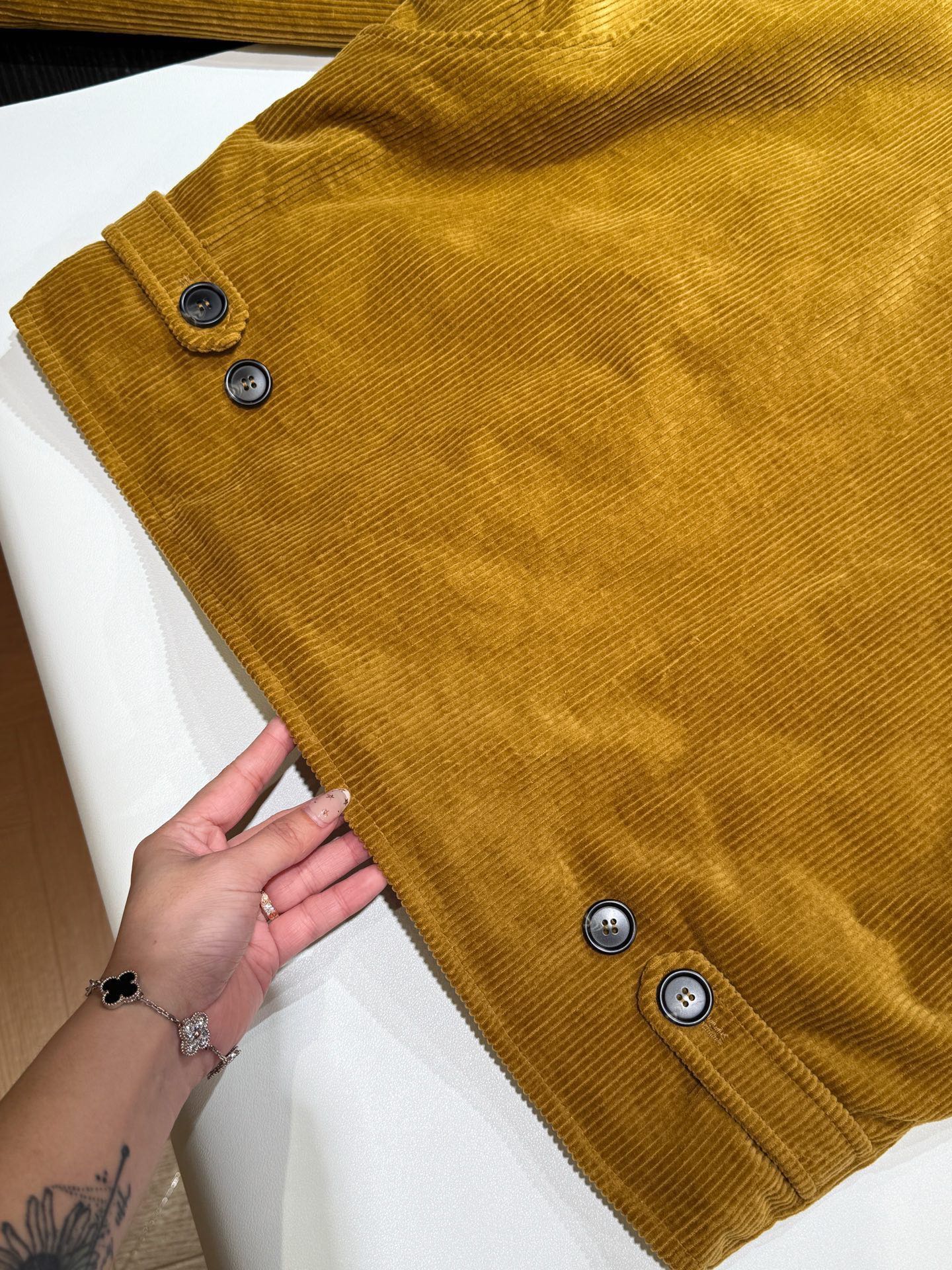 独家miu !!进口的灯芯绒材质,虽小贵 但确实好 独家的魅力在于 所有的用料剪裁与原版一样都是代工的标准化,必须要有十年以上经验的专项服装熟练工才可以 这不是夸张 小作坊每一项都是无法搞定的