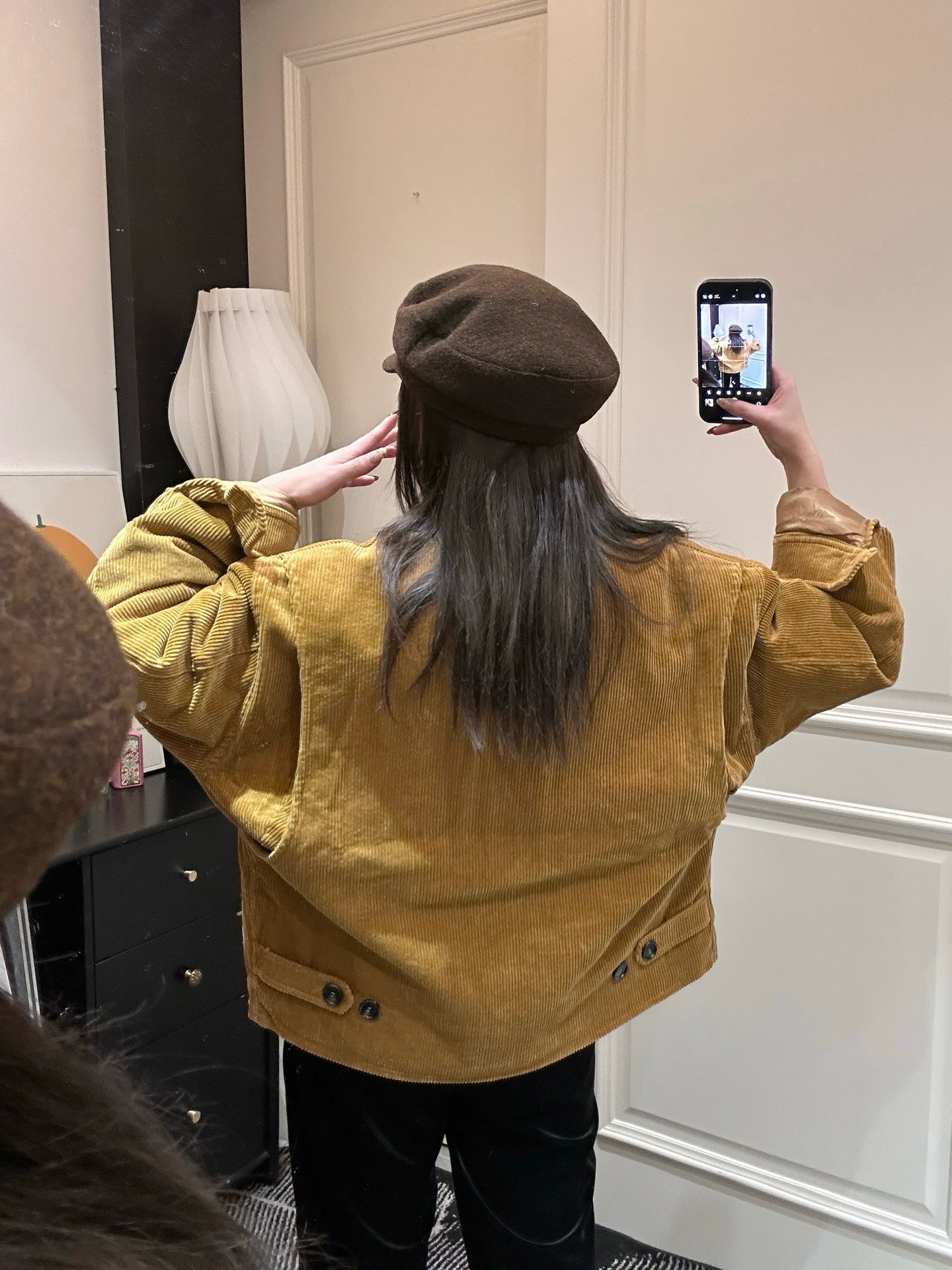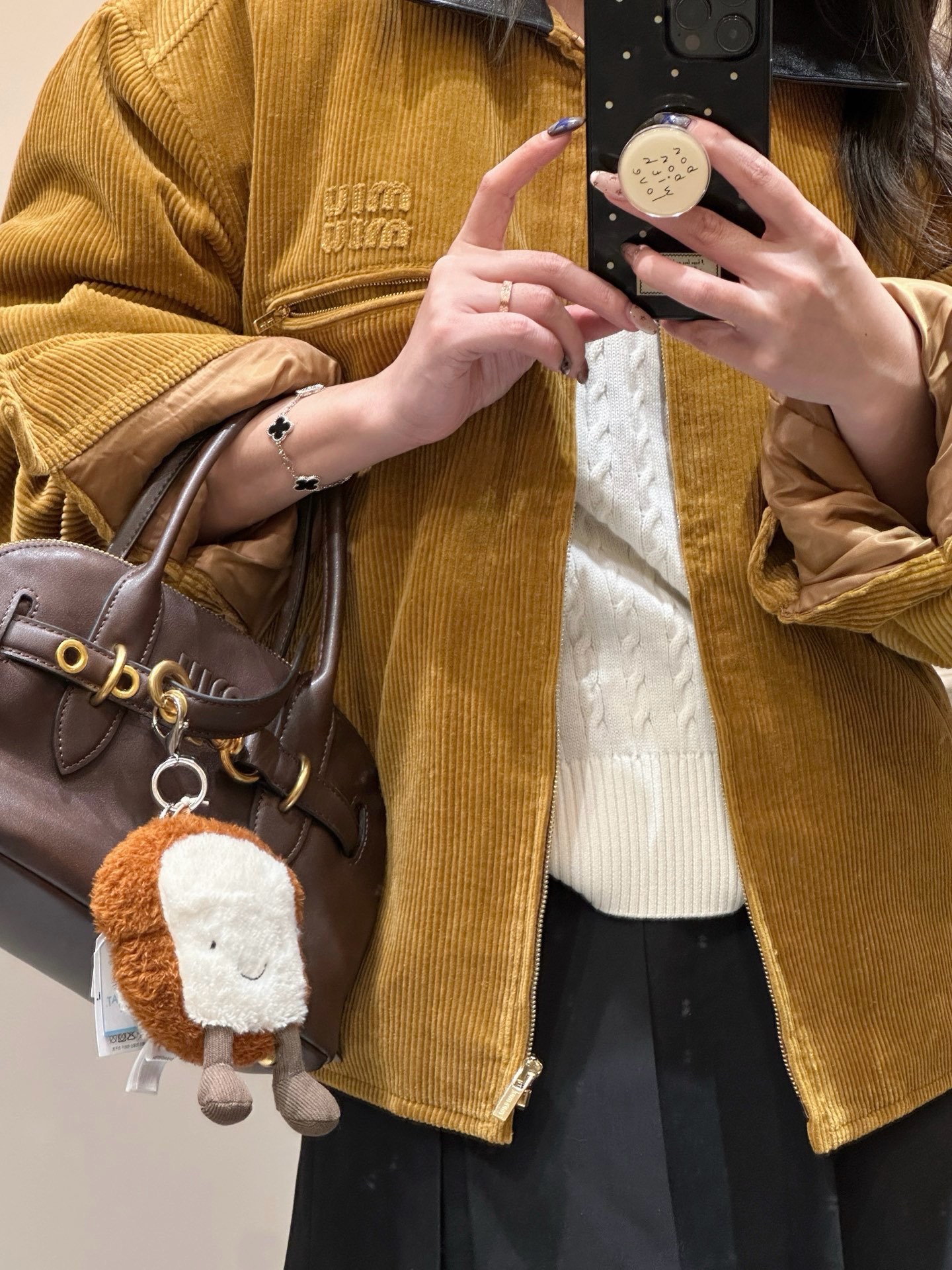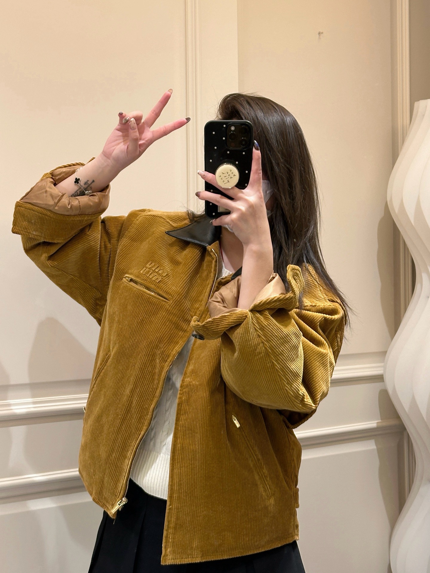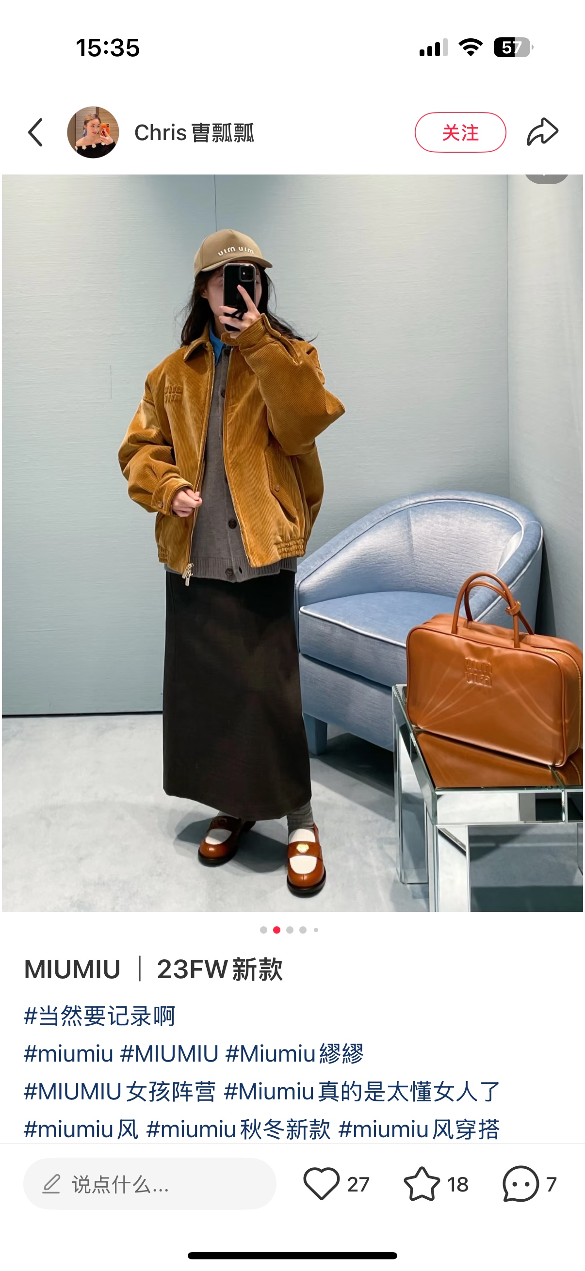 独家miu !!进口的灯芯绒材质,虽小贵 但确实好 独家的魅力在于 所有的用料剪裁与原版一样都是代工的标准化,必须要有十年以上经验的专项服装熟练工才可以 这不是夸张 小作坊每一项都是无法搞定的