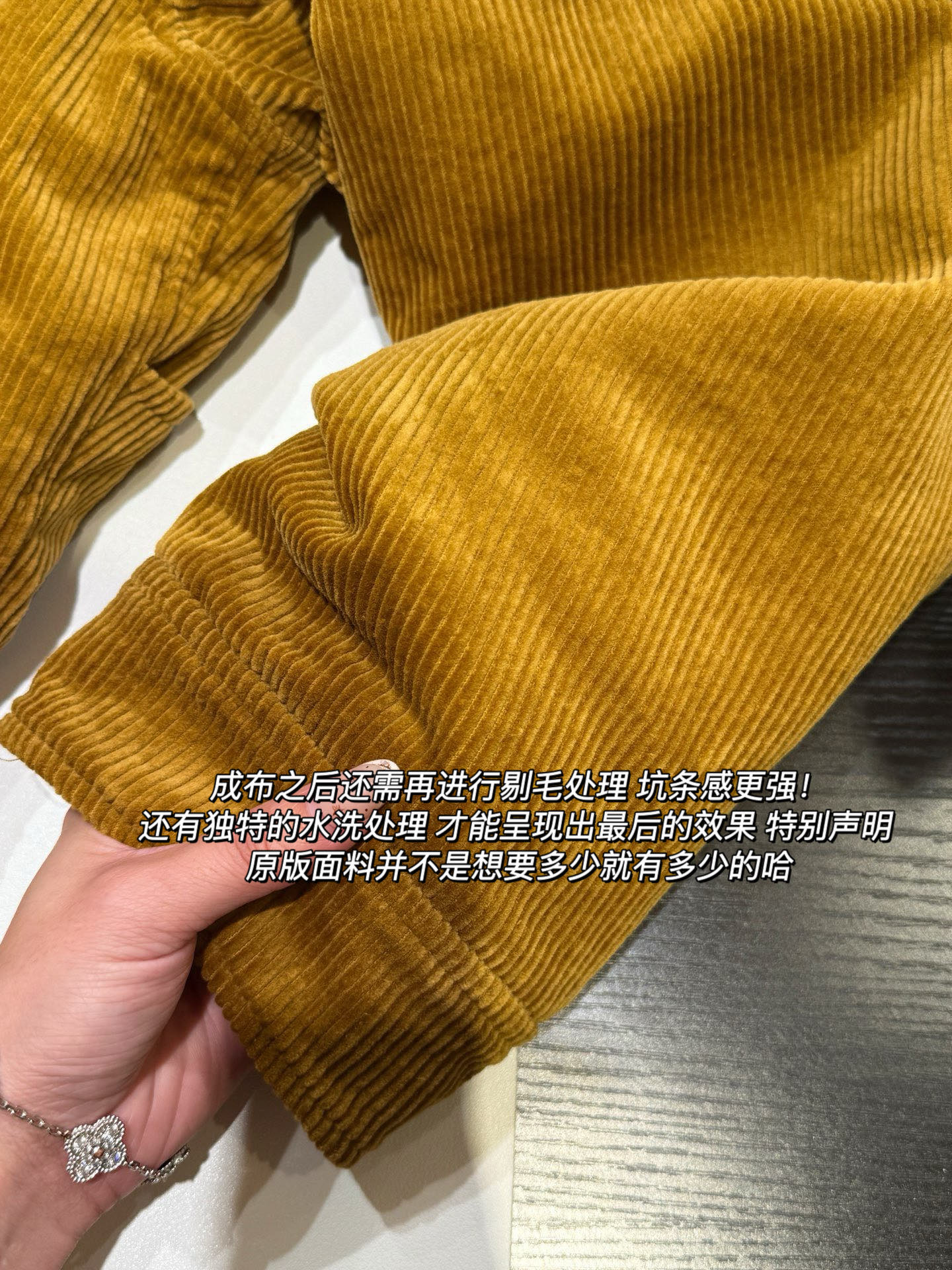 🔺🔺全棉进口高密度超柔灯芯绒 进口顶级灯芯绒 绒面经过纬二重组织织制 由地纬与绒纬交织后割绒形成绒条 绒毛密度和粗细直接影响质感 咱们是𝟖条𝟐.𝟓𝟒𝐜𝐦的粗条结构 更具立体感 这样的结构可以更佳有效的隔绝冷空气 成布之后还需再进行剔毛处理 坑条感更强。还有做洗水处理 使得毛感更柔软 更光亮 不洗水整个绒毛趴在布料上 没有一点光亮度!这也是区别普通灯芯绒的最大特点!