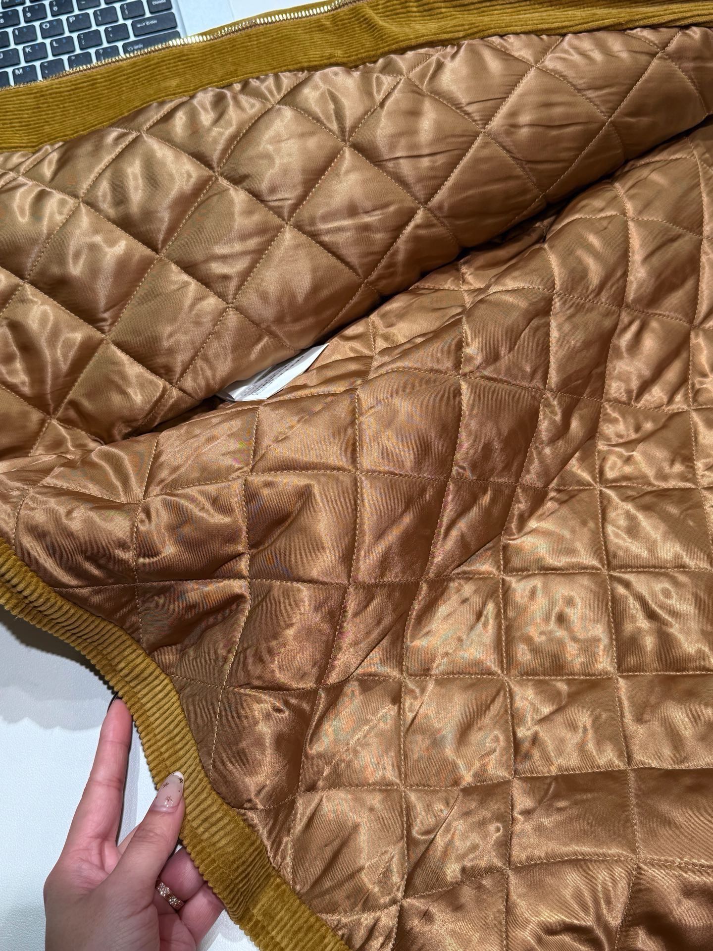 里衬也都是原版50D细纹里 内里填充1800丝绵 再用指定机菱形格行线 保暖度根本没得说 咱们是真正的miu家面料❗️ 市面真的搞不了 而且胚布也都是有限的 并不是想要多少就有多少的 望珍惜