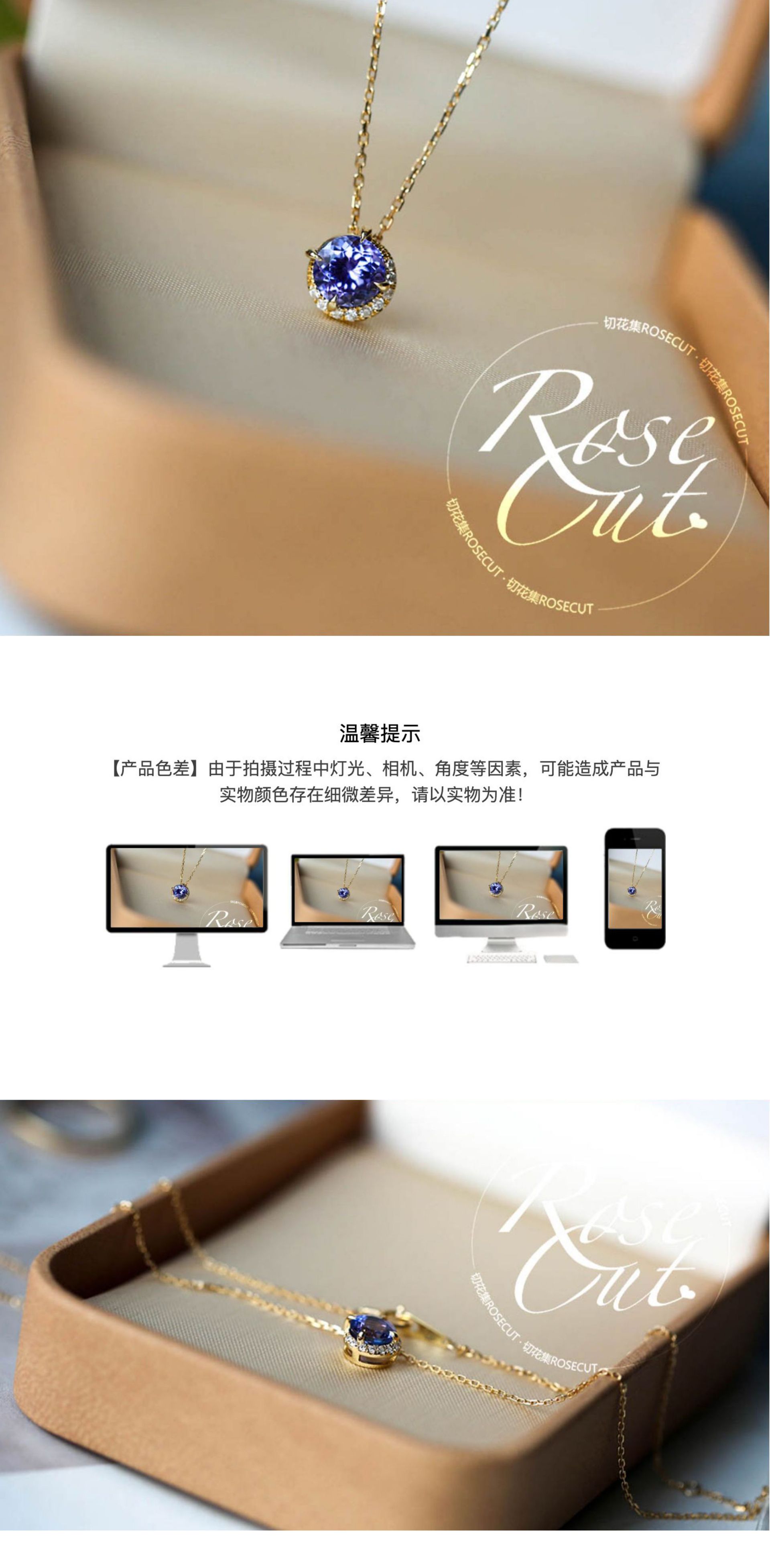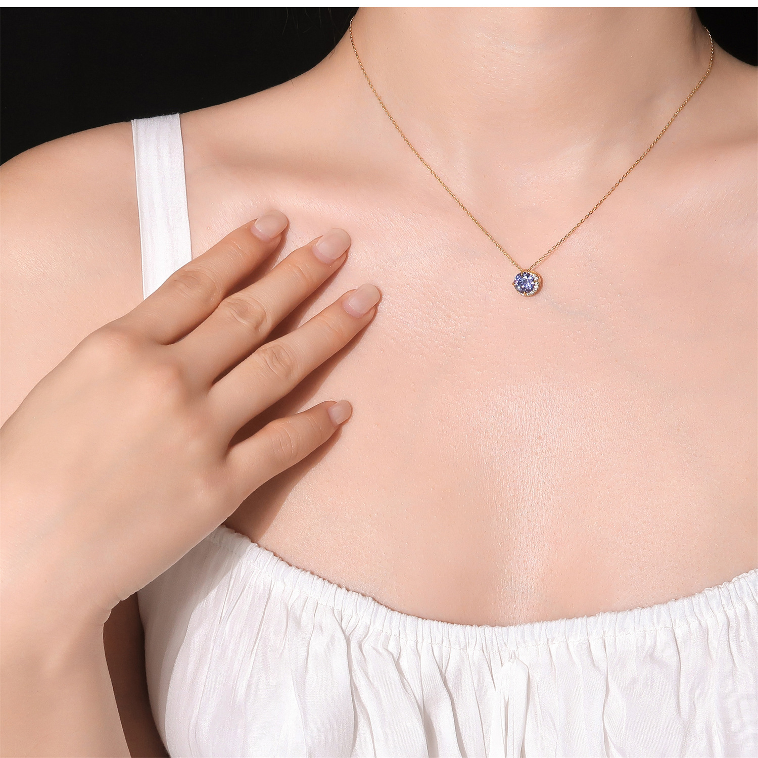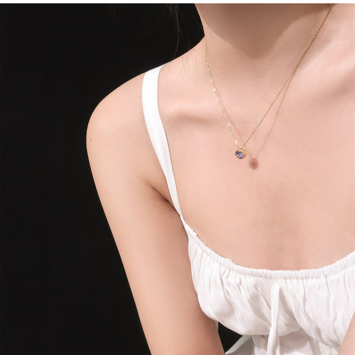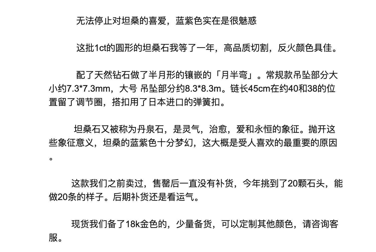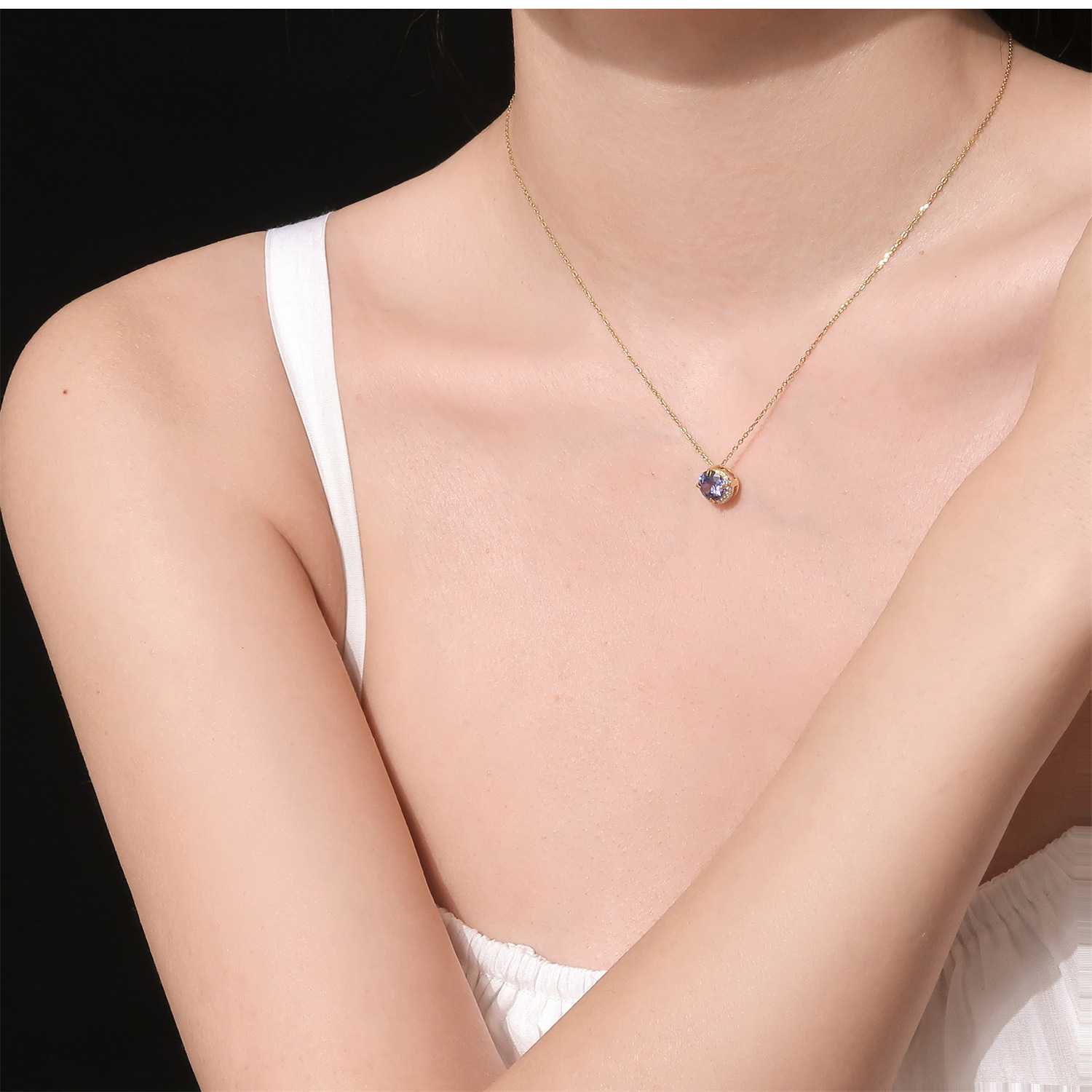雀说《月半弯》日系天然坦桑石镀18K金项链轻奢紫水晶agete阿卡朵吊坠AL QB21