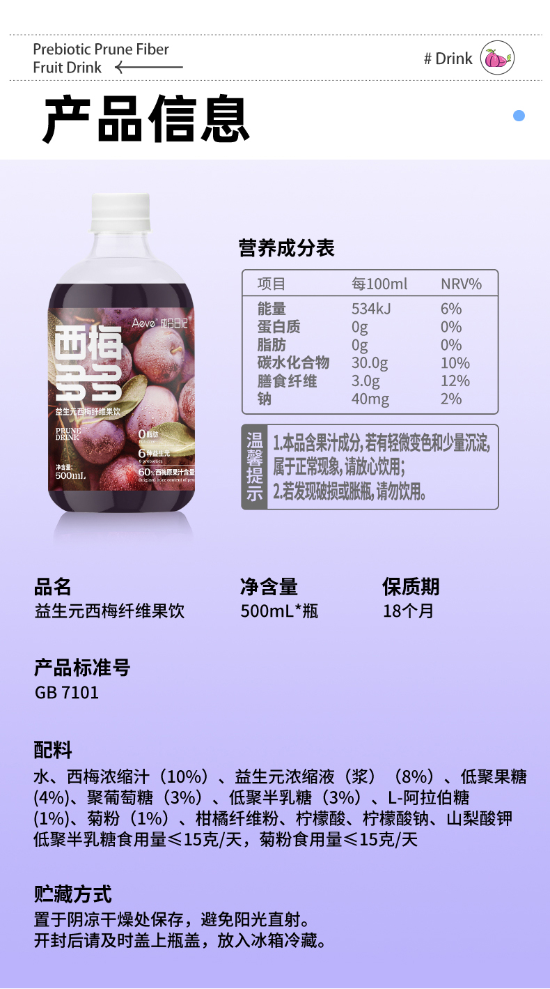 Aeve成分日记西梅汁益生元纤维果饮大餐救星浓缩原浆官方旗舰店