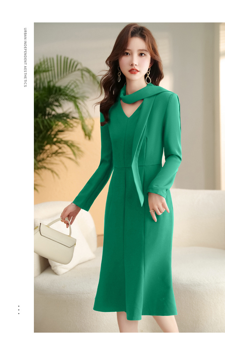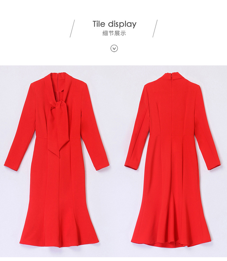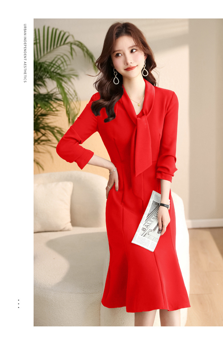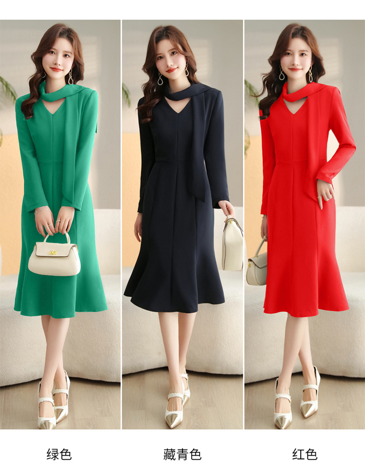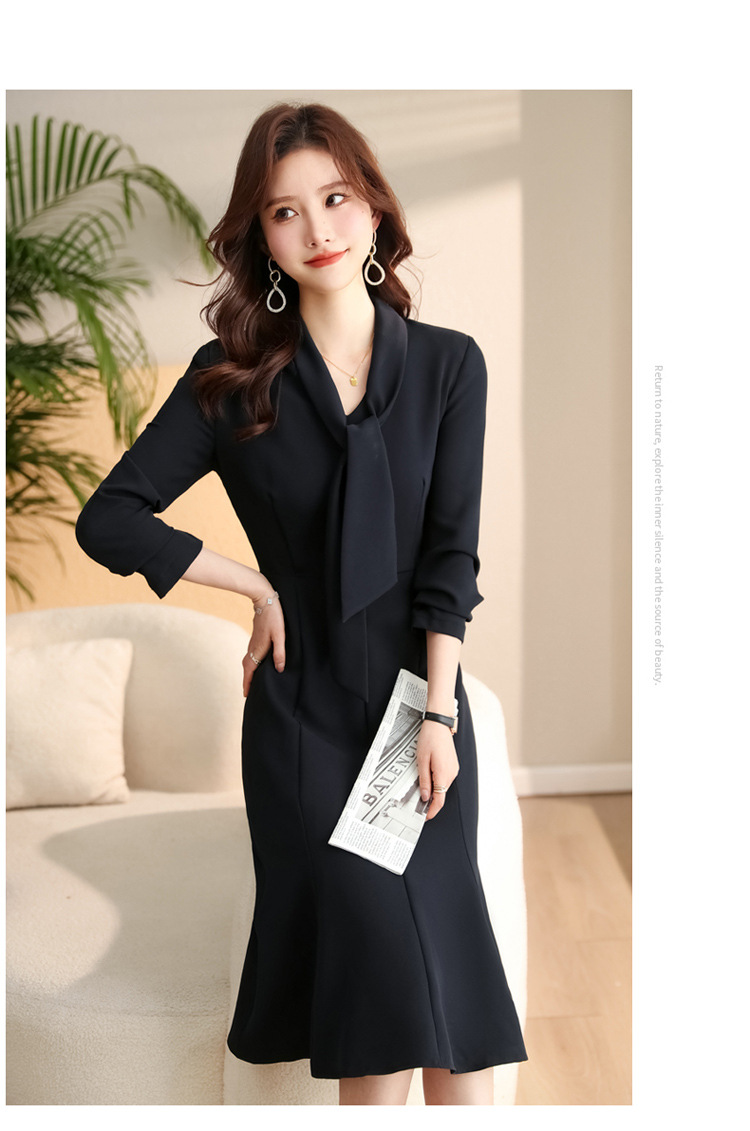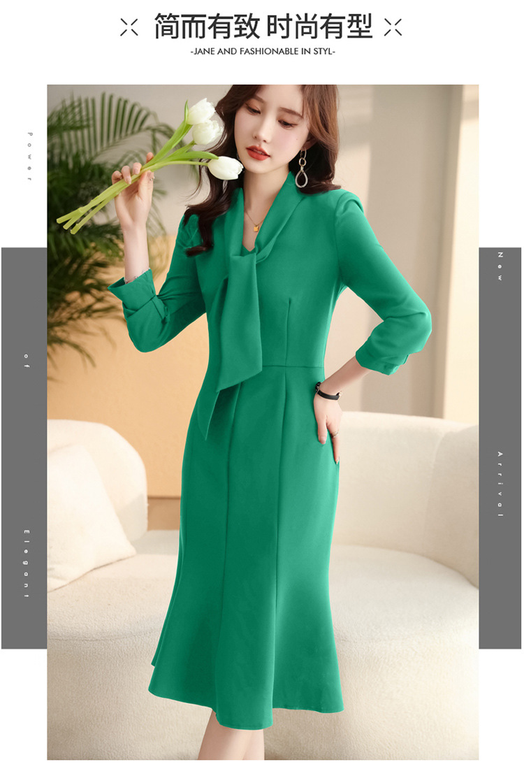 春装女简约时尚,收腰减龄潮流百搭大气修身显瘦鱼尾连衣裙HR-WH23169