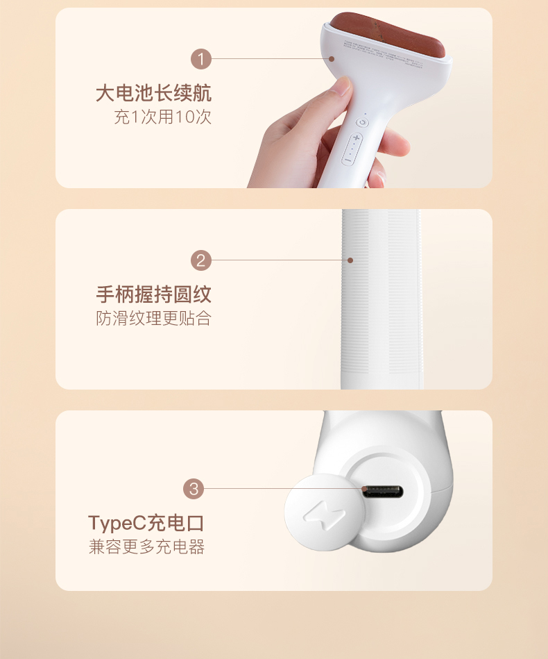 3.如果器具可能被用在一个持续时间,则应调整到推荐连续使用的强度1档及温度低温档上。