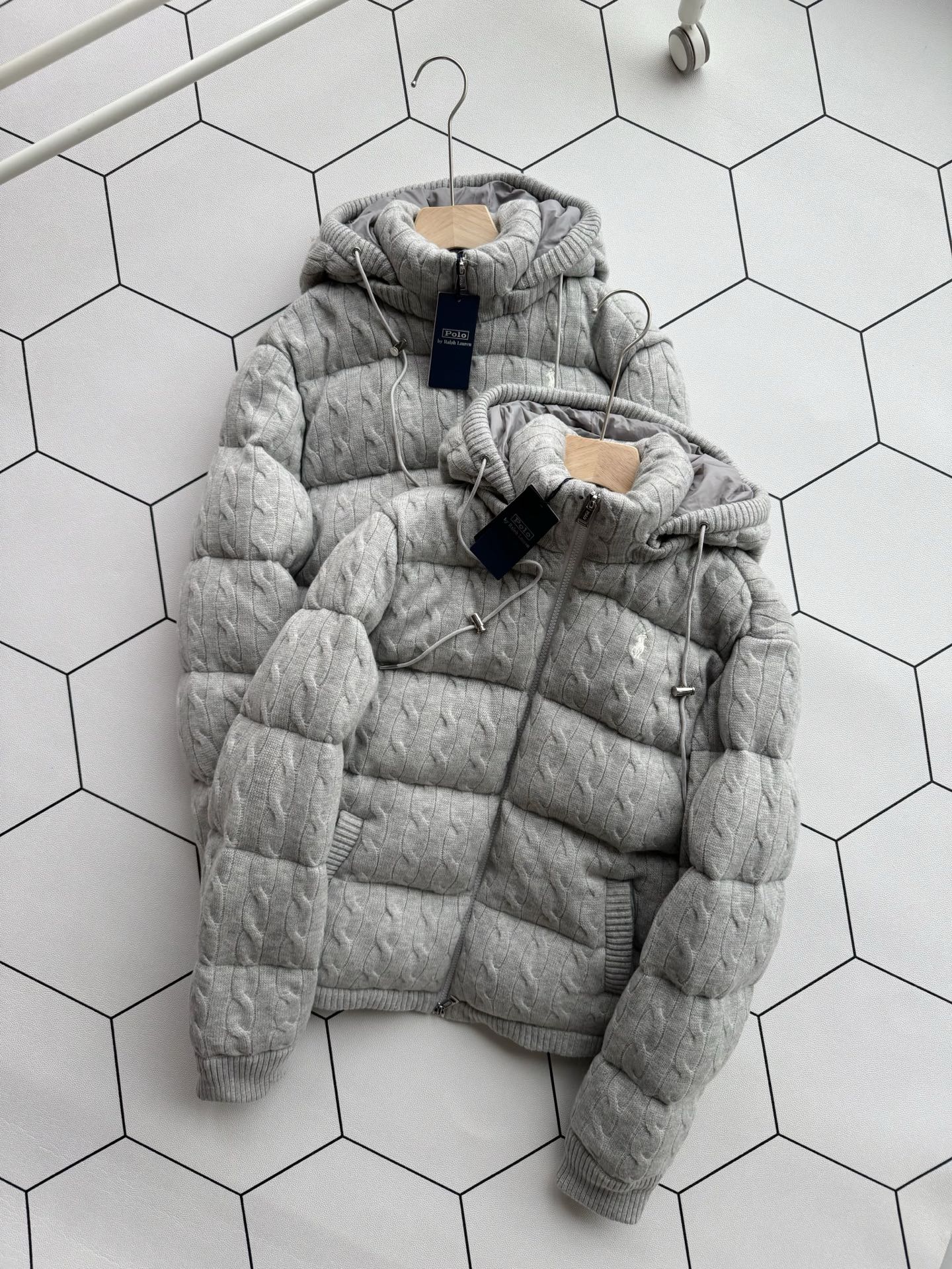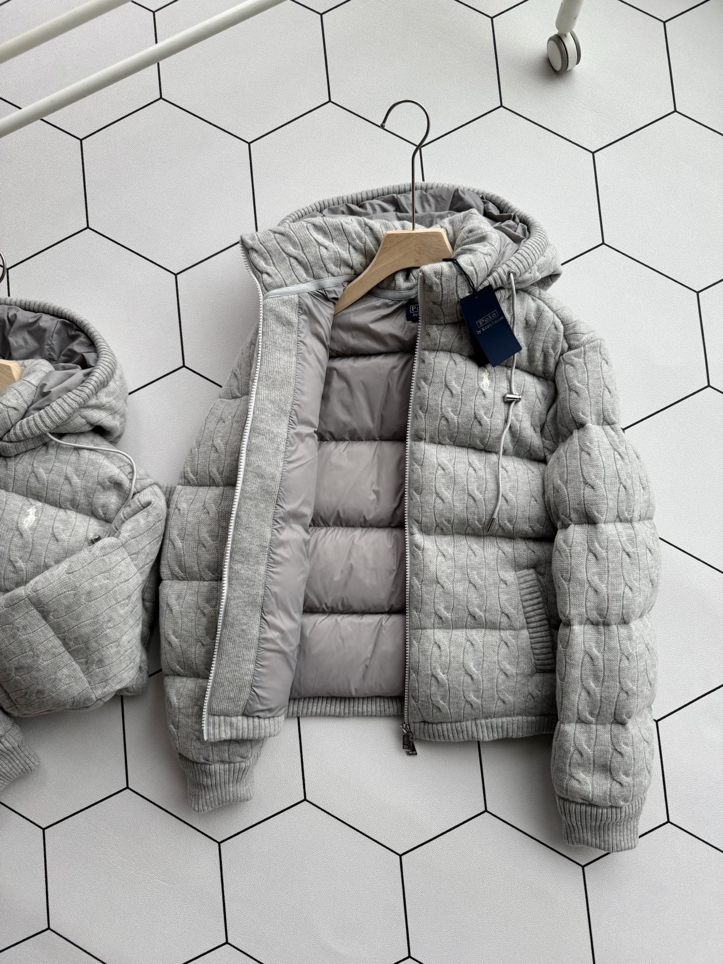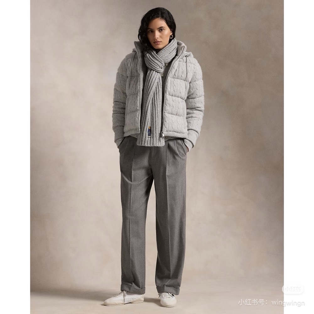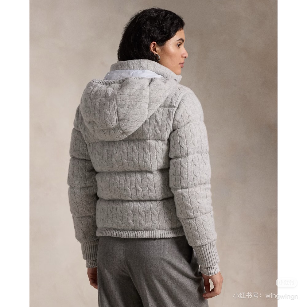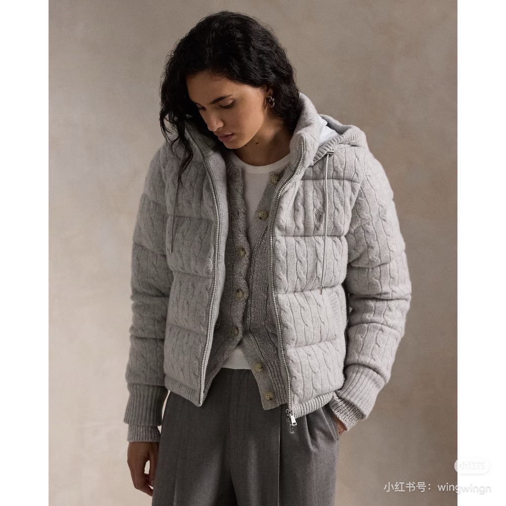拉夫劳伦老钱风 织针拼接羊毛羽绒服