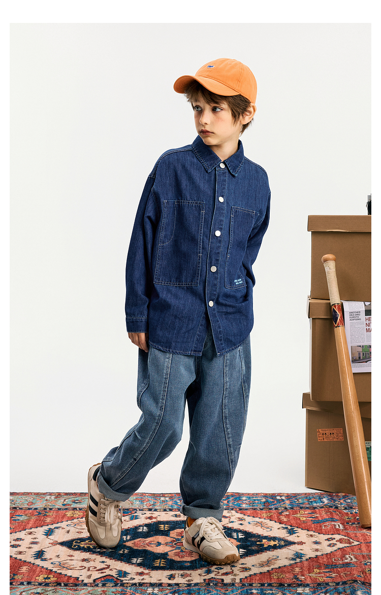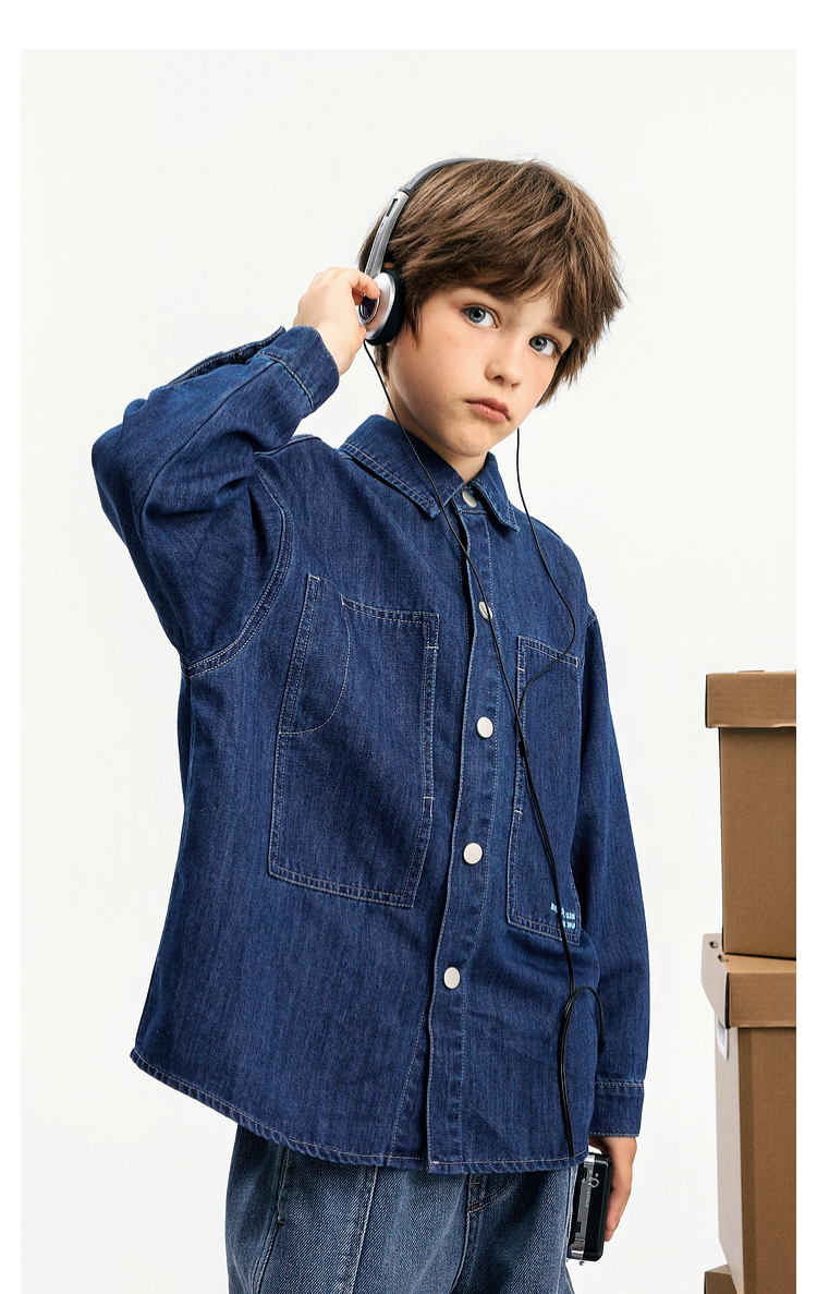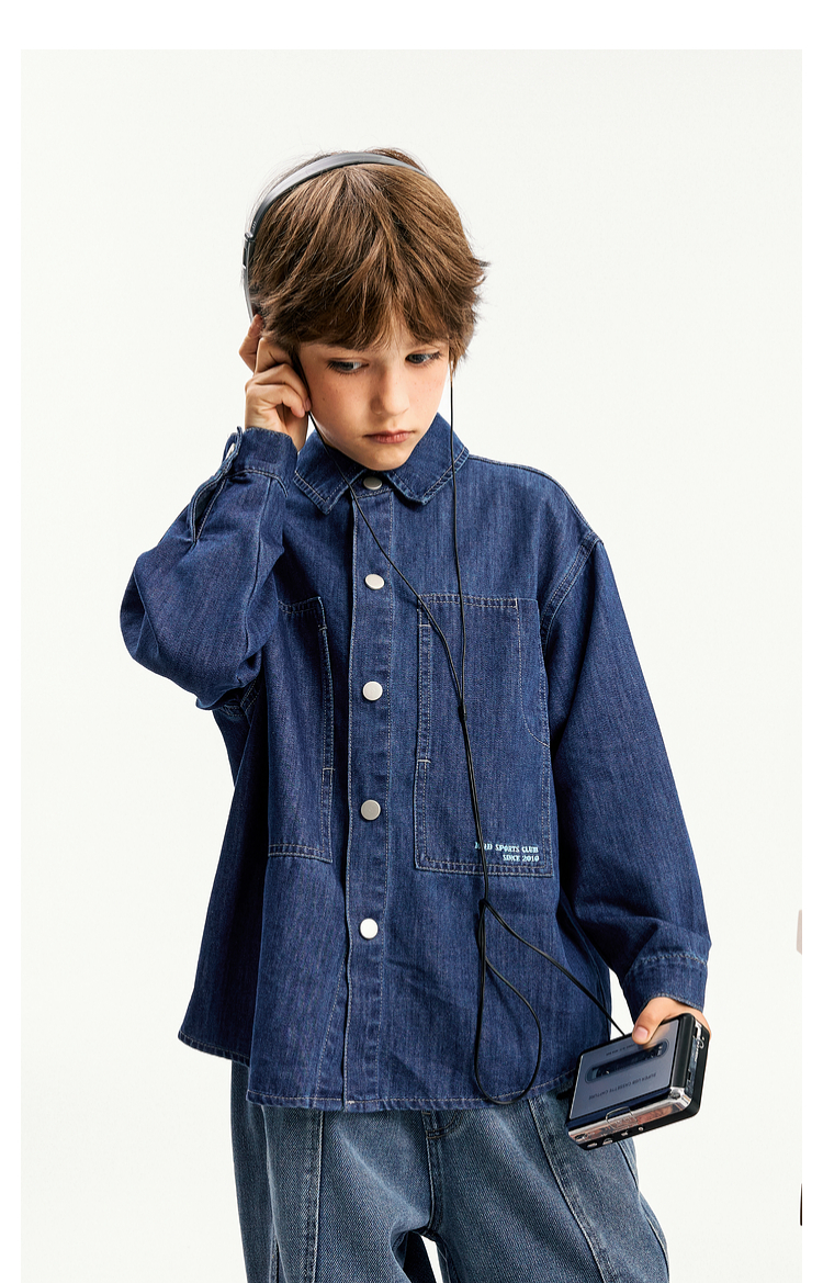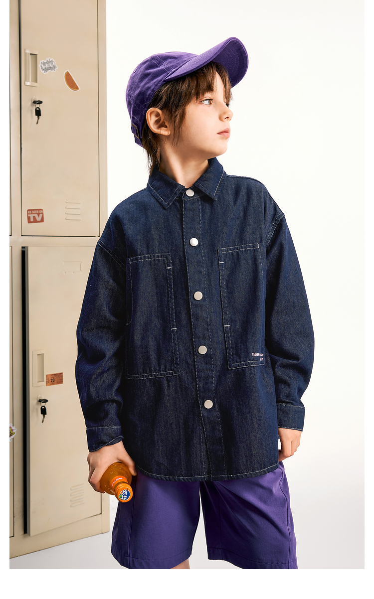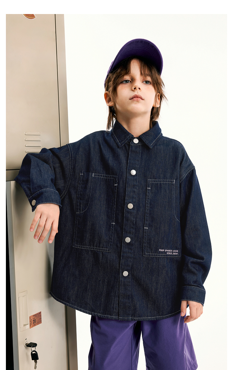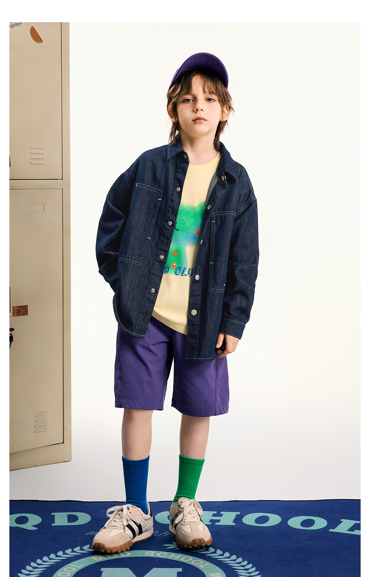 【MQD】童装男大童春秋季品学院风儿童潮酷休闲百搭牛仔衬衫外套