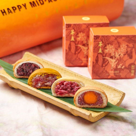 【2025年中秋月饼礼盒】香甜酥软 手工制作 4种风味 火腿蛋黄2枚+火腿黑松露2枚+火腿荞麦2枚+玫瑰鲜花饼2枚 50g/枚 共400g