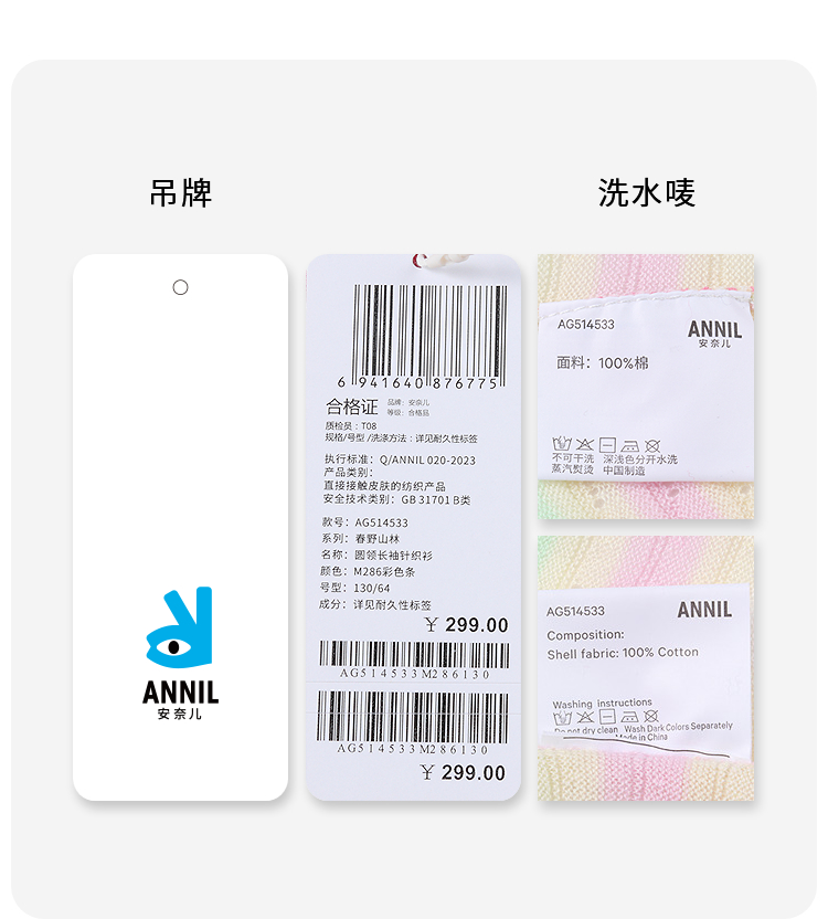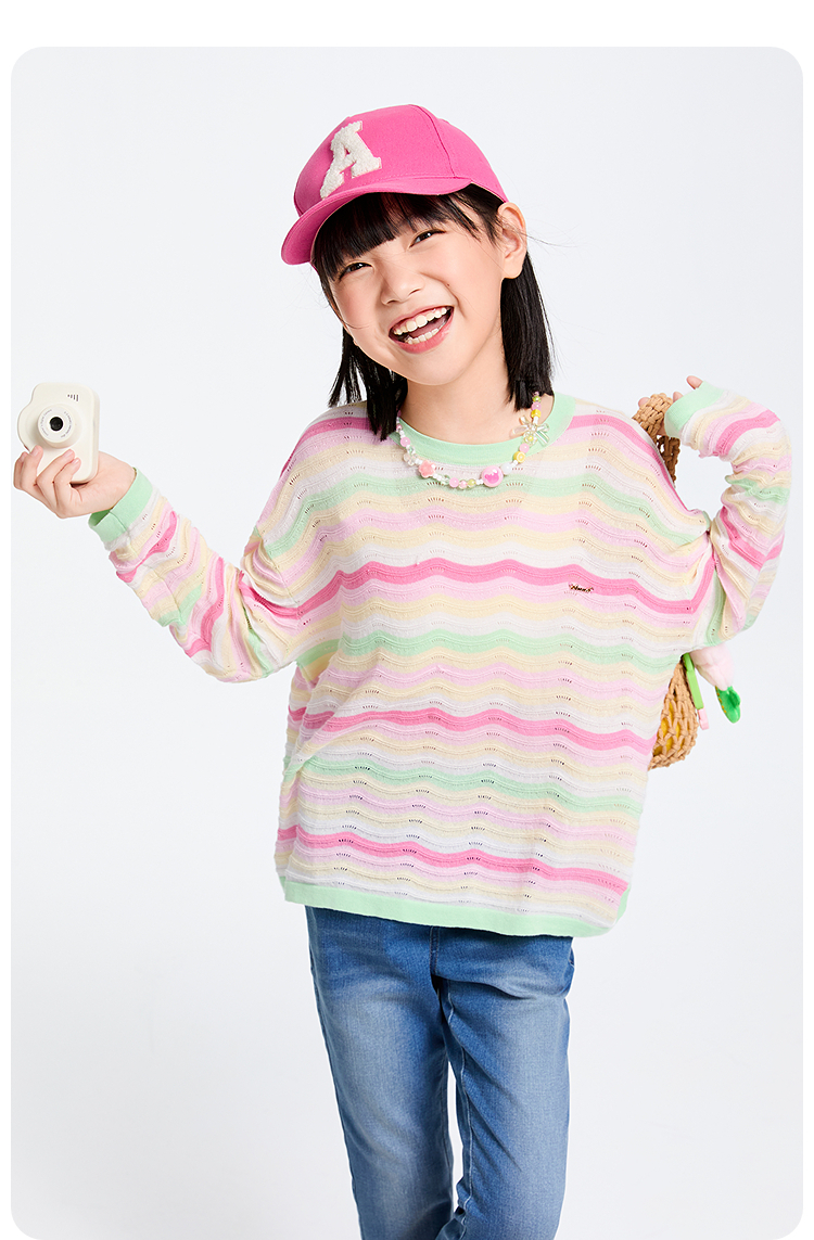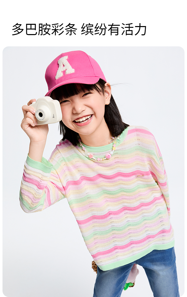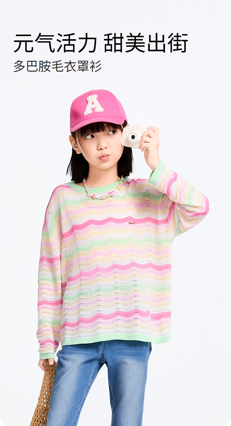 女童圆领长袖针织衫春季新款安奈儿童装实体店同款AG514533