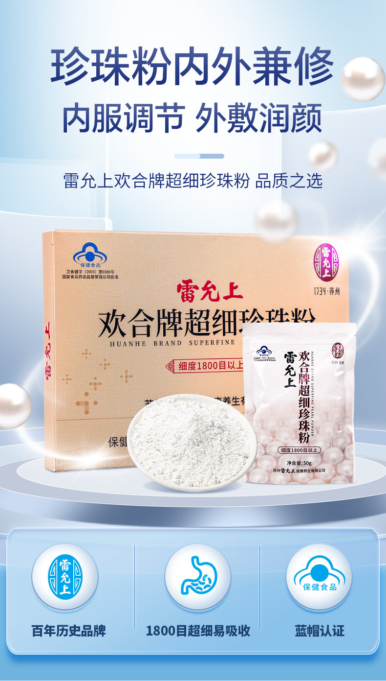 雷允上直营 | 雷允上欢合牌超细珍珠粉50g/盒 淡水珍珠粉可食用珍珠粉外用面膜粉
