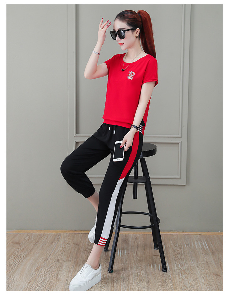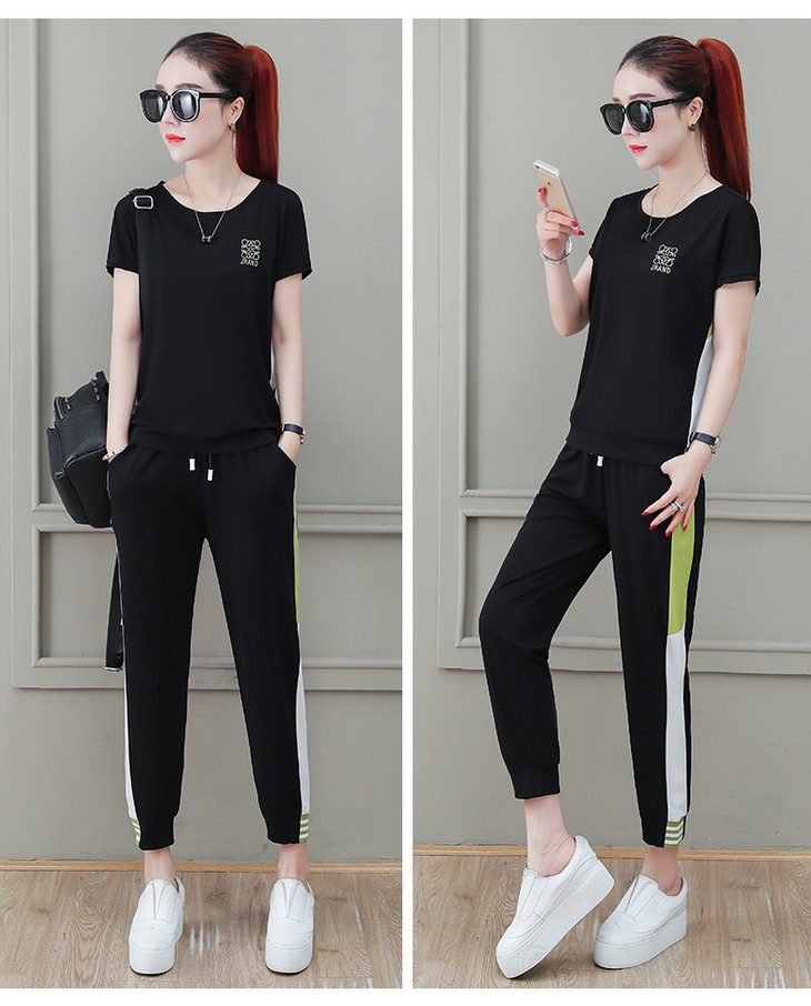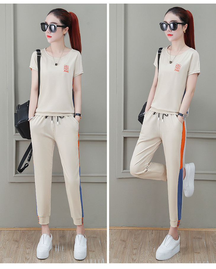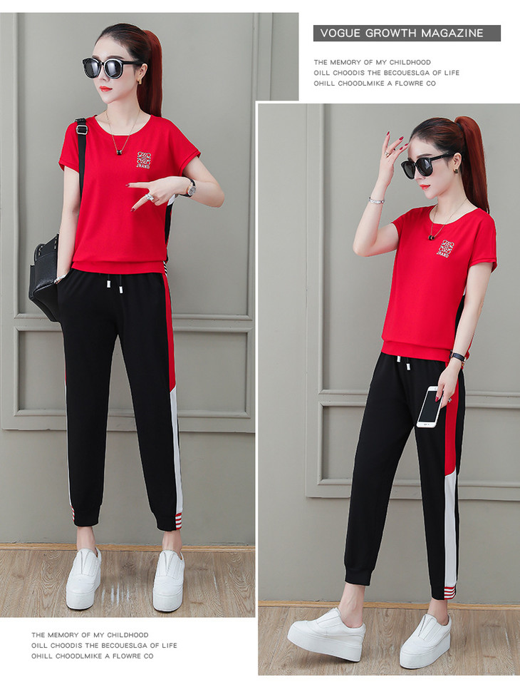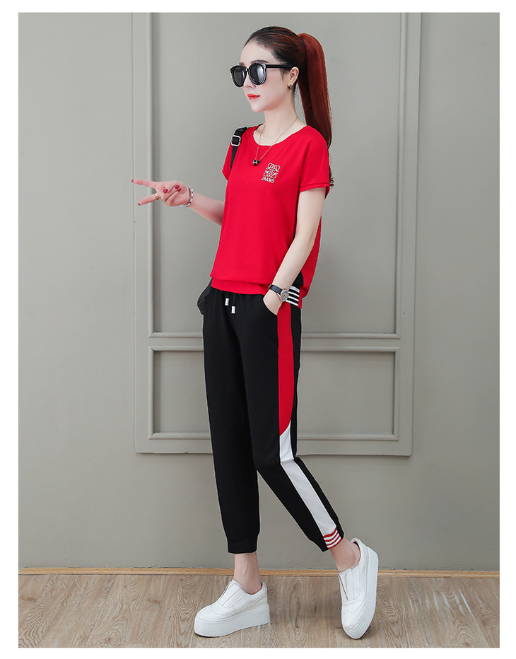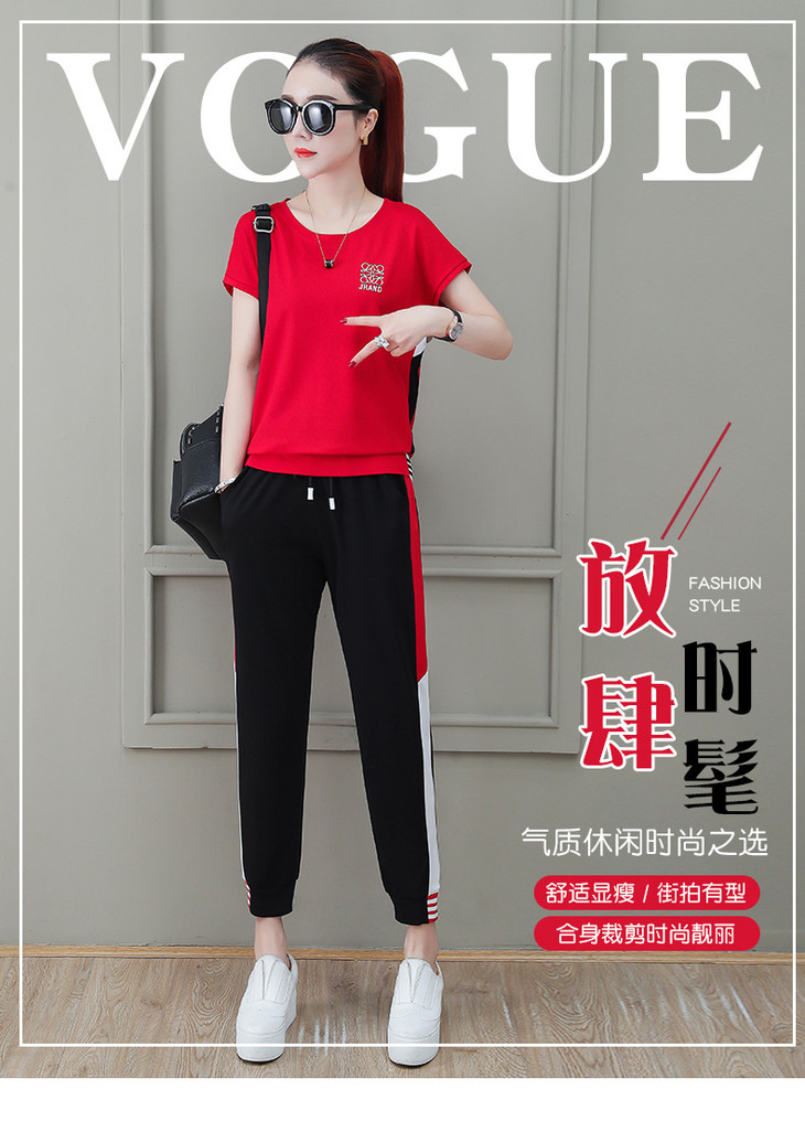 SP-AL-615277199035夏季新款宽松大码洋气短袖两件套