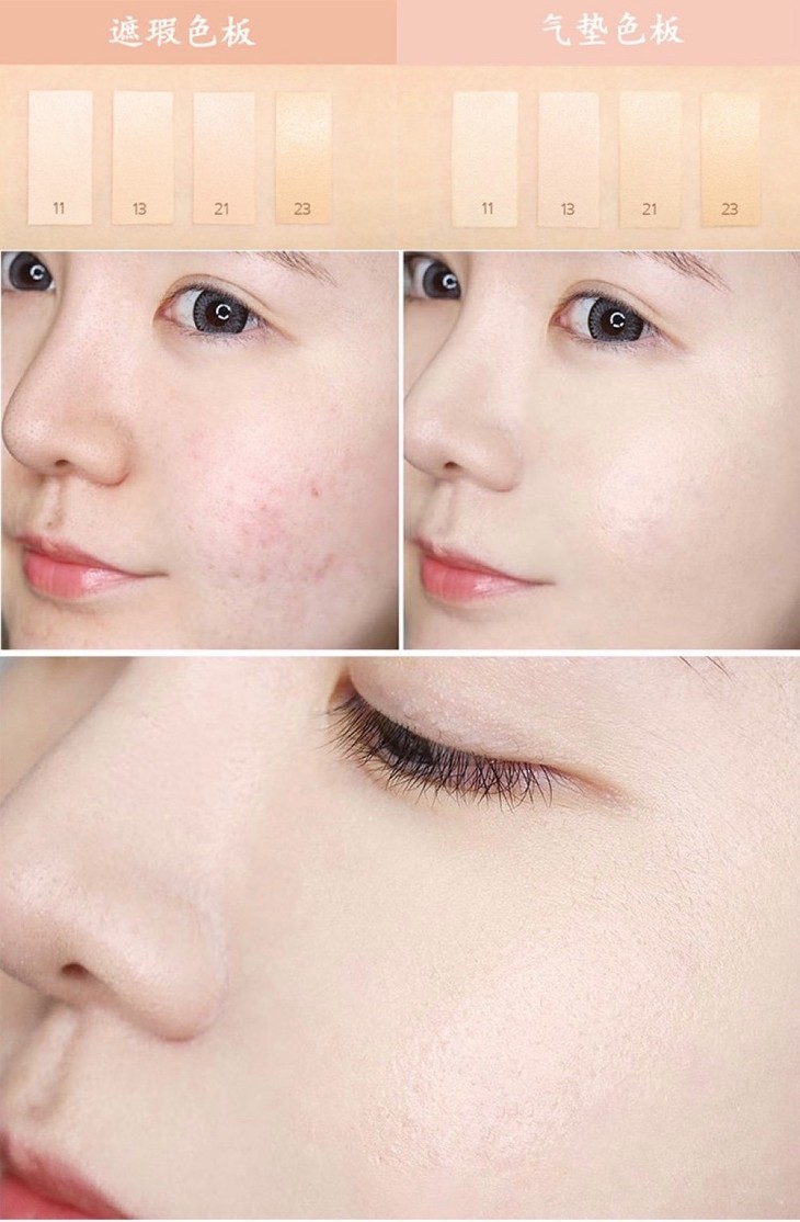 兰芝双层持久遮瑕2合1气垫#13👍李圣经代言!左边遮瑕➕右边气垫双层设计,水滴形粉扑上层部分用来沾取遮瑕膏,尖尖的形状能更好的贴合眼周👀,下面的部分是气垫BB的粉扑,一扑二用超方便。质地清爽不粘腻🍃,既遮瑕又保湿,隐形毛孔,细嫩肌肤,展现自然光泽感。#13亮白色,适合肤色偏白的妹子。