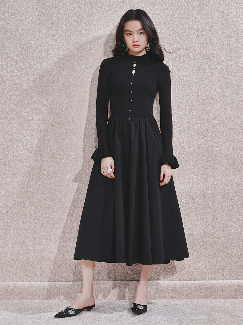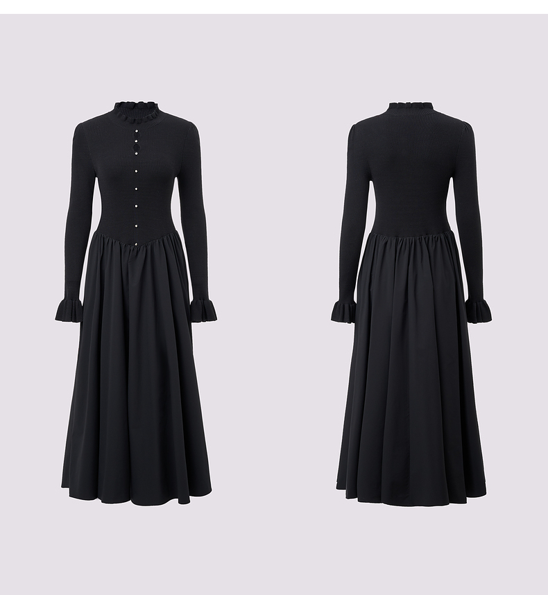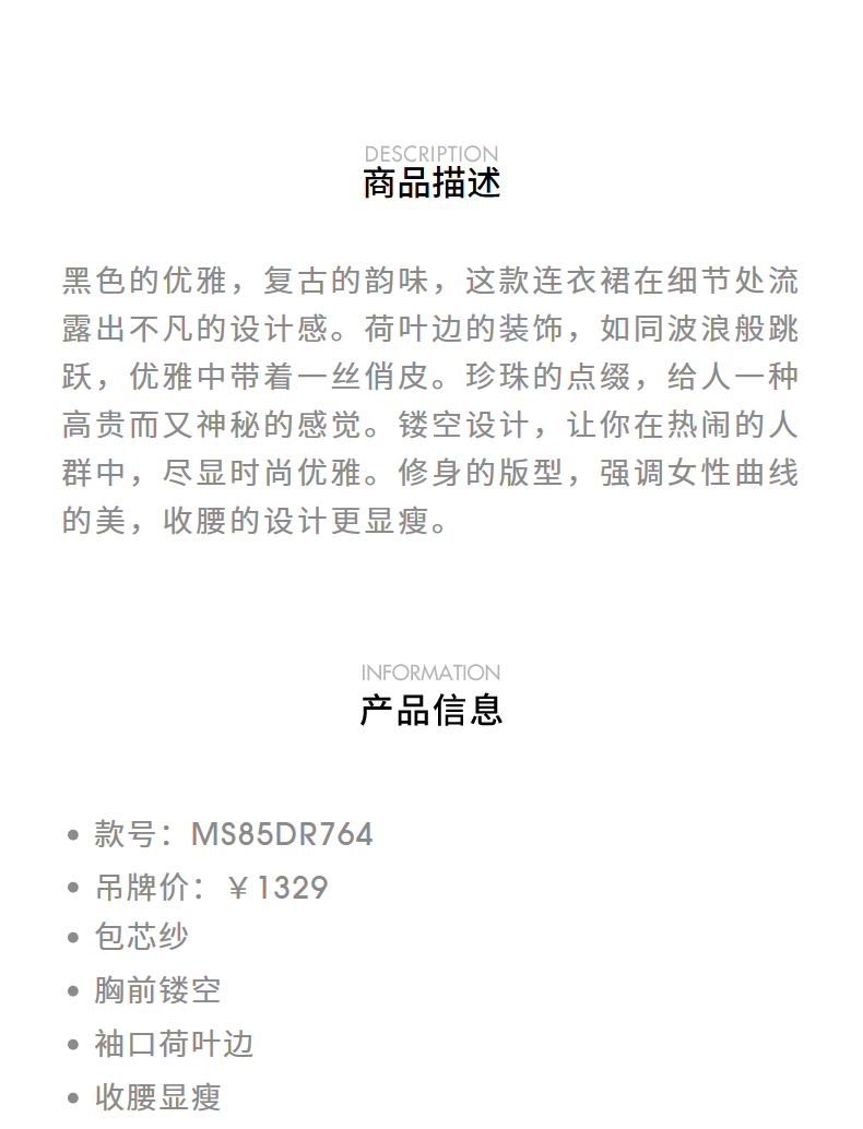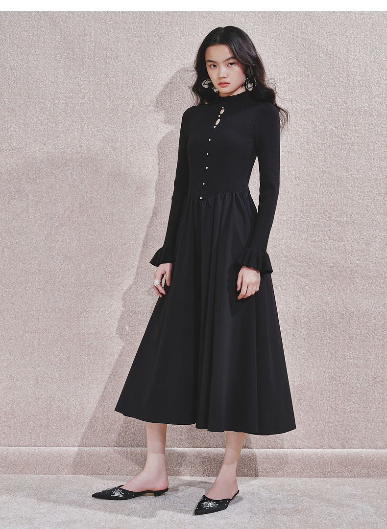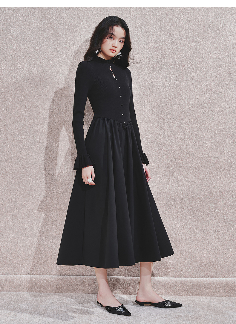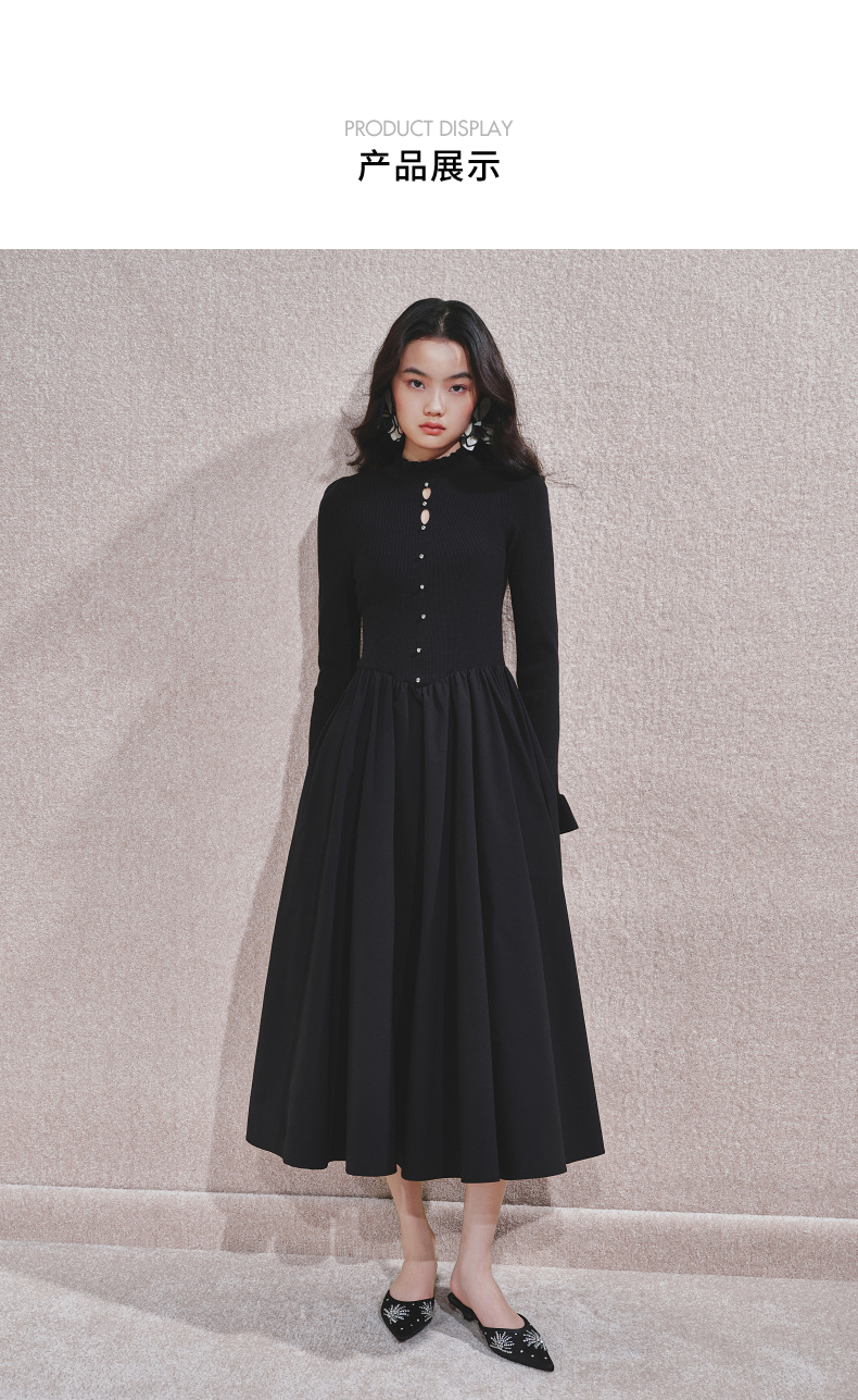 MAXRIENY【商场同款】精致优雅连衣裙24冬款法式复古赫本风小黑裙(货号:MS85DR764)