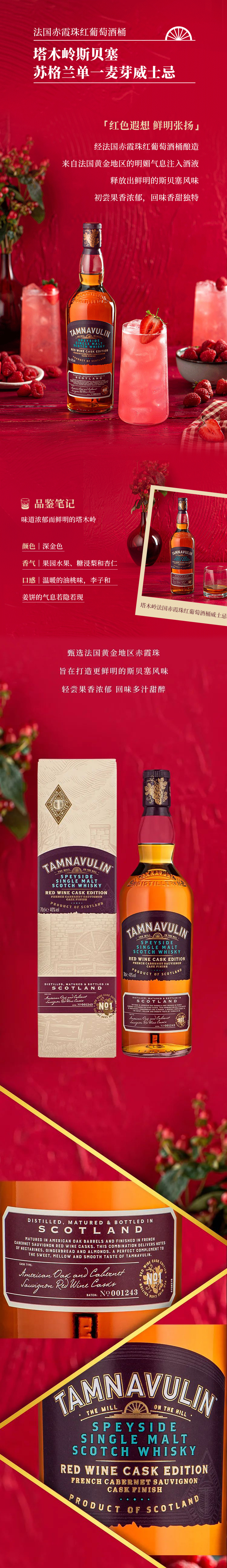 塔木岭斯贝塞苏格兰单一麦芽威士忌 Tamnavulin Red Wine French Cabernet Sauvignon Cask Whisky 700ml