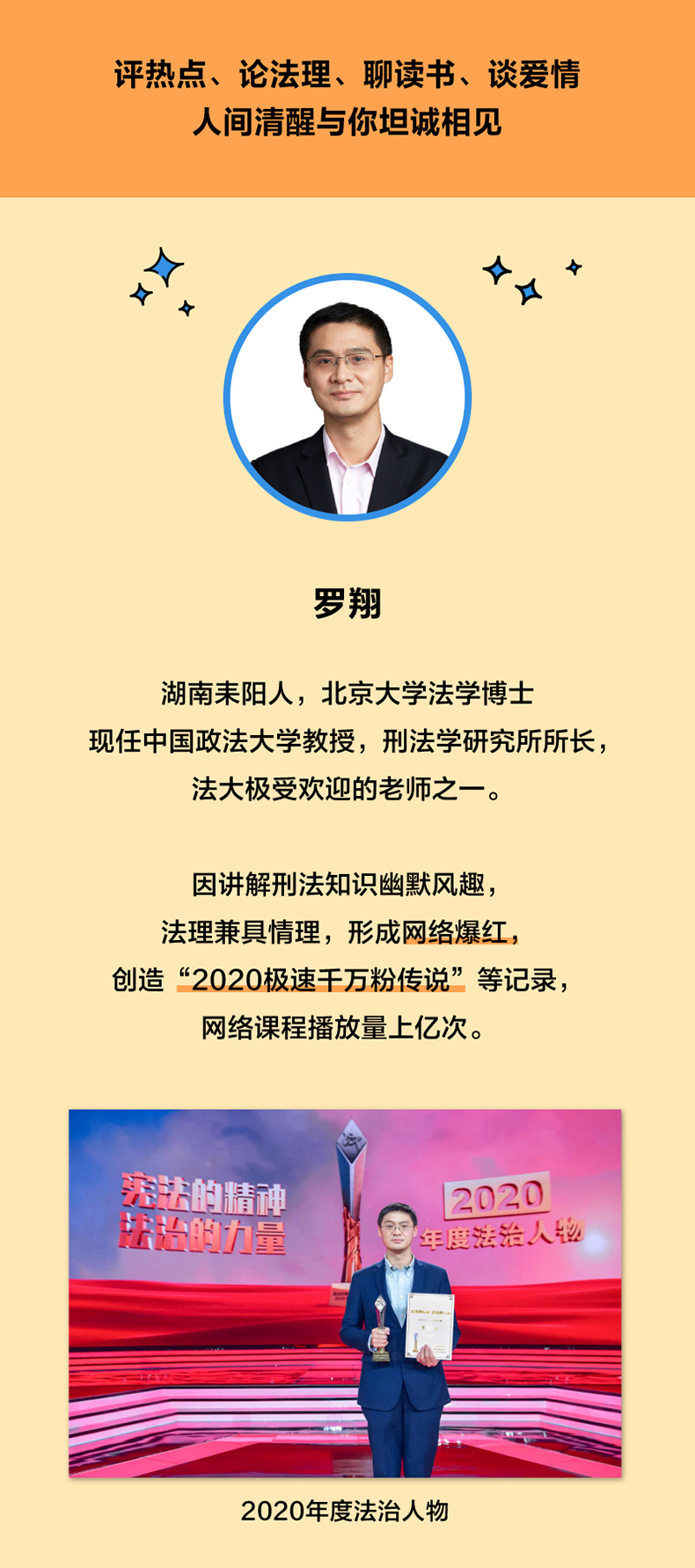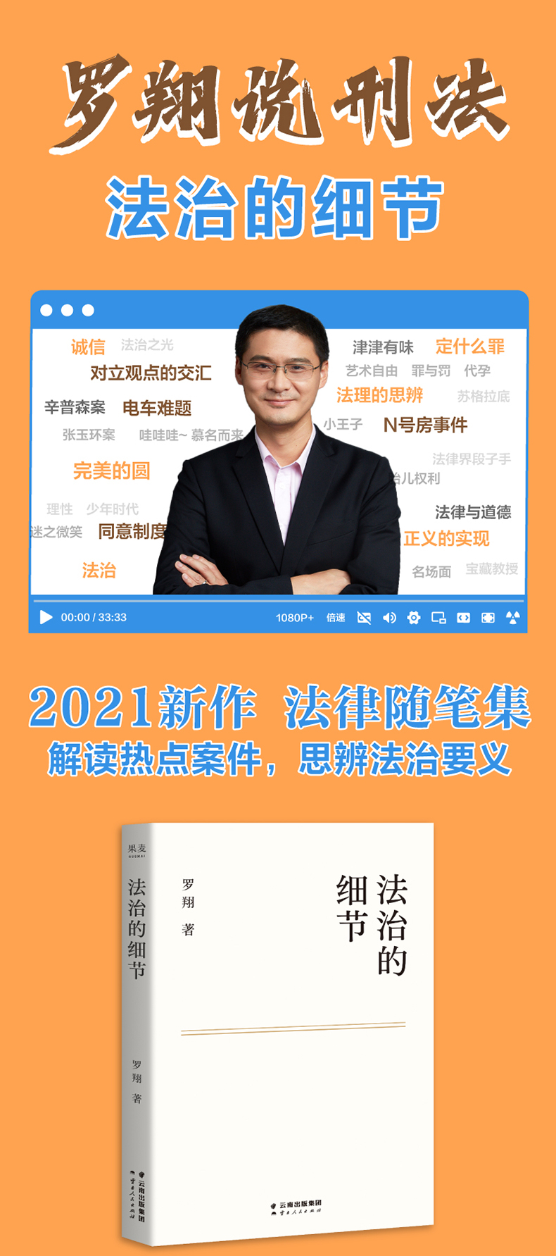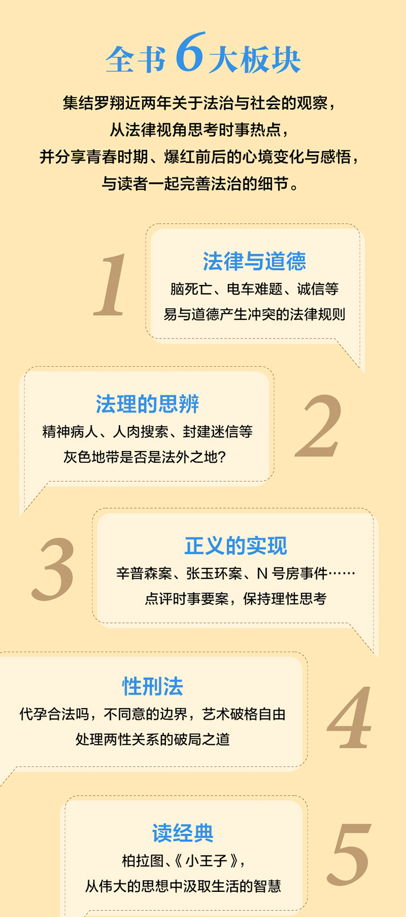 本书是中国政法大学法学教授罗翔全新的法学随笔,面向大众读者,从热点案件解读、法学理念科普、经典名著讲解等内容,普及法律常识与法治观念,多维度培育法律思维,助力法治社会的构建,点亮每个人心中的法治之光。 此外,本书还收录了罗翔在爆红后的心路历程,分享其求学成长经历,袒露其心境的变化与成熟,与读者一起通过阅读与思辨,走出生活中的迷茫时刻,在现实中共同完善法治的细节。