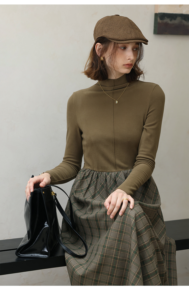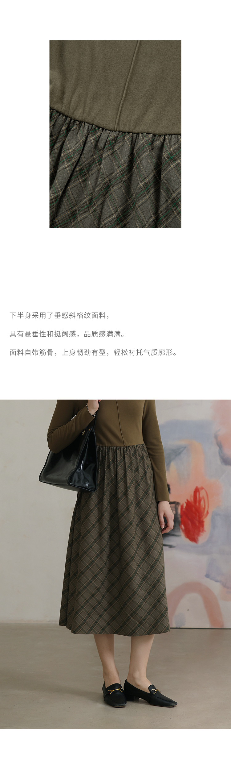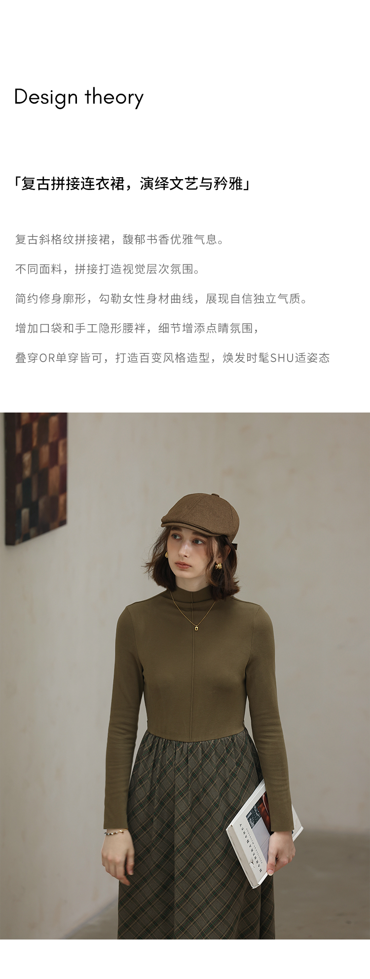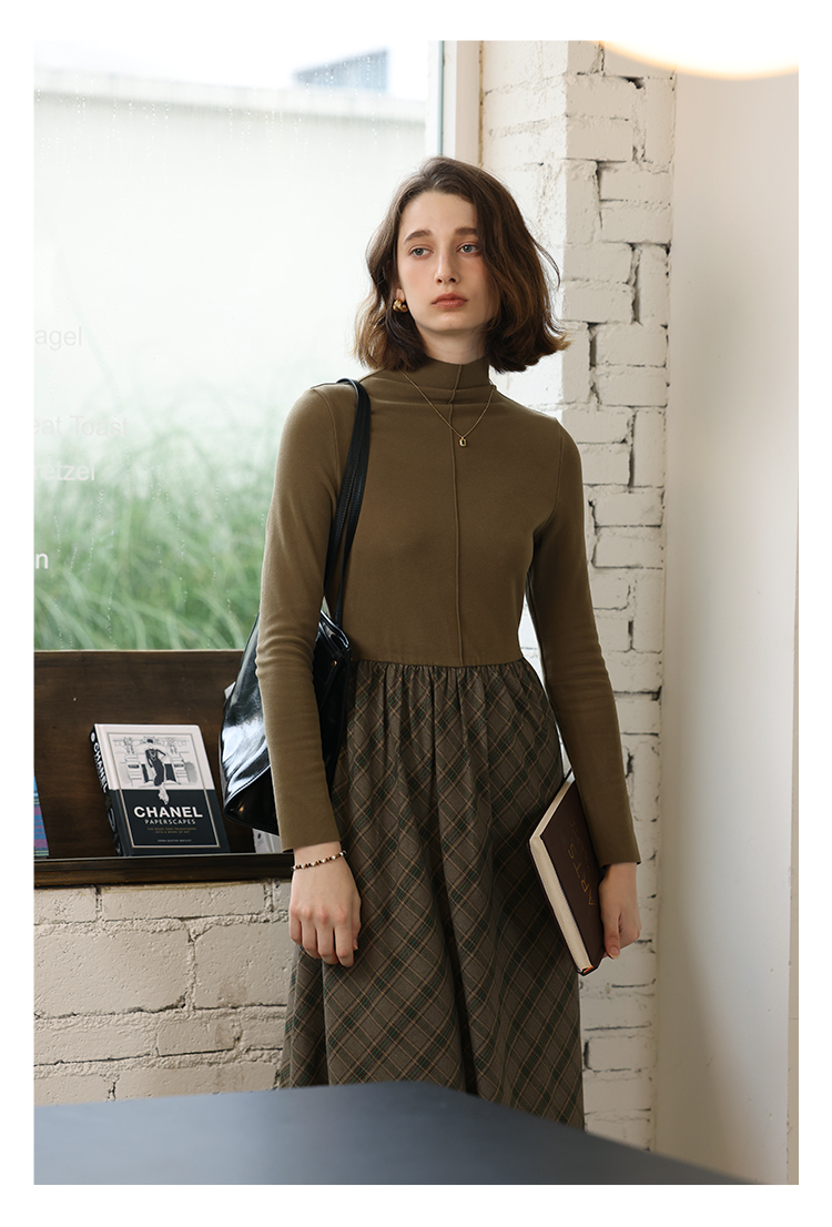 HeyDress法式高领连衣裙女秋冬复古拼接设计收腰修身显瘦气质裙子