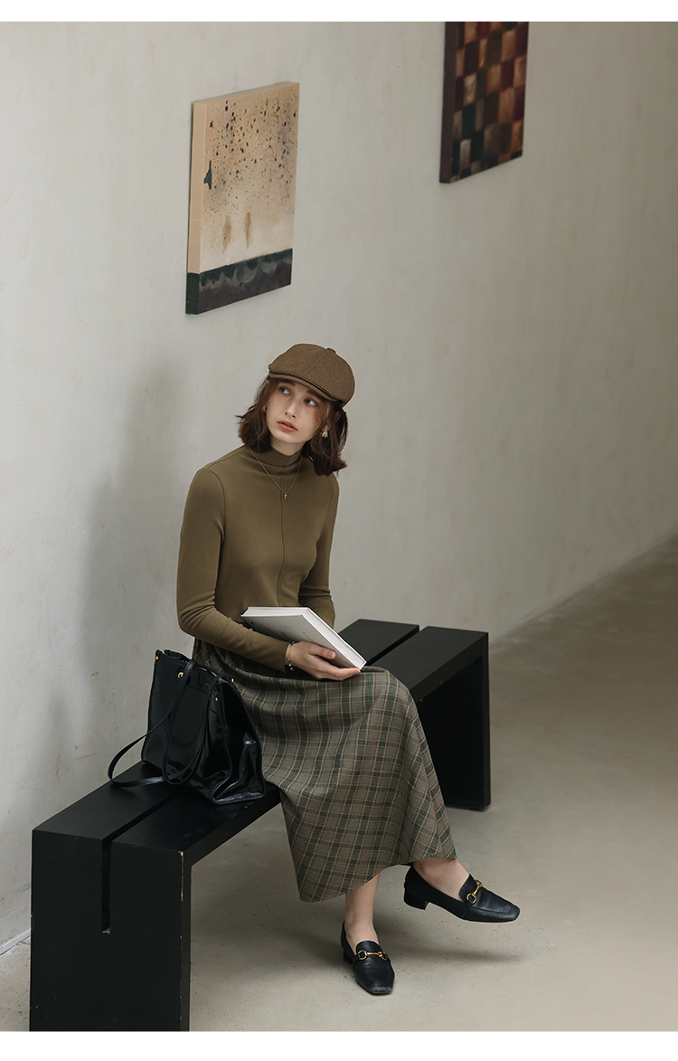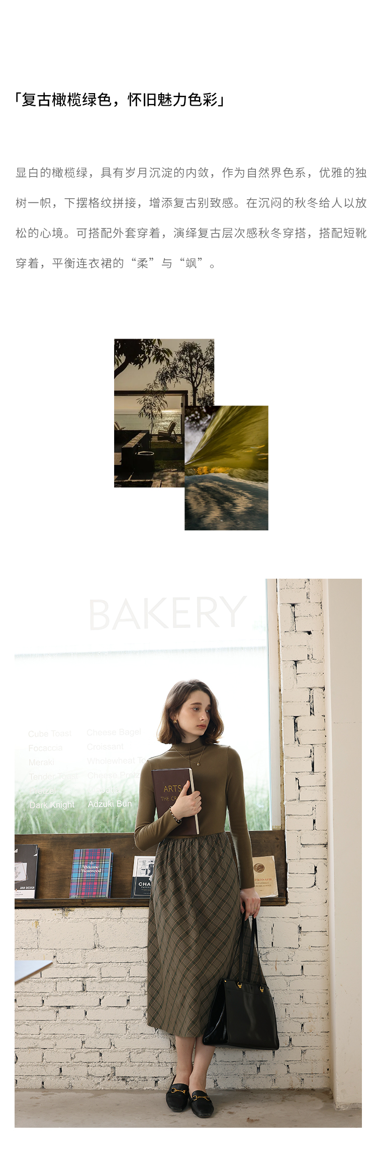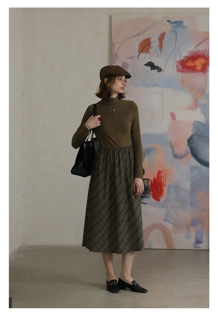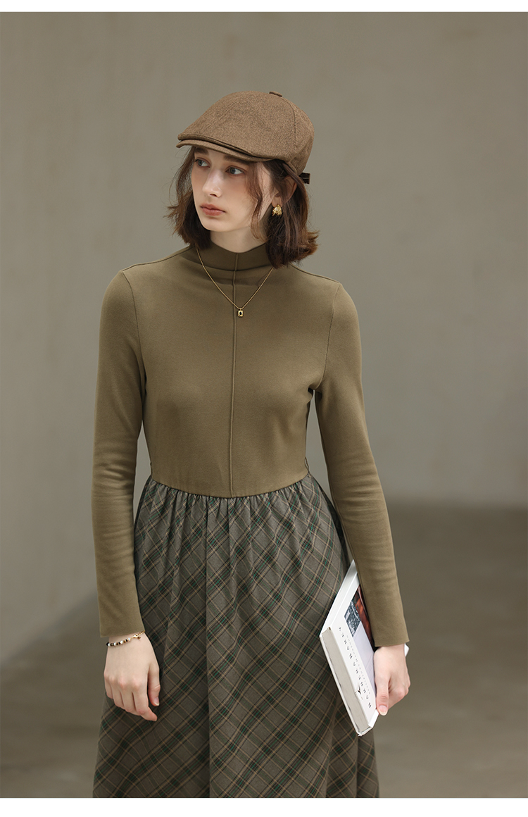 HeyDress法式高领连衣裙女秋冬复古拼接设计收腰修身显瘦气质裙子