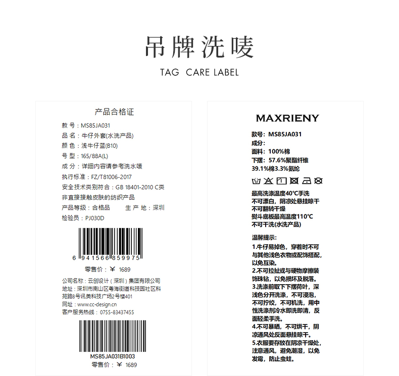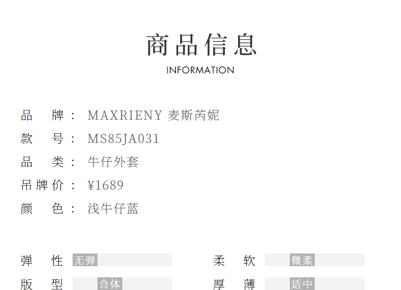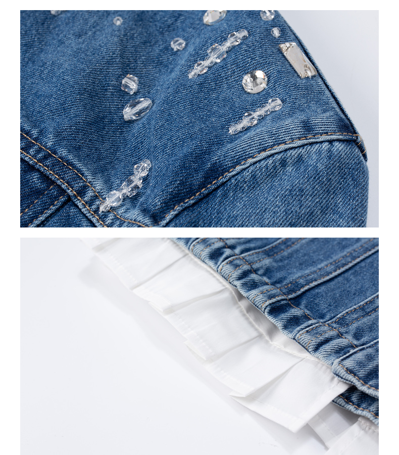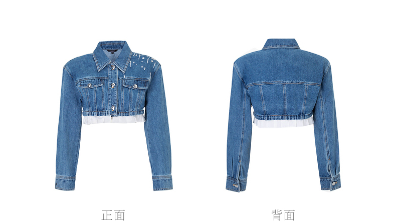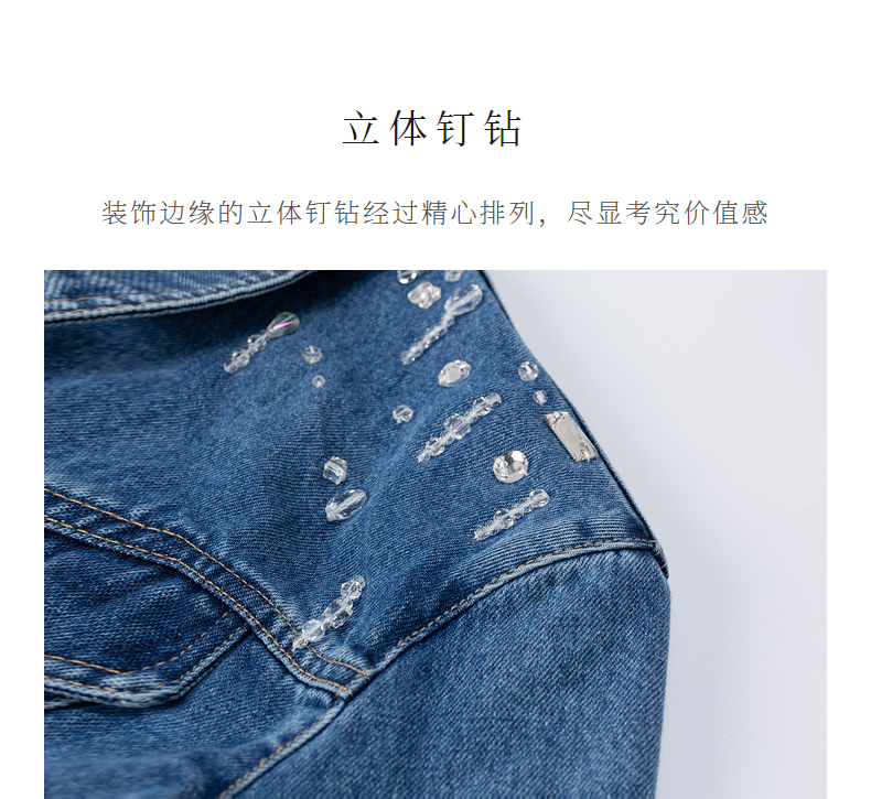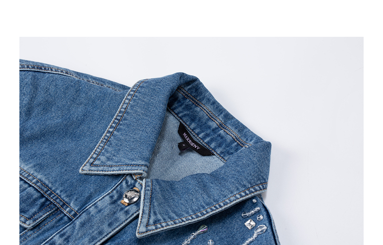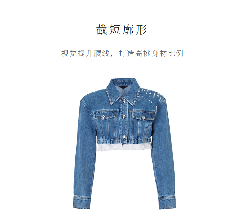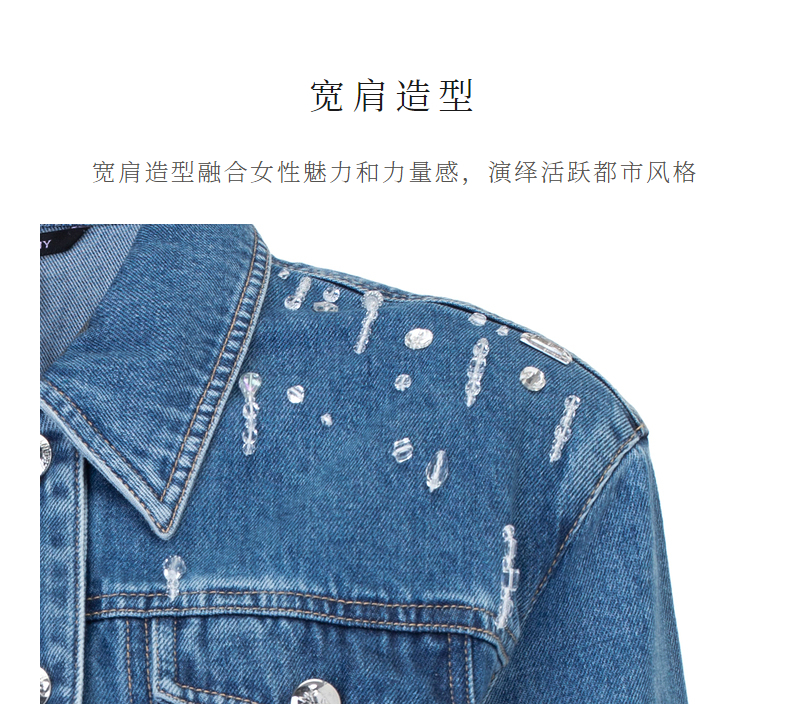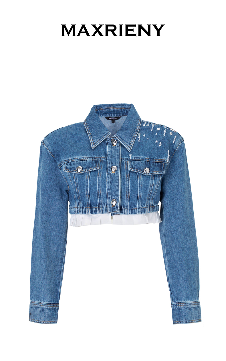 MAXRIENY钉珠宽肩截短廓形牛仔外套2024春季新款上衣女(货号:MS85JA031)