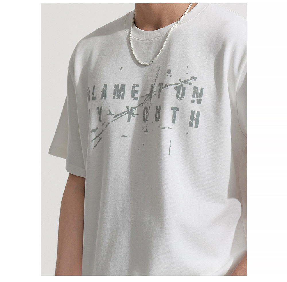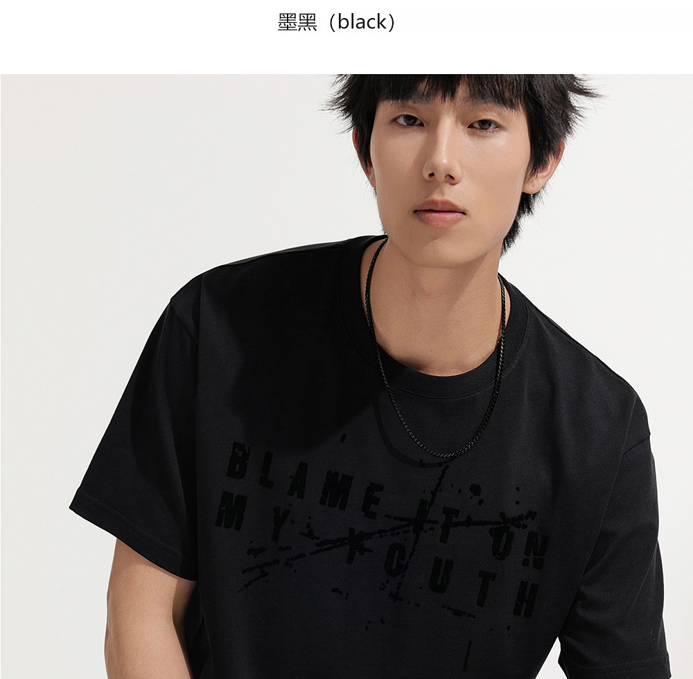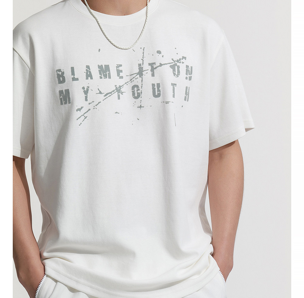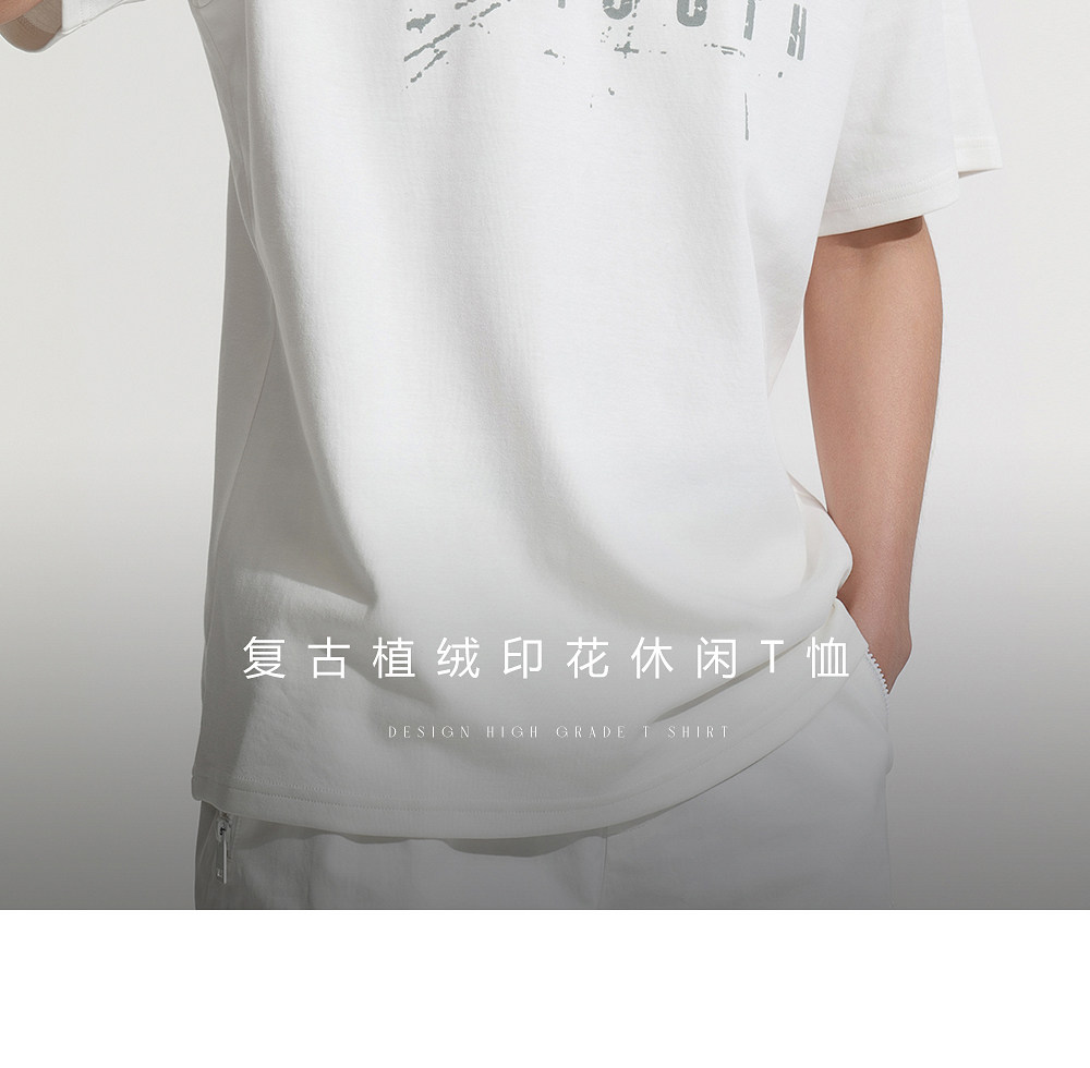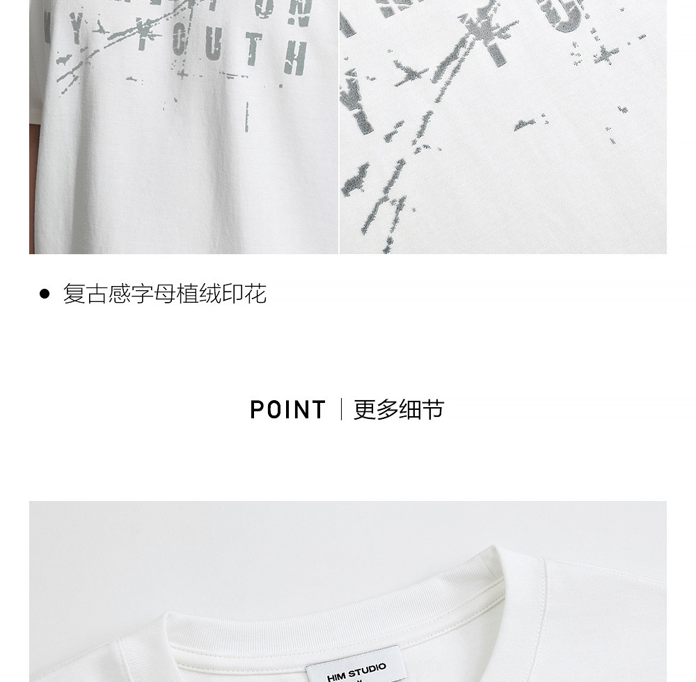 HIM漢崇 男士舒适休闲短袖T恤复古字母植绒印花圆领上衣 2026夏季