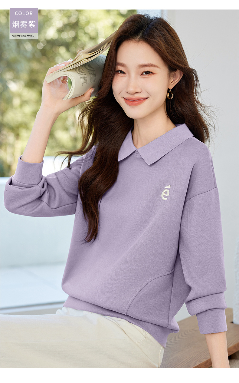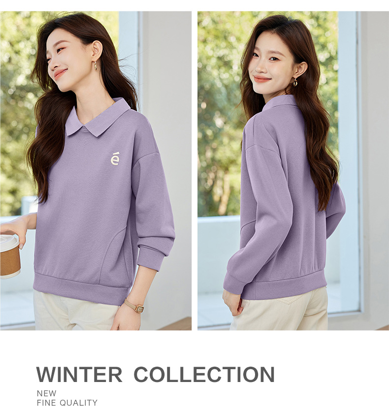 雀说翻领卫衣女薄款新款爆款紫色上衣时尚洋气减龄外套AL30066