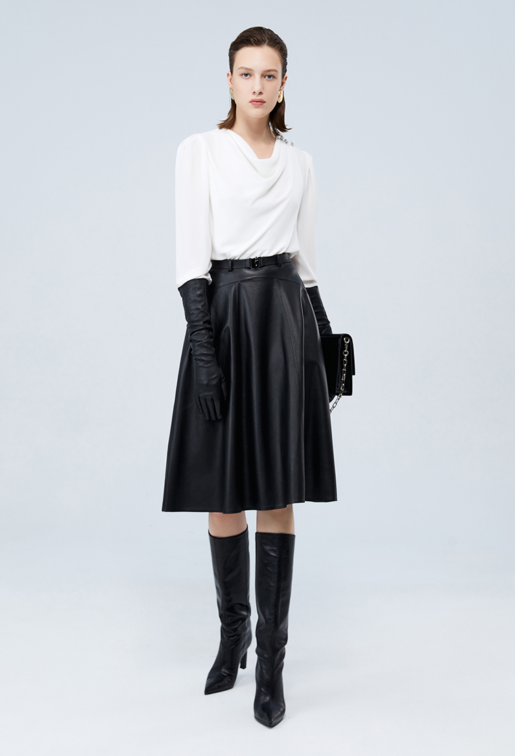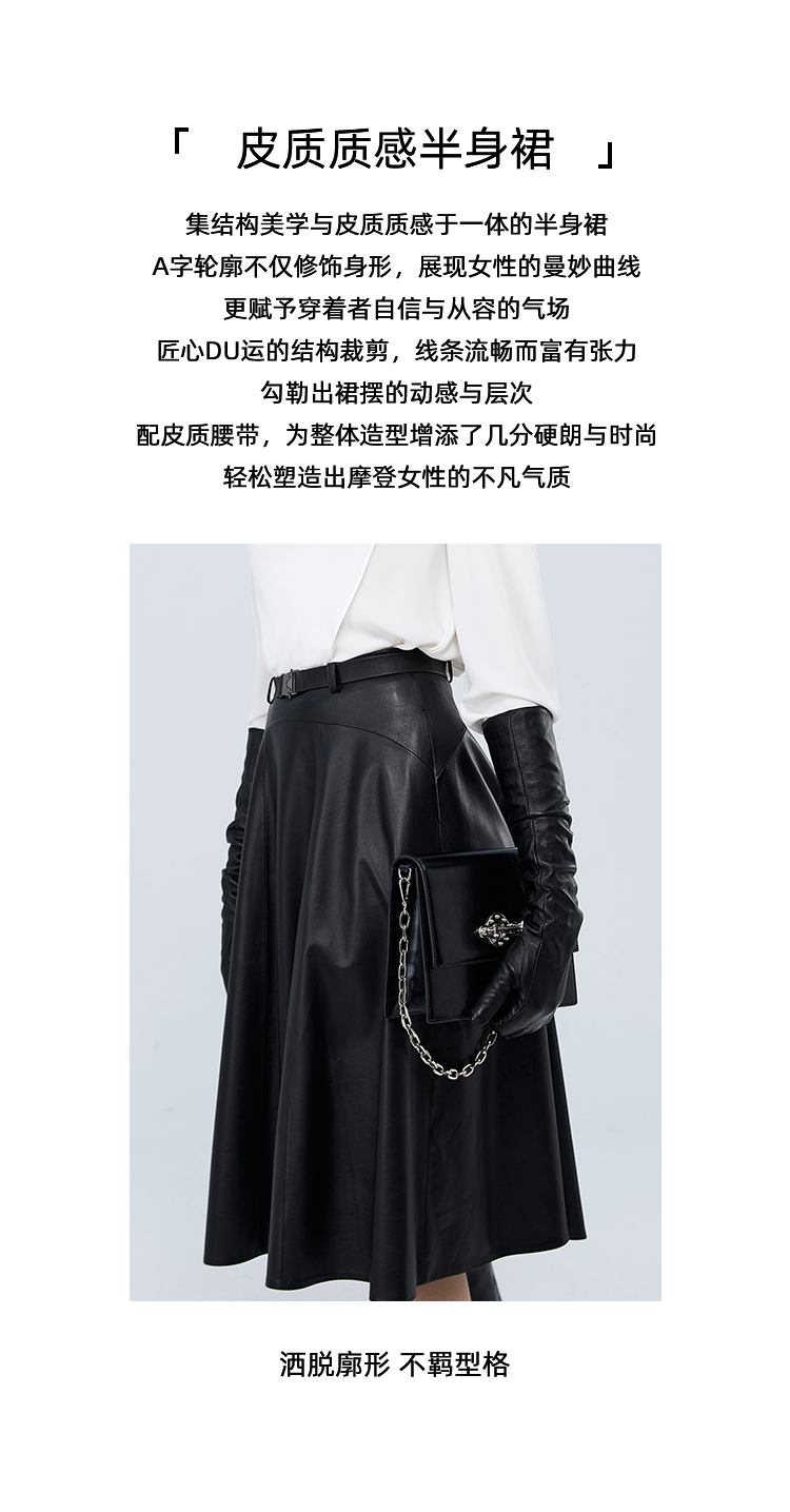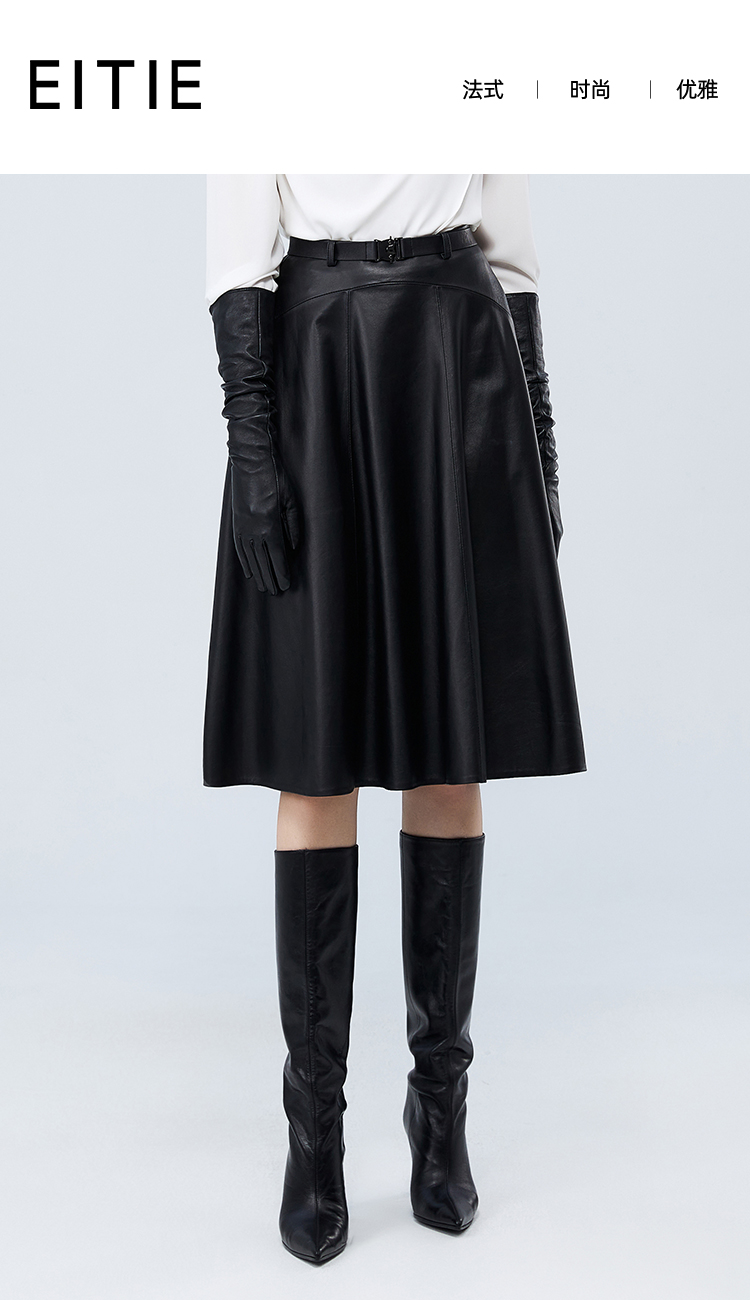 EITIE爱特爱秋季新款气质显瘦A版时尚百搭半身裙皮裙7593201