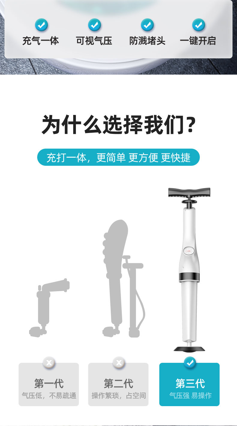 第三代马桶疏通器通下水道神器捅厕所管道堵塞堵了一炮通M仓