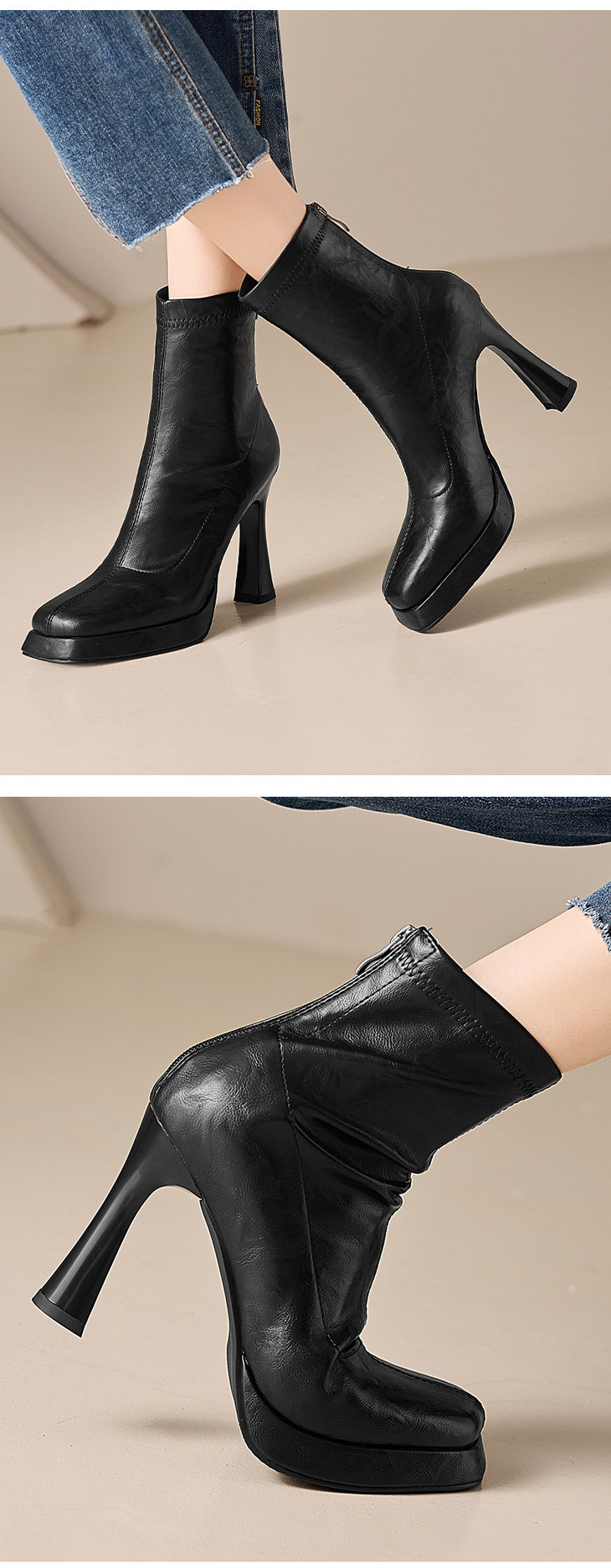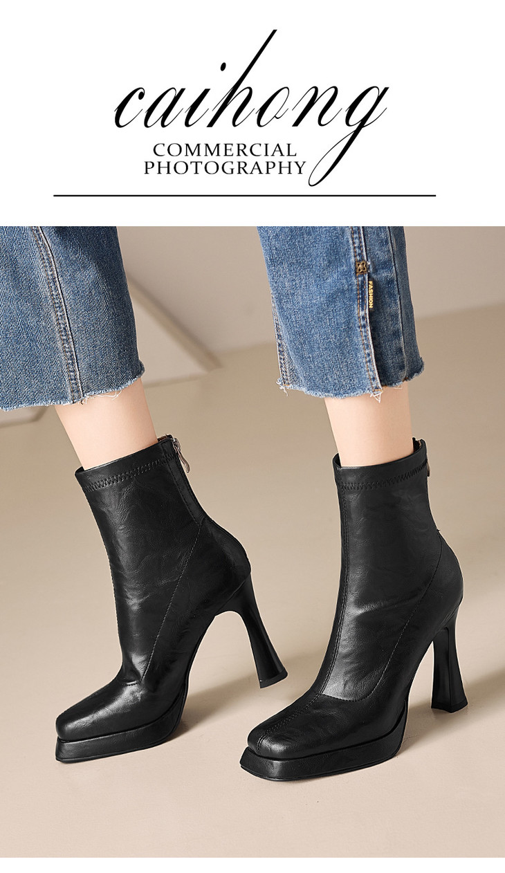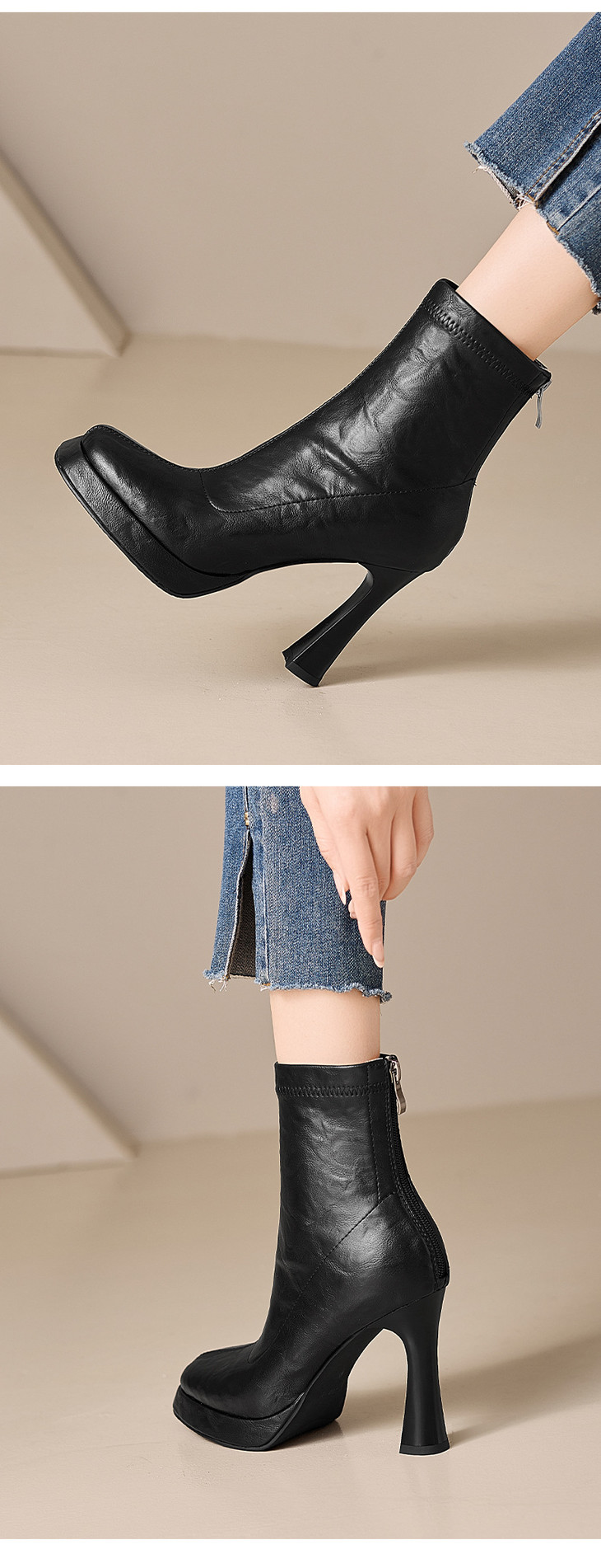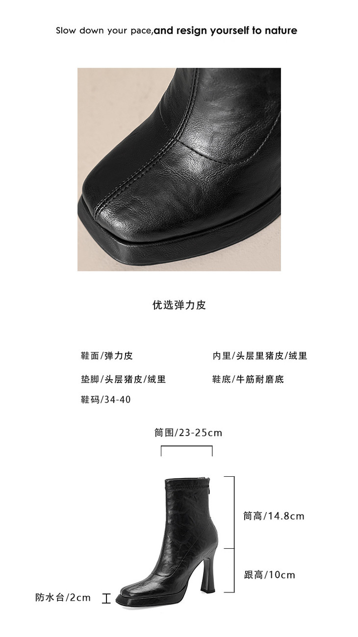 【预售5天】气质高跟防水台弹力瘦瘦短靴女秋冬新款尖头厚底粗跟不累脚时装靴CZ&&C-2305