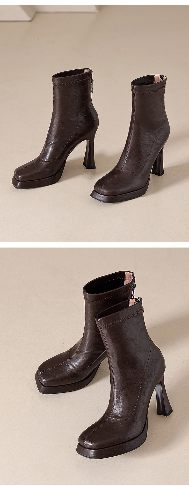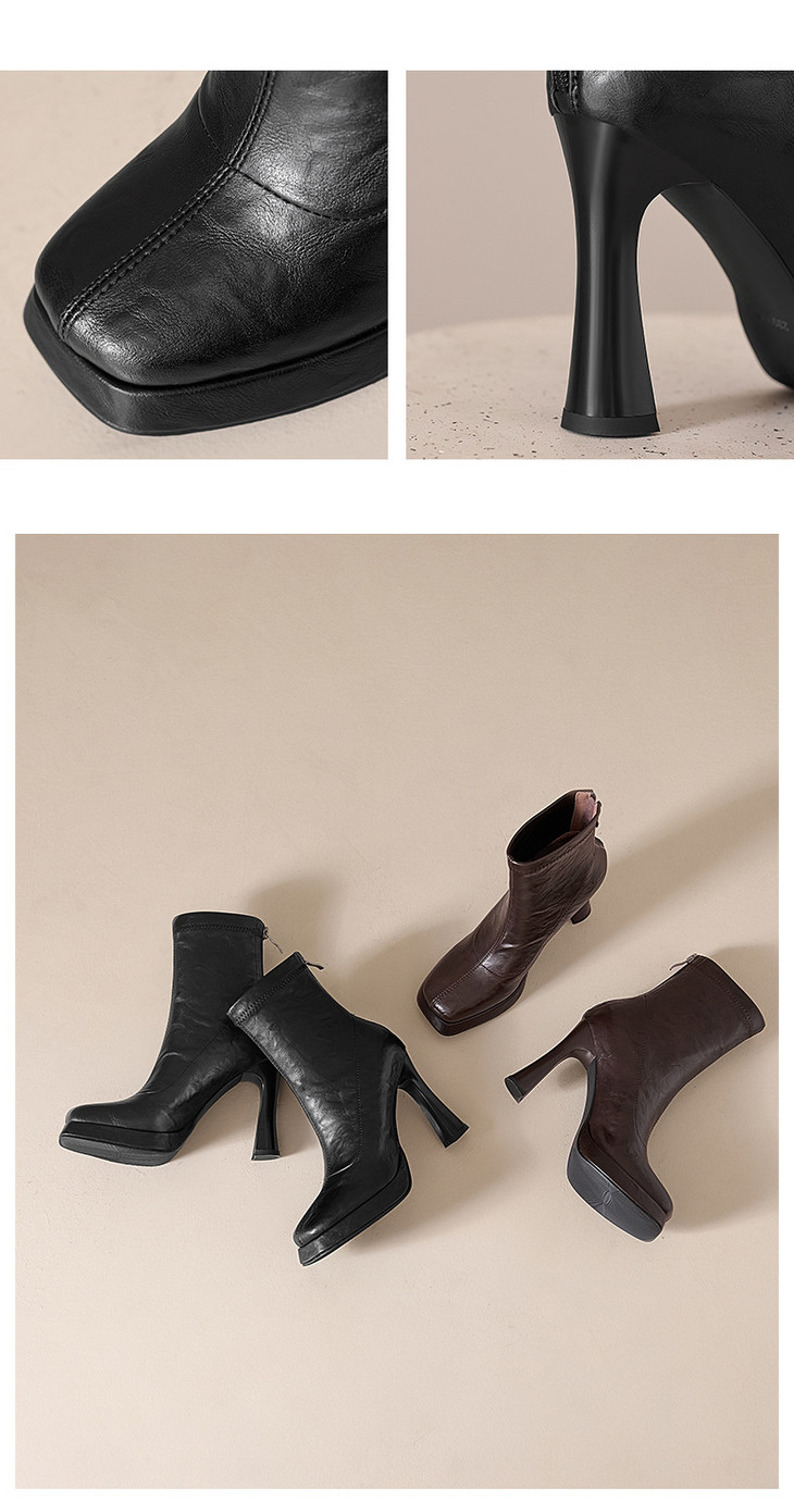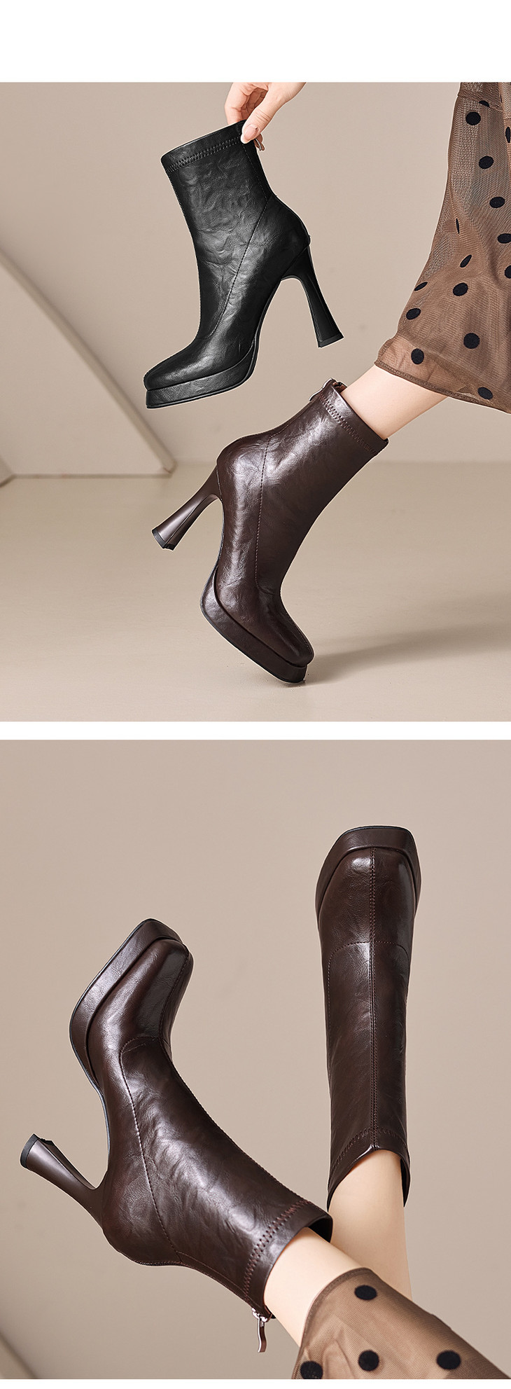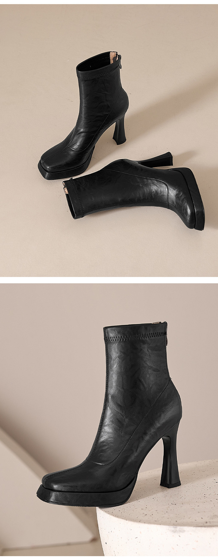 【预售5天】气质高跟防水台弹力瘦瘦短靴女秋冬新款尖头厚底粗跟不累脚时装靴CZ&&C-2305