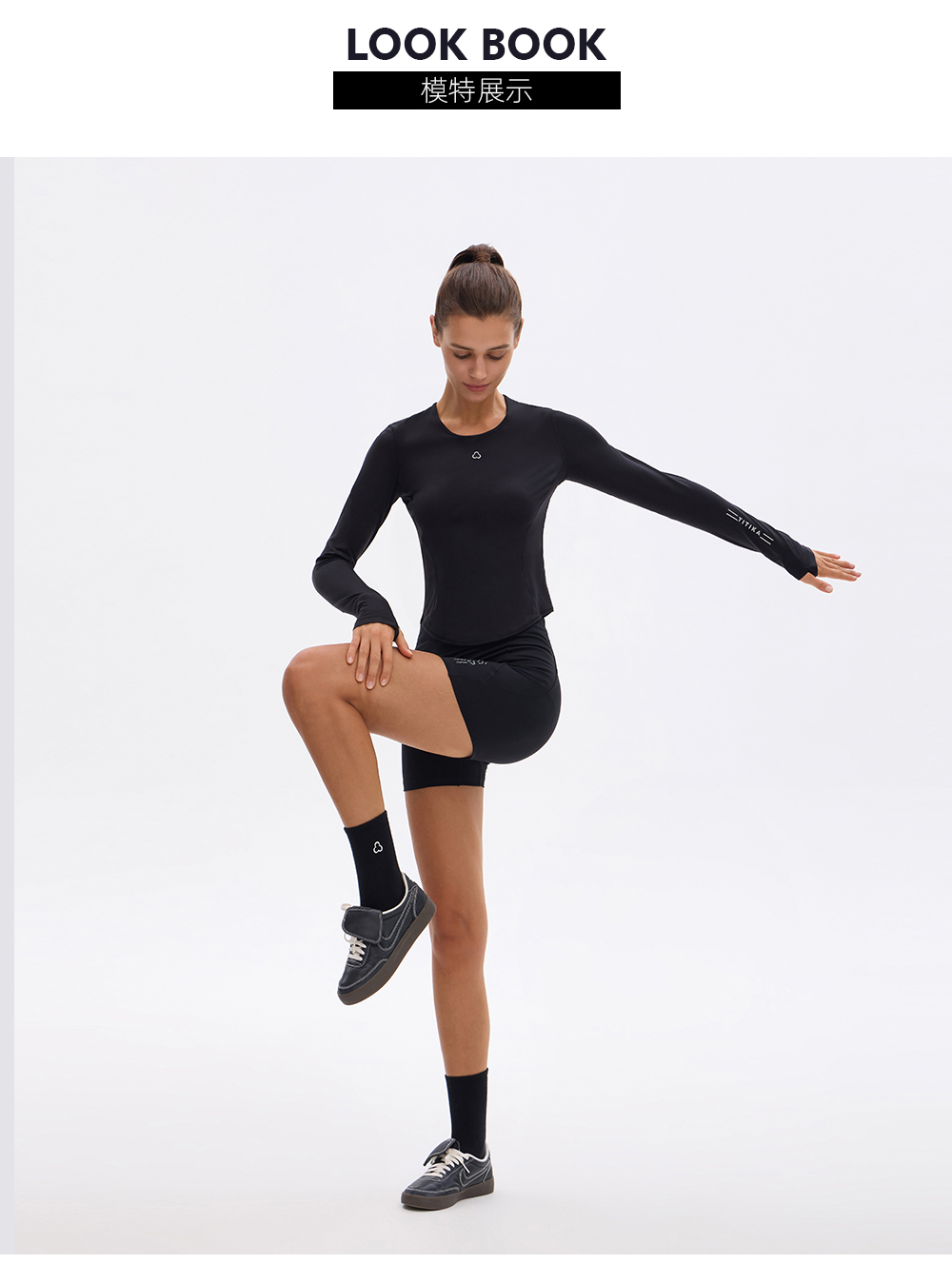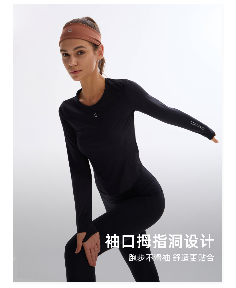 TITIKA云柔圆领仿生运动长袖T恤跑步休闲运动紧身上衣女21228