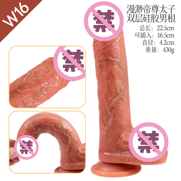 【产品名称】漫渺帝尊太子双层硅胶男根【型号】W16【产品材质】液体硅胶【规格尺寸】长22.5cm粗4.2cm【颜色】肉色【净重】430g【主要功能】女用自慰阳具【保质期】36个月【生产日期】见包装盒或袋【品牌名称】ManMiao漫渺®【执行标准】Q/MMBJ 002-2017【气味】无香型【保存条件】置阴凉干燥处保存【使用方法】见网页或视频【注意事项】1、本产品为成人用品,严禁未成年人使用 2、使用前阴茎涂抹适量润滑液 3、考虑个人卫生问题,使用前后请清洗。