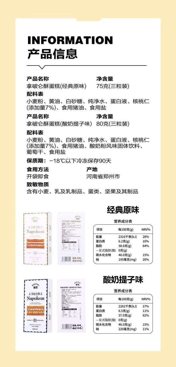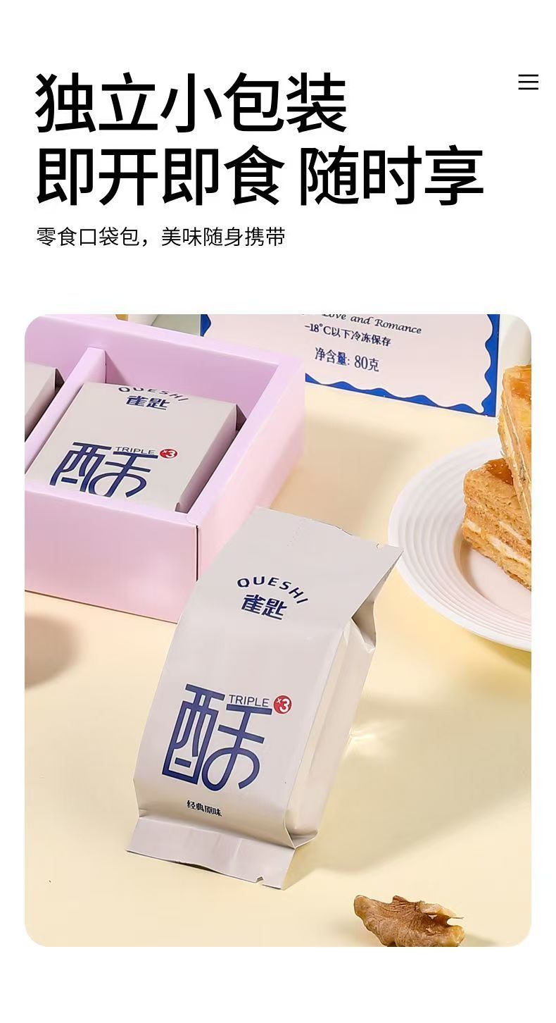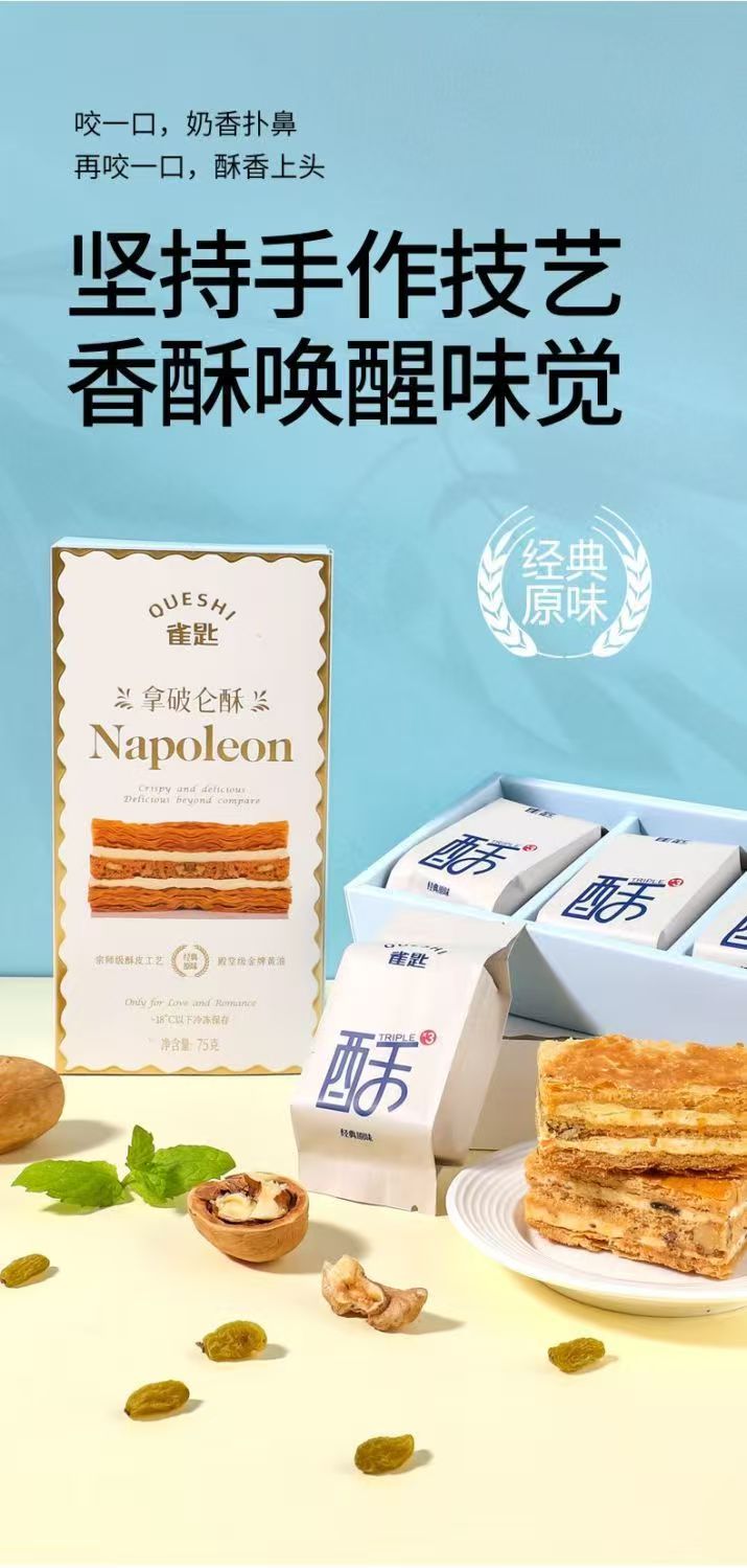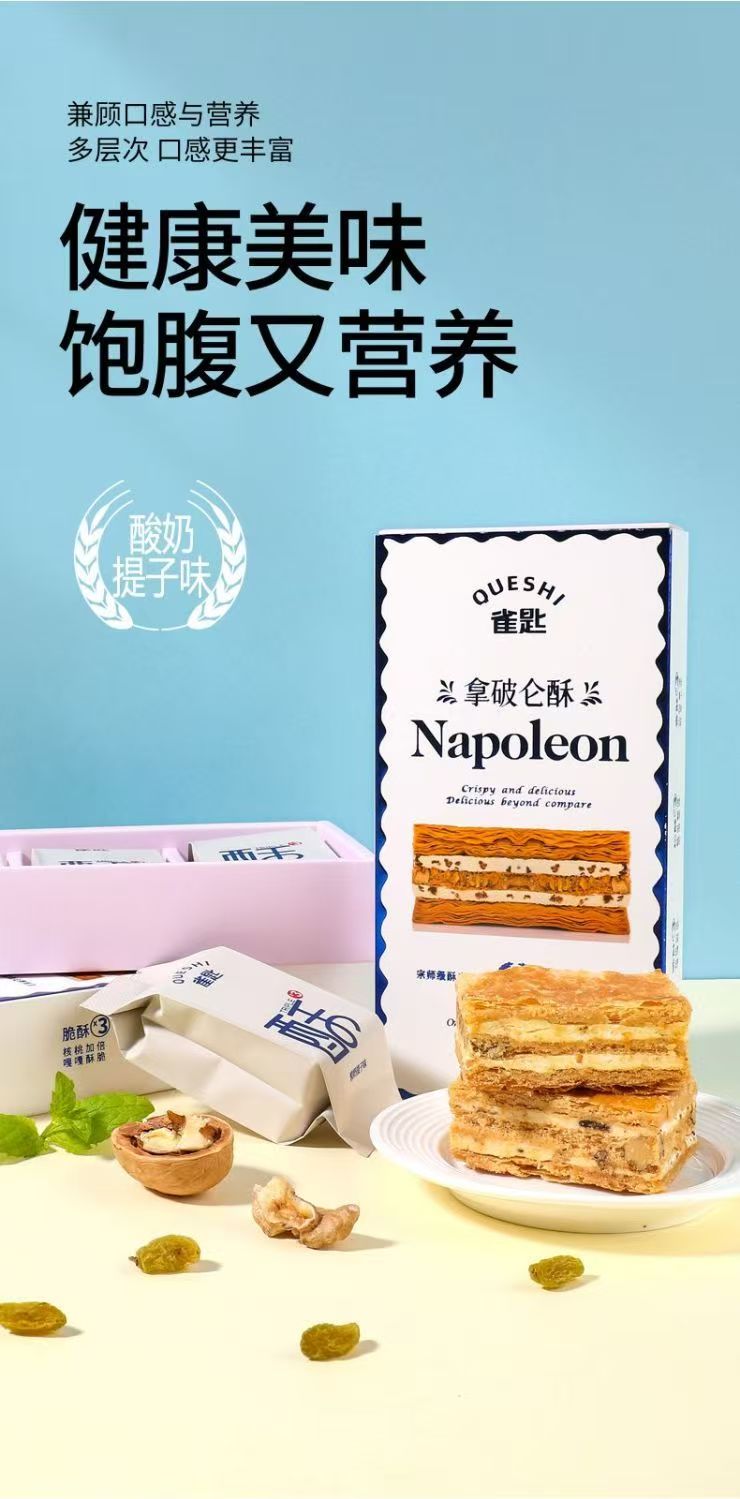 顺丰发货【奶香浓郁 焦香酥脆 0反式脂肪酸】雀匙拿破仑千层酥(原味&酸奶提子)2盒/6粒装