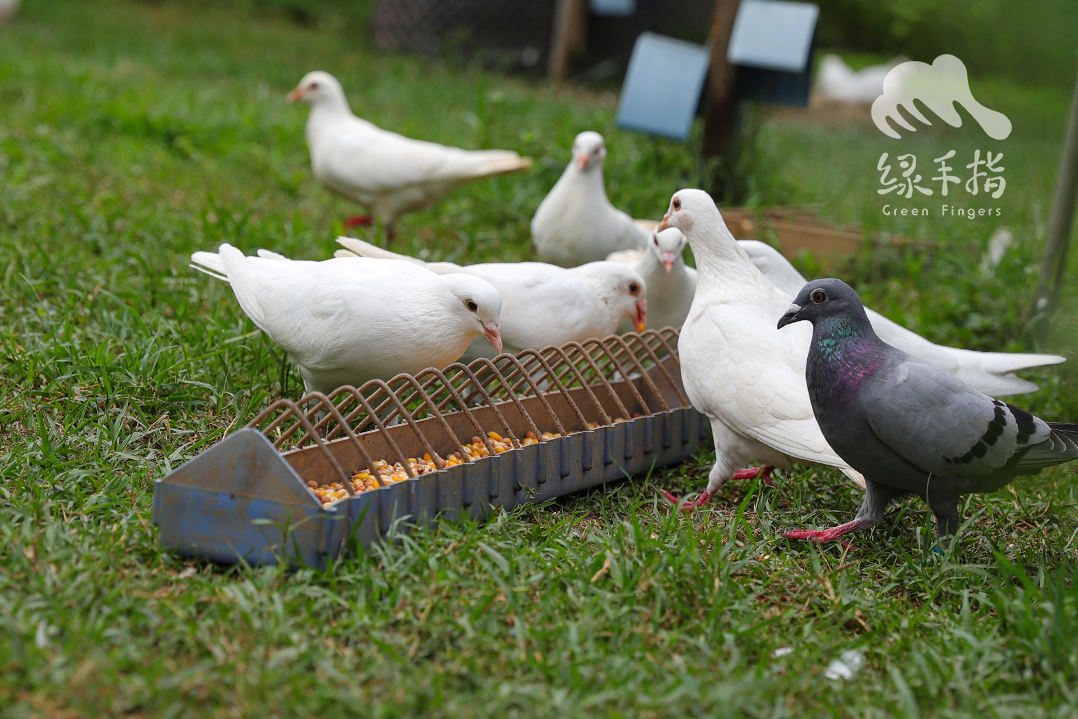 鸽子不像一般肉鸽完全笼养,我们为他们围起了一片区域让他们可以飞翔活动,捡食草籽砂石等。