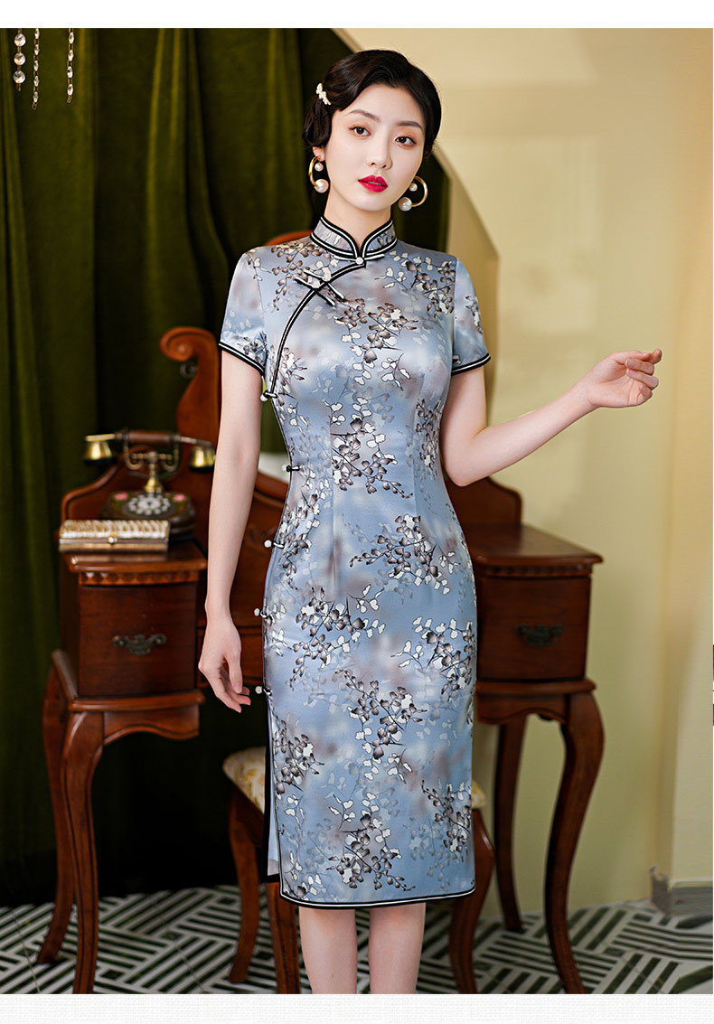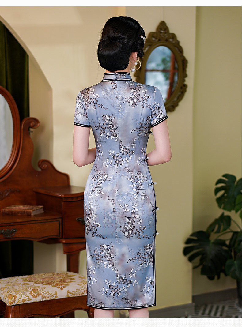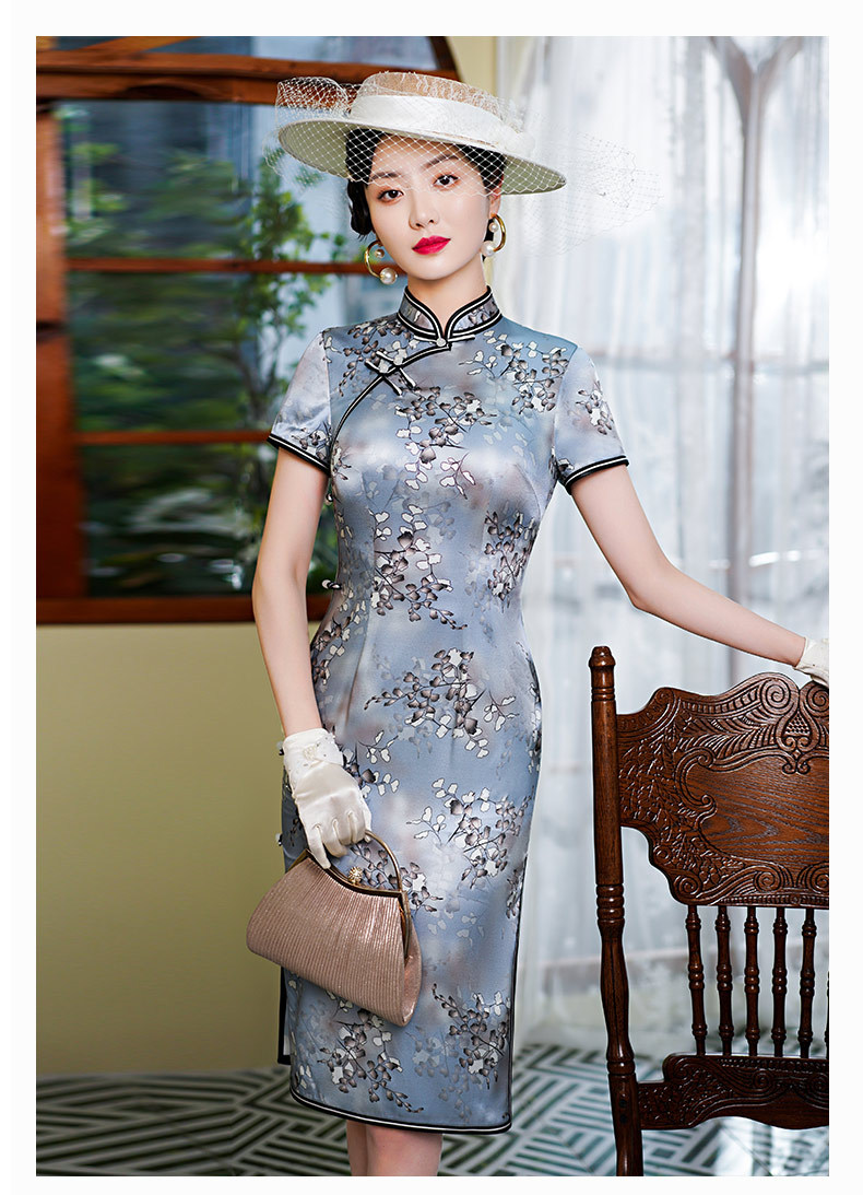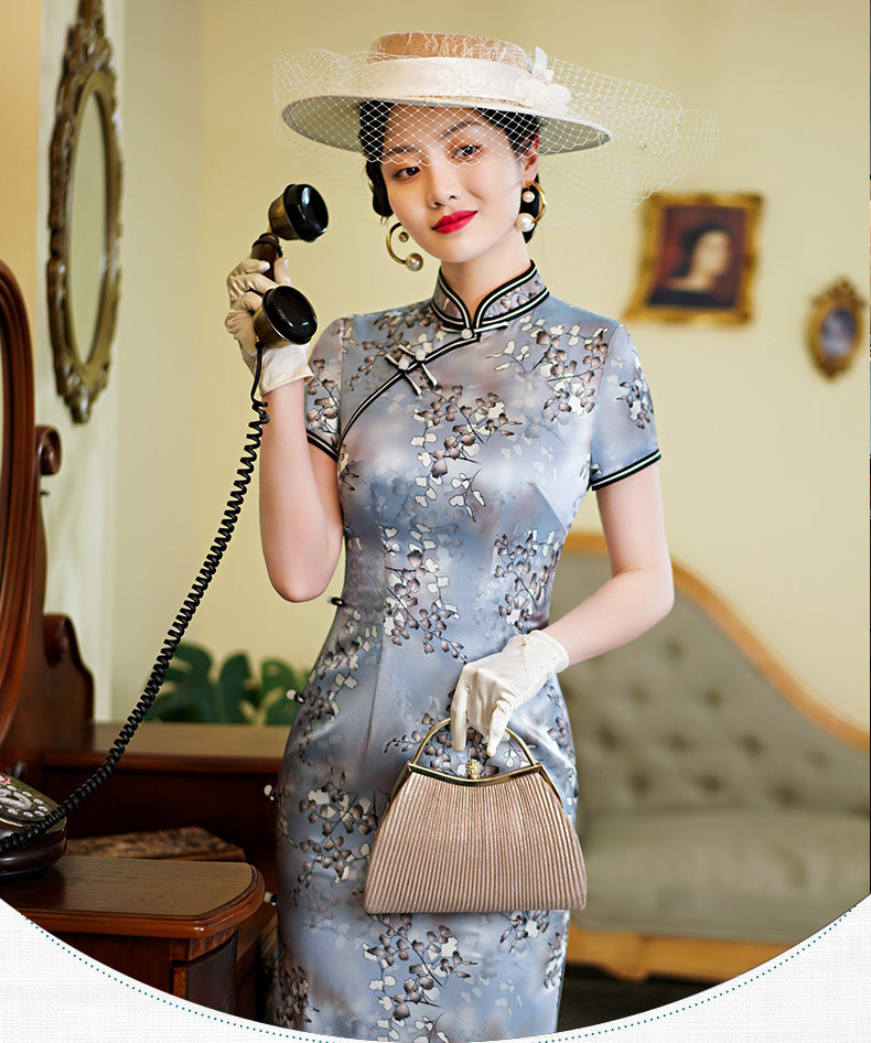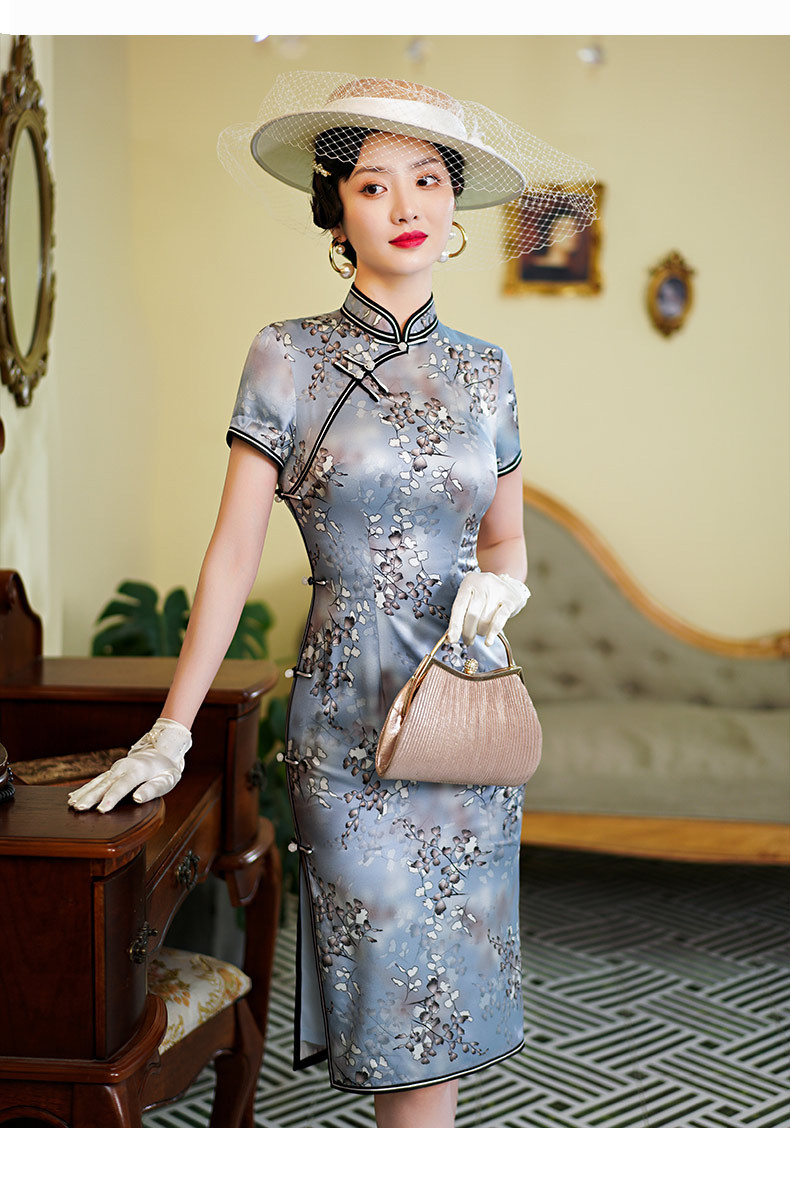 WX新款春夏真丝旗袍桑蚕丝复古夏季长款女改良日常连衣裙