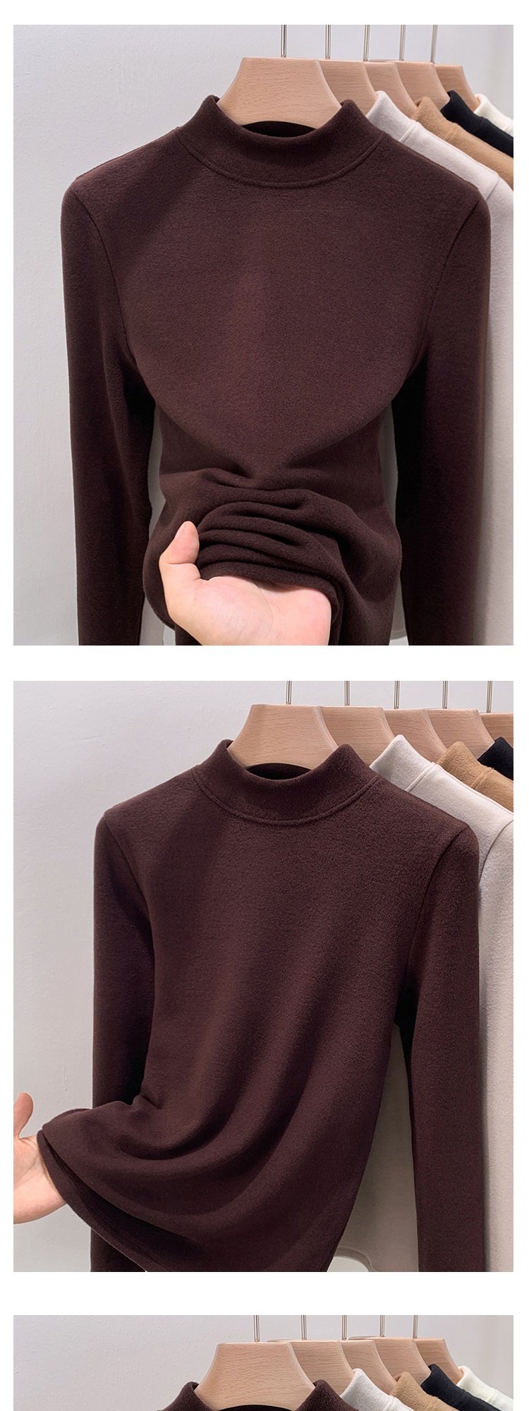 「自」全新升级【铂金会员137/天猫179/差价42】(02644)洛诗琳半高领双面绒打底衫2025冬季新款加绒保暖上衣