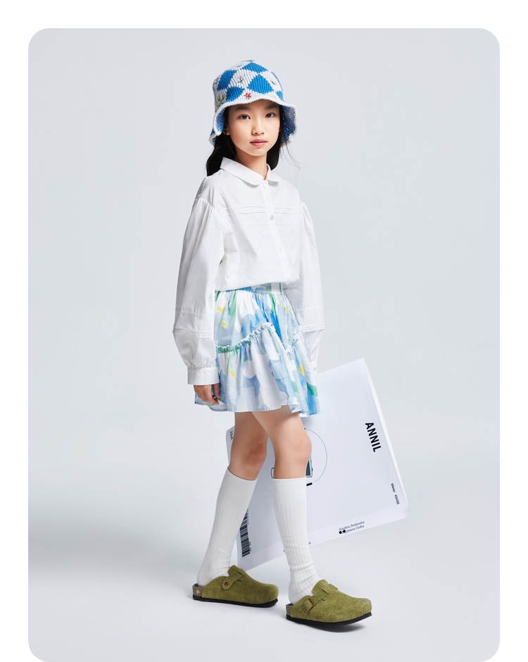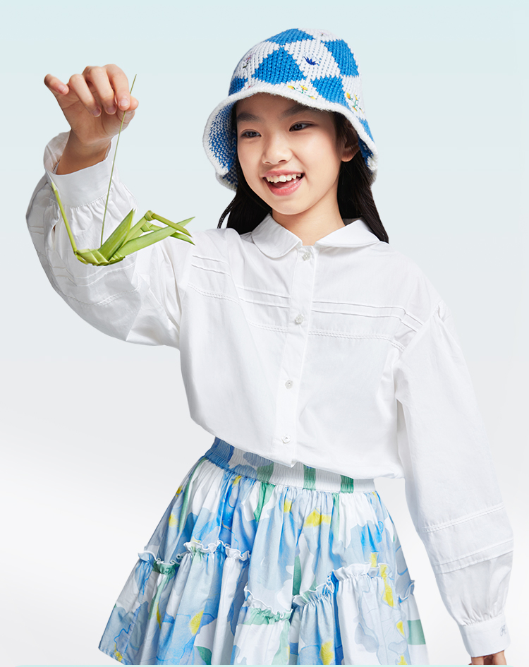女童翻领长袖衬衣春季新款安奈儿童装EG511009