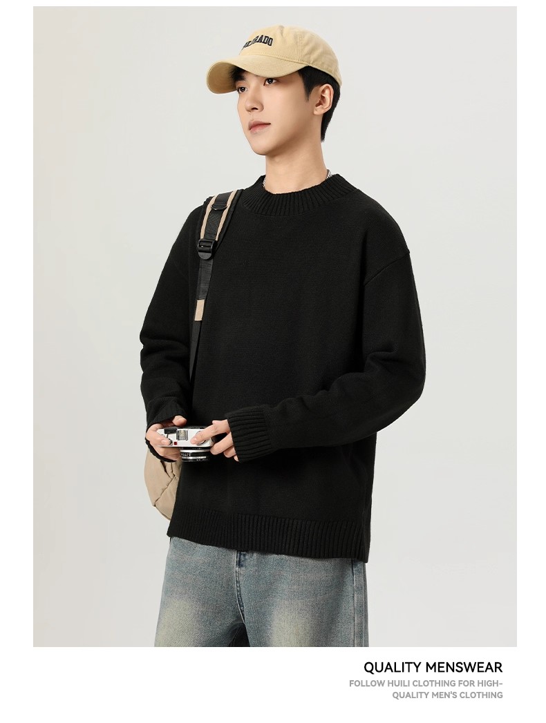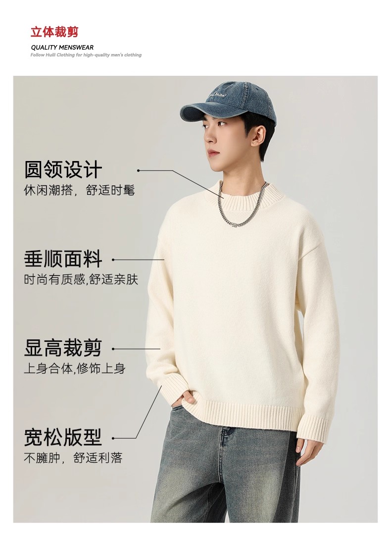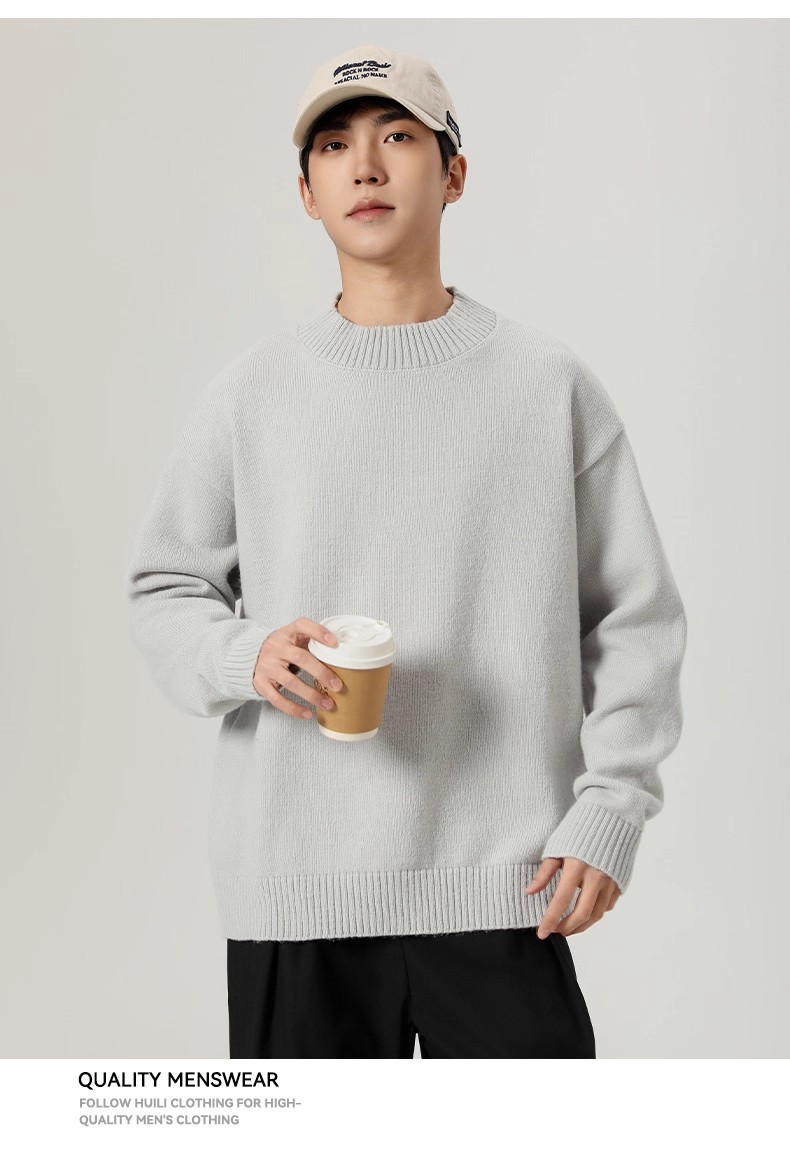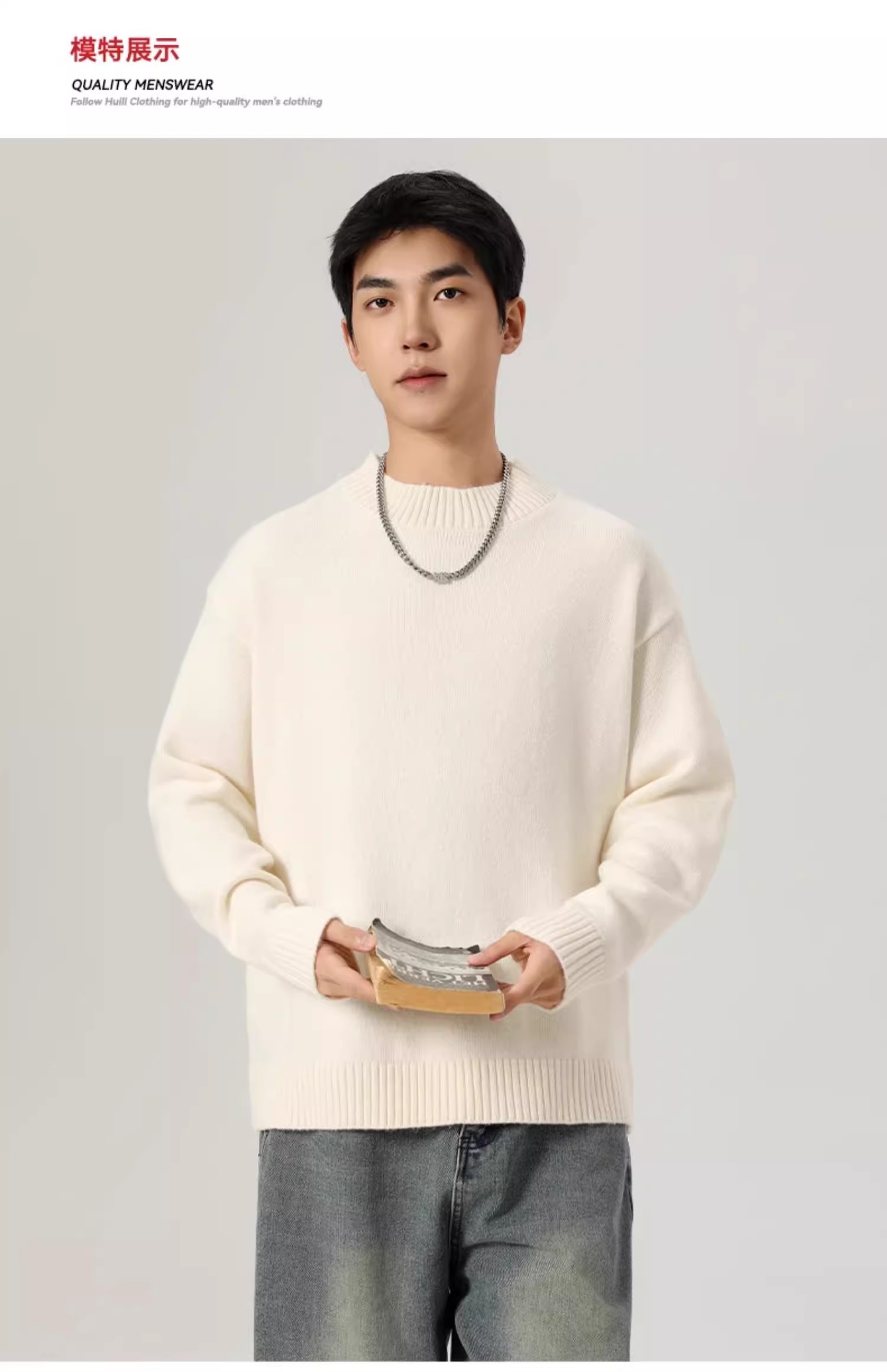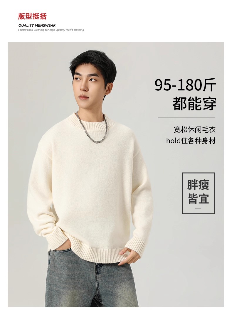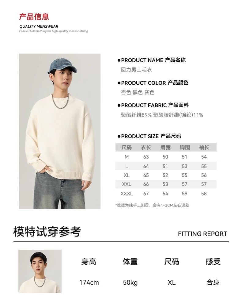 回力毛衣男款冬季2025新款圆领毛衣男士内搭保暖毛衫针织打底衫男