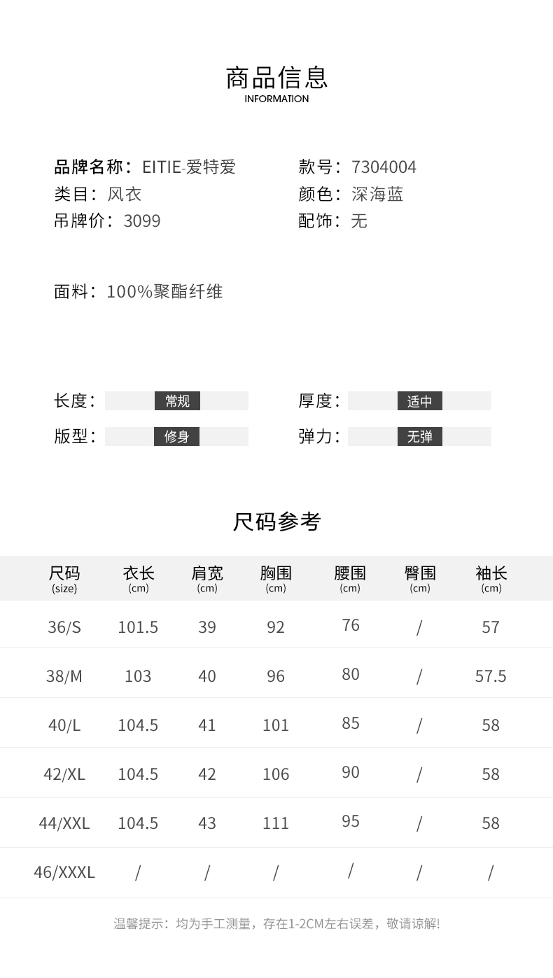 EITIE爱特爱春季新款显瘦修身百搭通勤风衣7304004