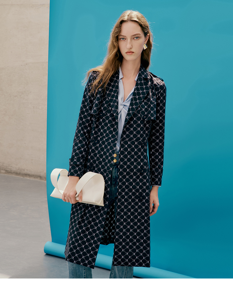 EITIE爱特爱女装秋季新款大气翻驳领挺括双排扣优雅风衣外套D1904335