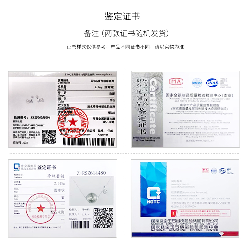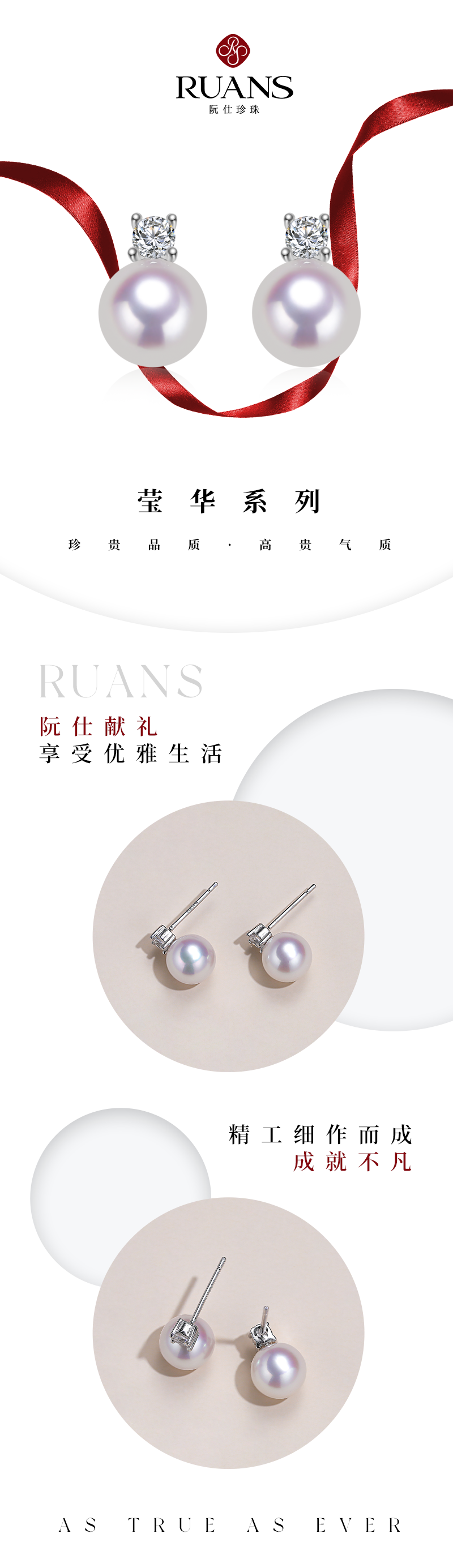 阮仕珍珠 莹华系列S925银淡水珍珠耳饰 7.5-8mm 正圆 极微瑕 极强光
