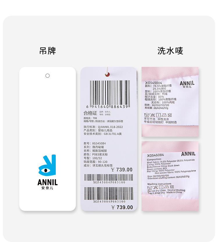 【实体店同款】女童短款羽绒服冬季新款安奈儿童装XG545084