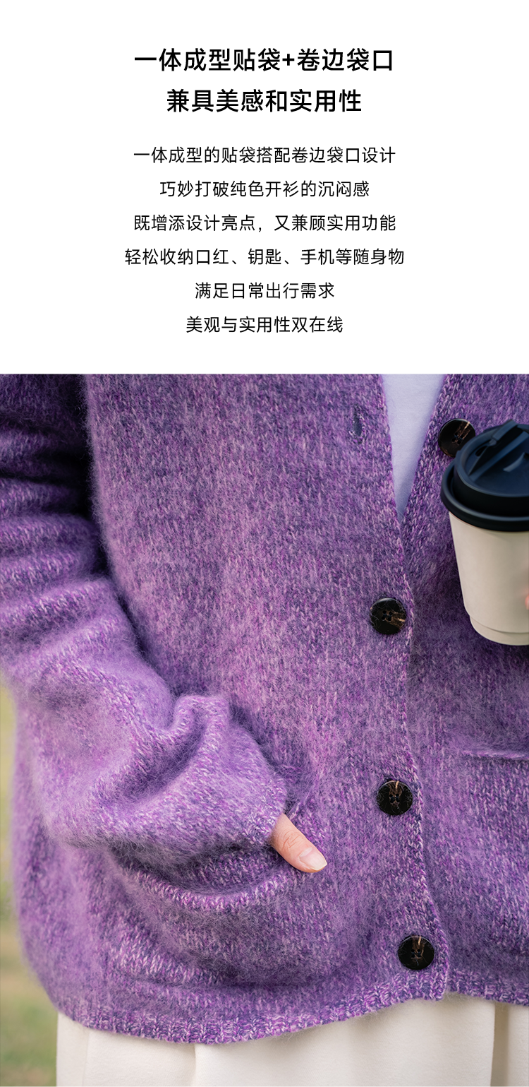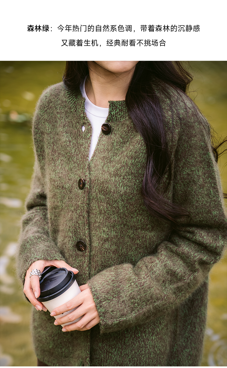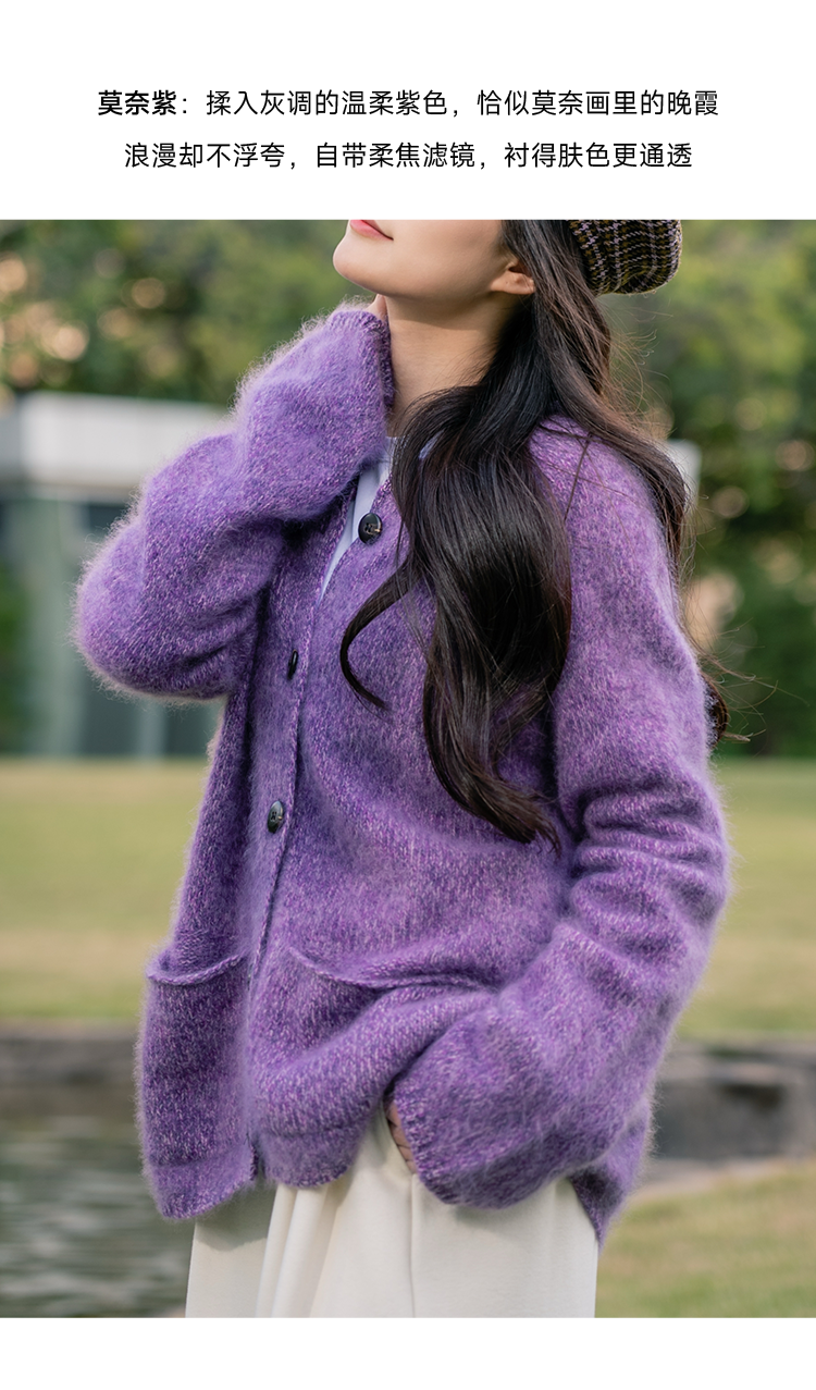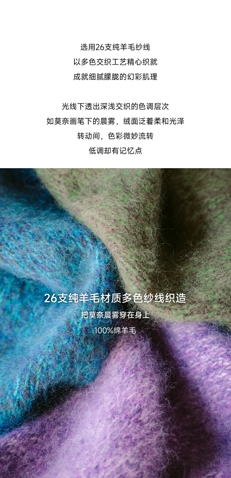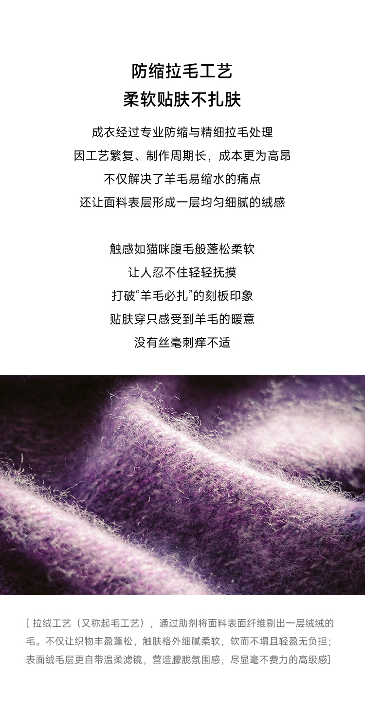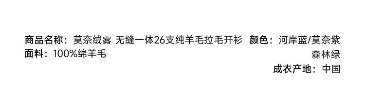 莫奈绒雾 无缝一体26支纯羊毛拉毛开衫FCF3WSC138