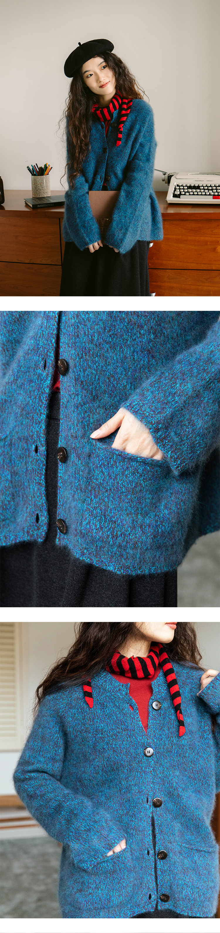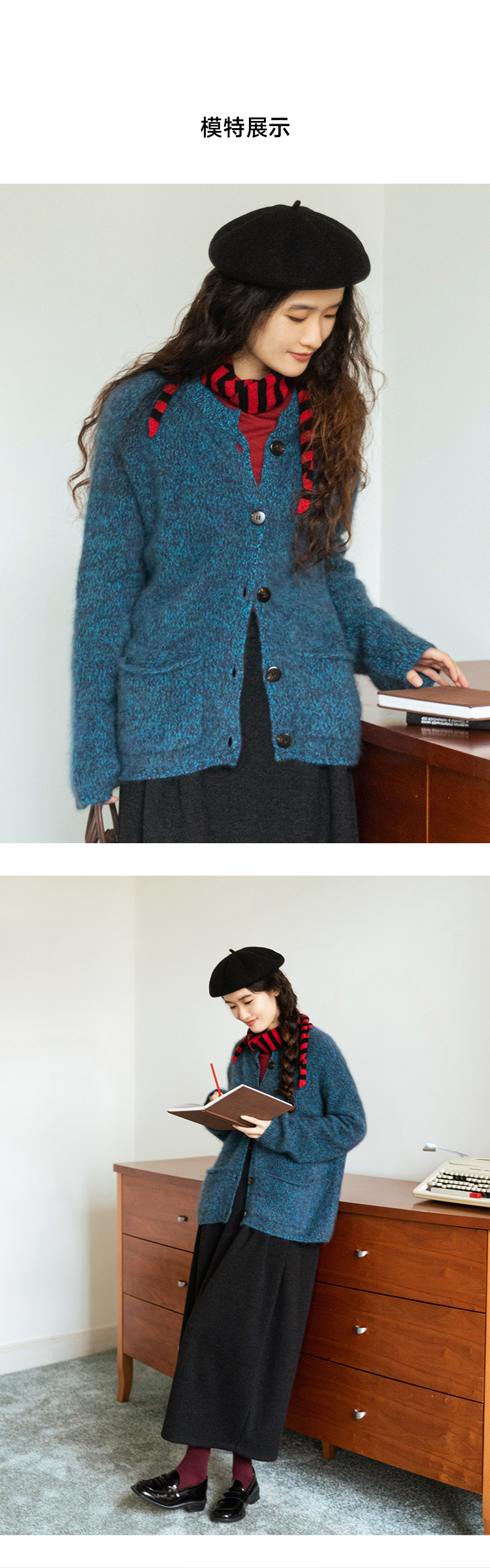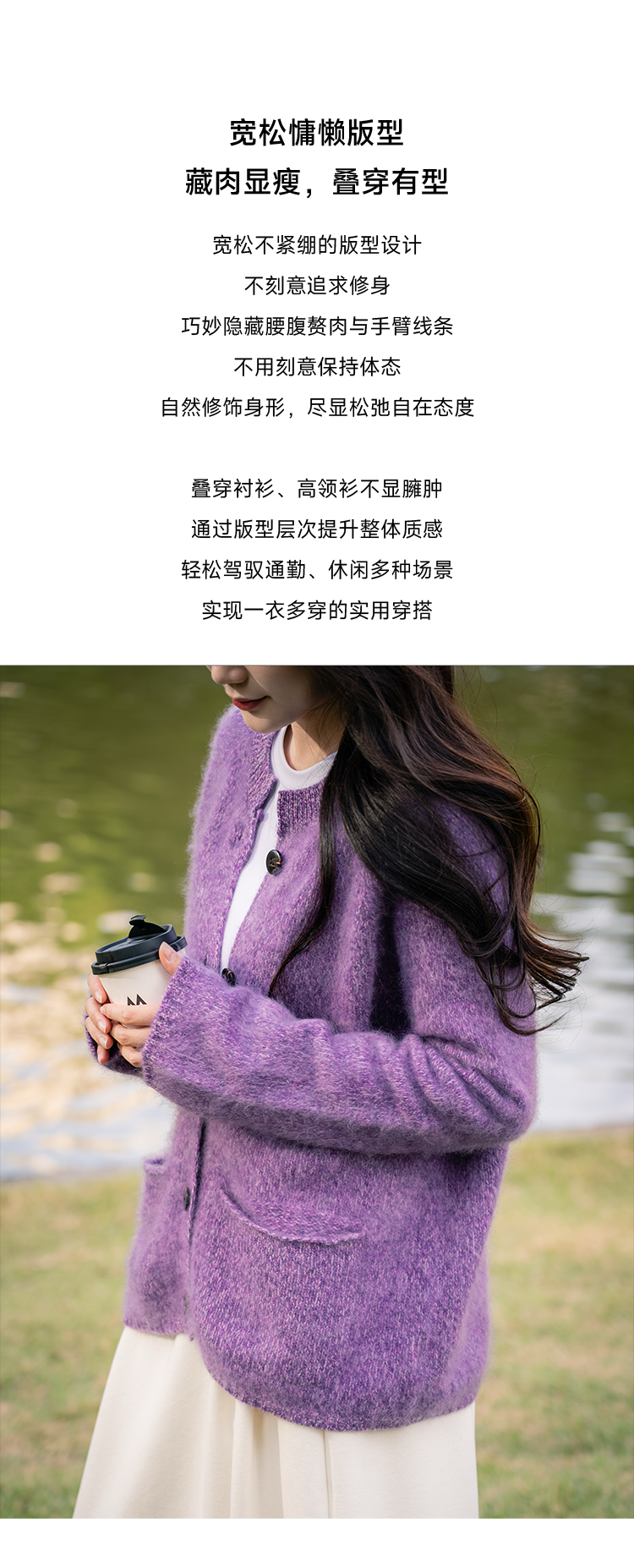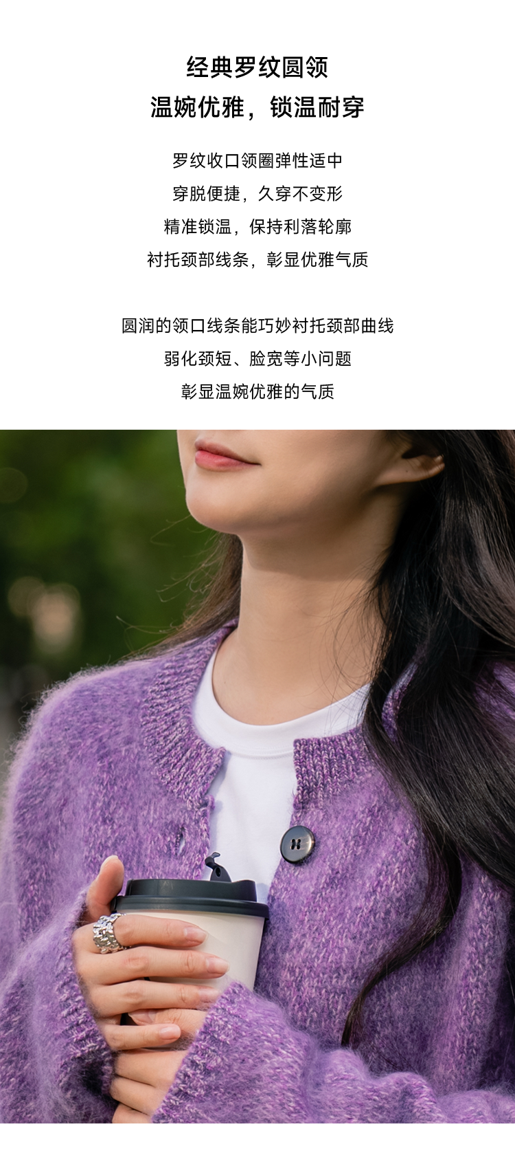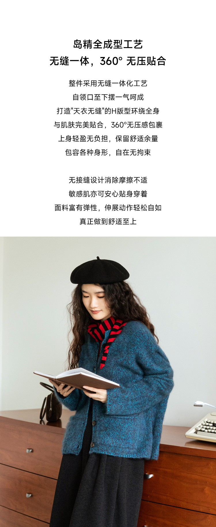 莫奈绒雾 无缝一体26支纯羊毛拉毛开衫FCF3WSC138