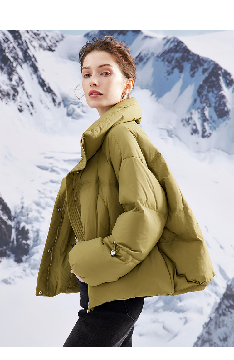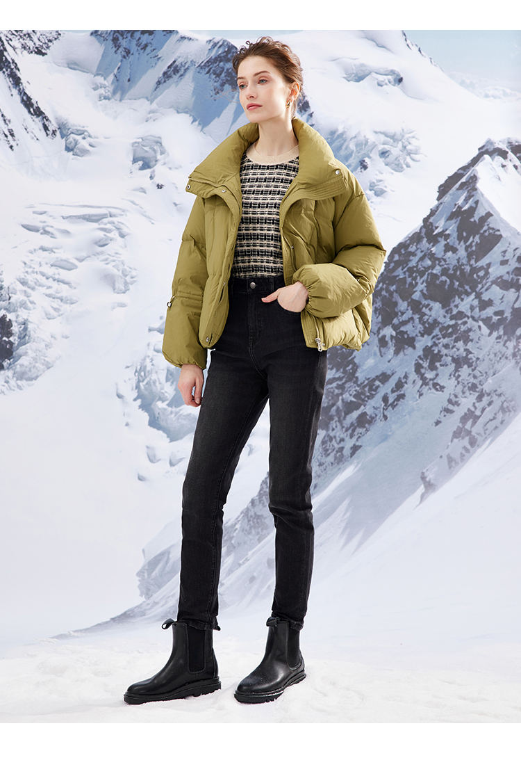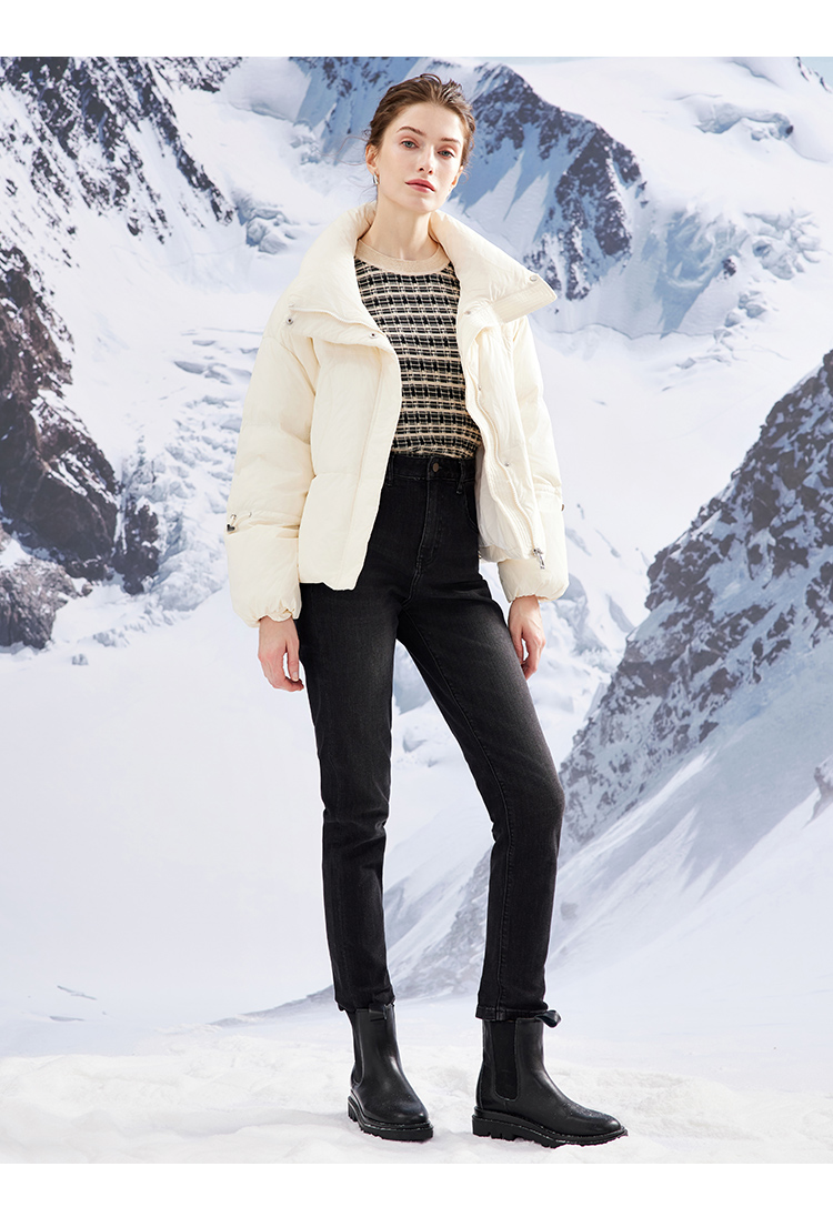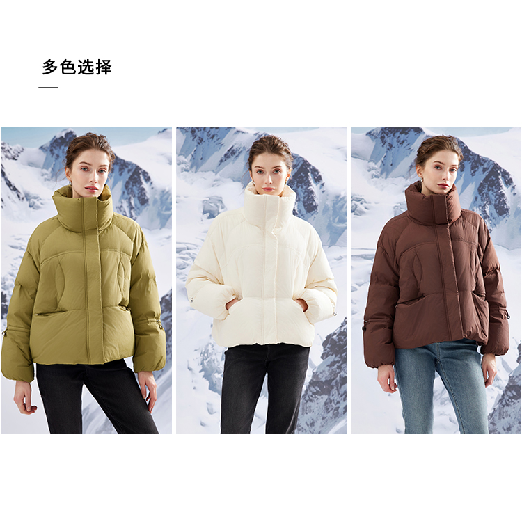 VIMAGE纬漫纪VIMAGE纬漫纪加厚保暖立领简约茧型显瘦 中长款百搭羽绒服冬新款VD2311203