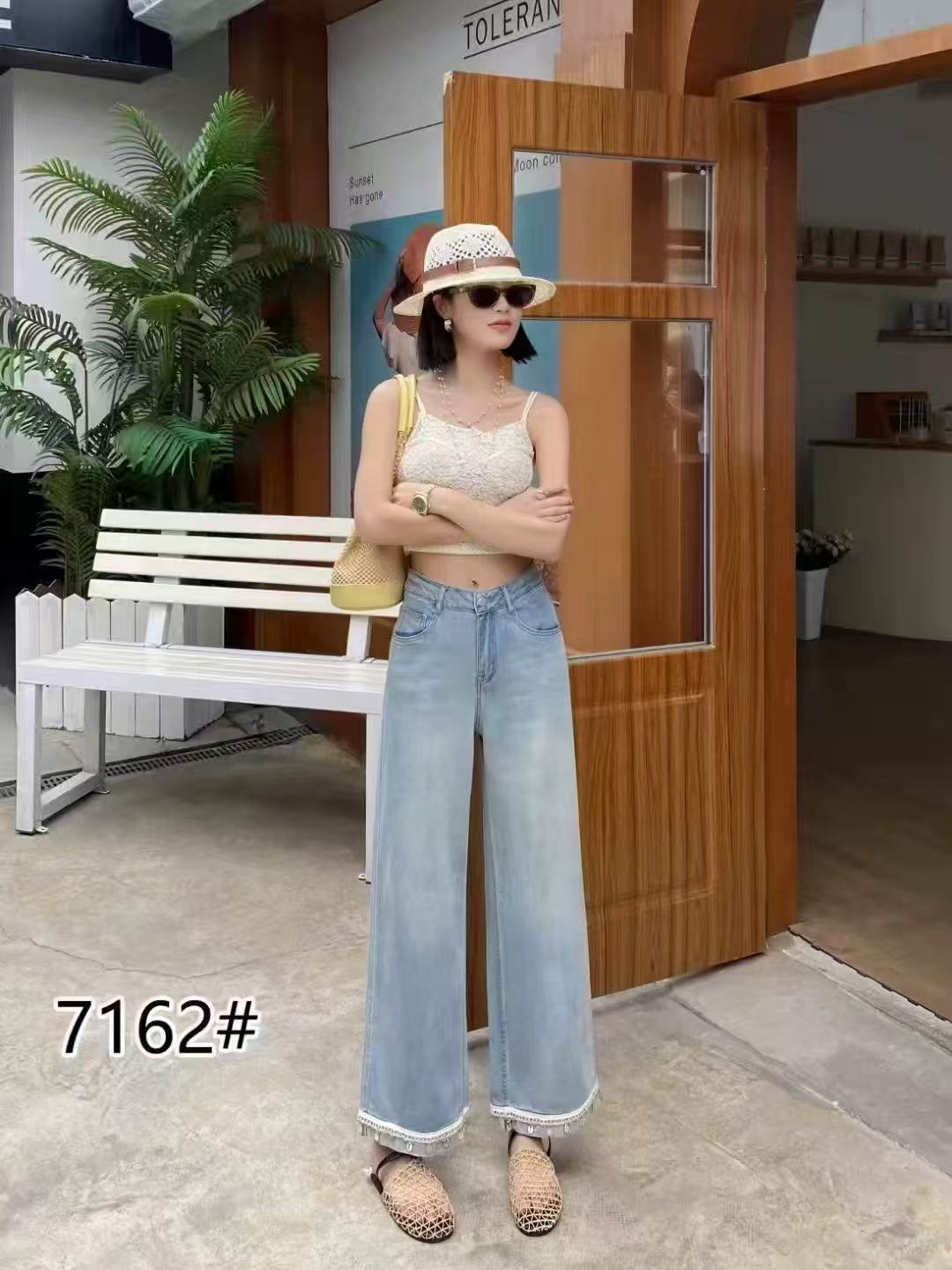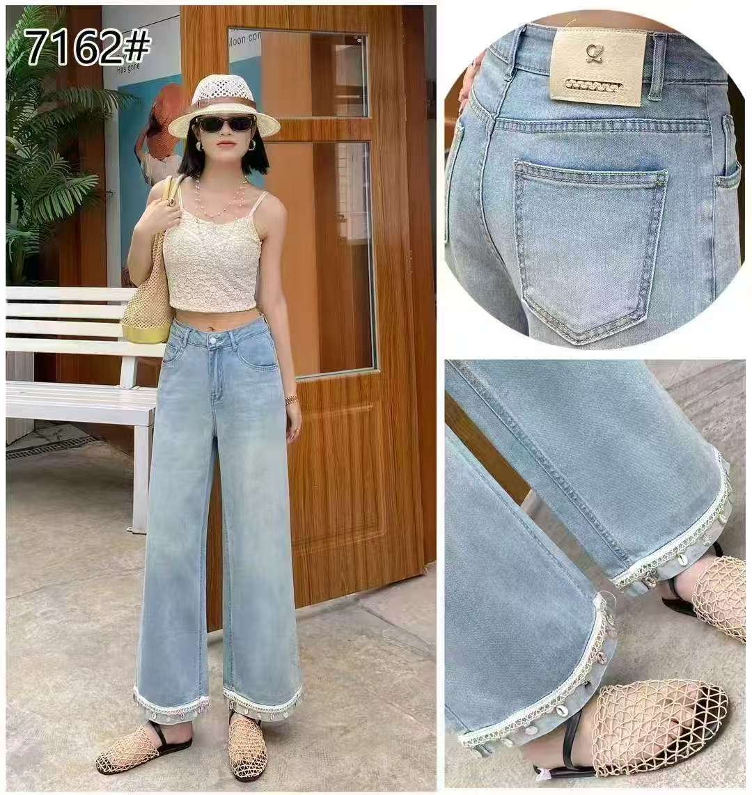{牛仔裤2025}7162复古吊坠工艺直筒牛仔裤-喜出