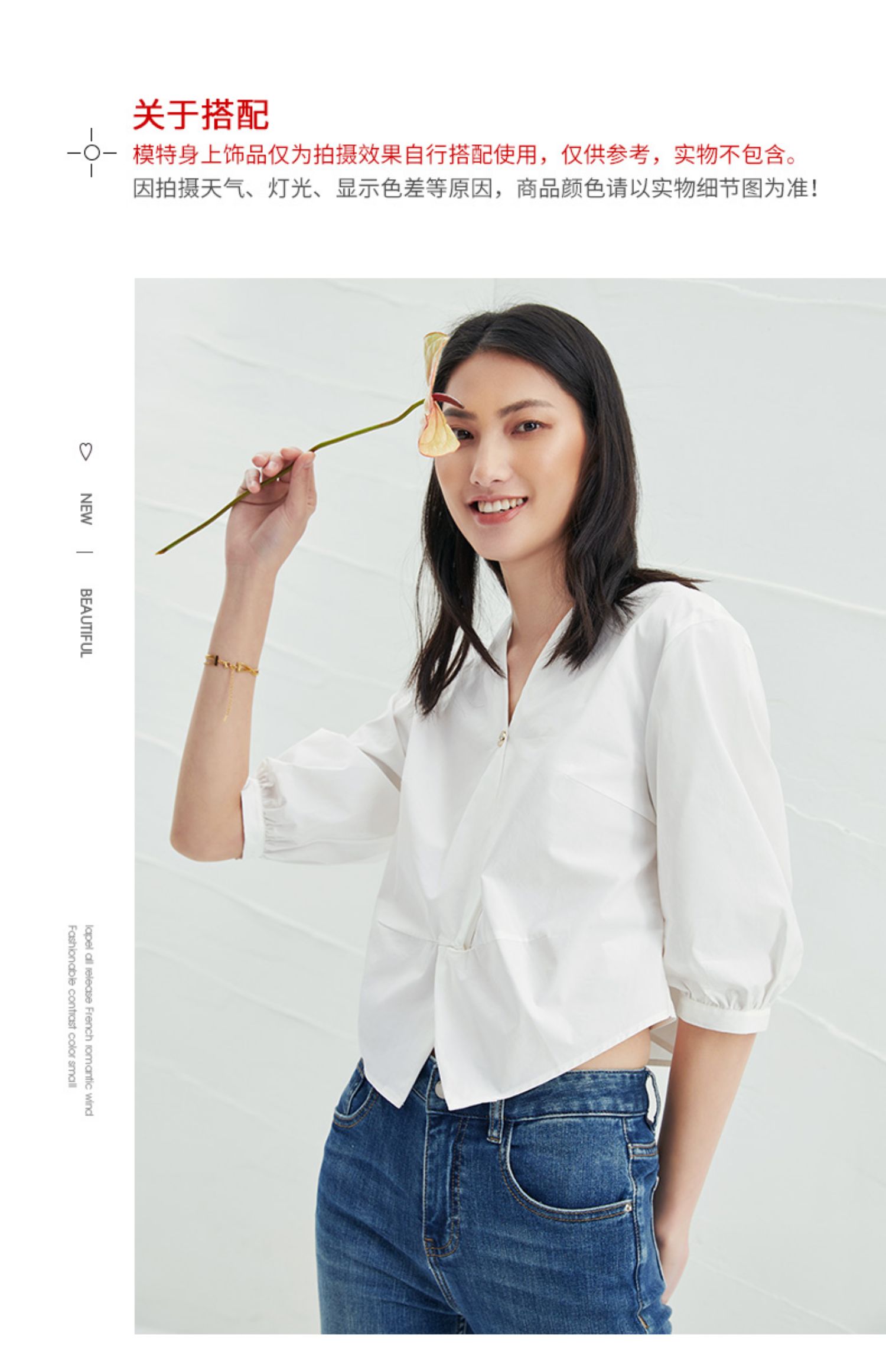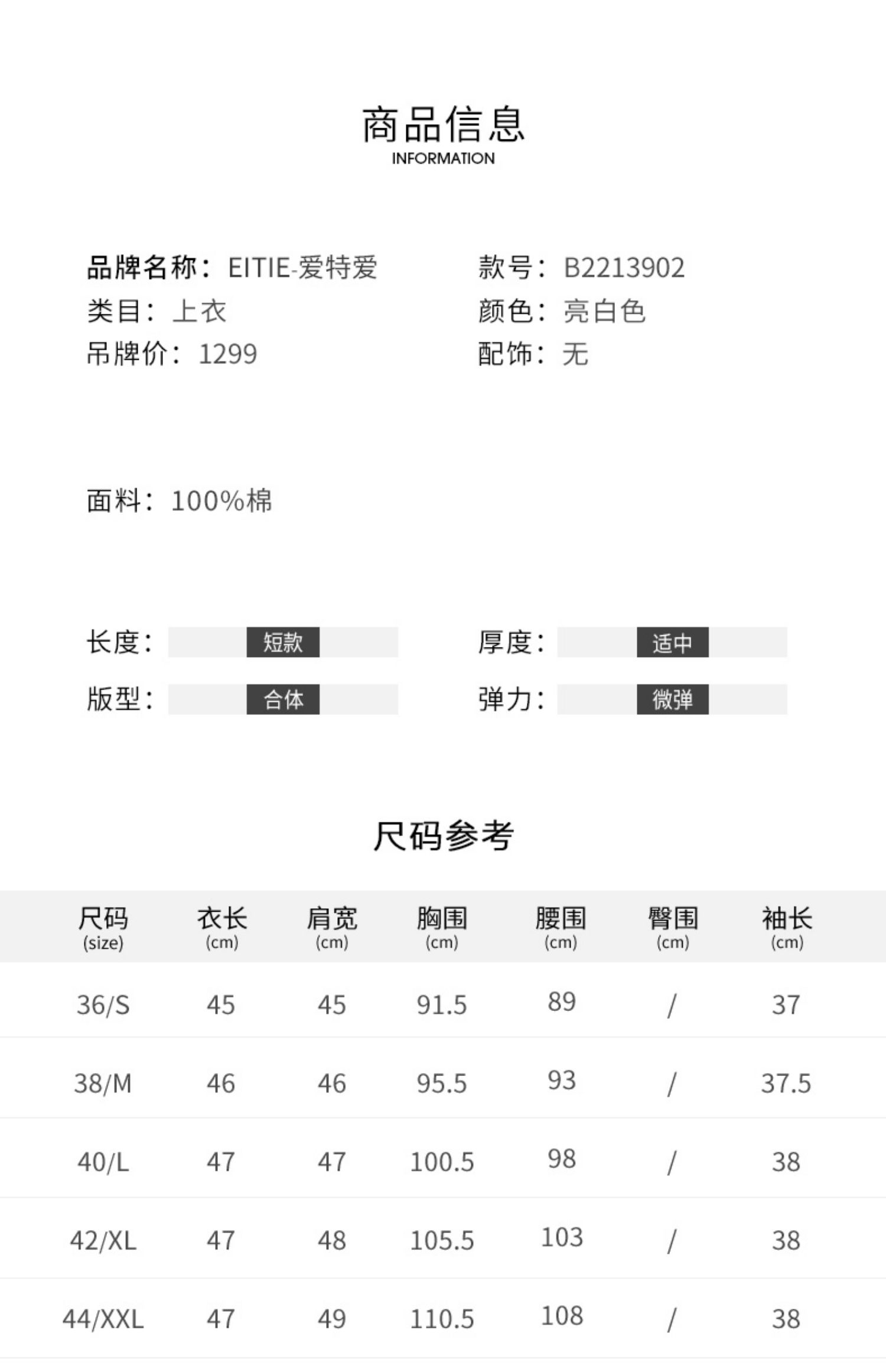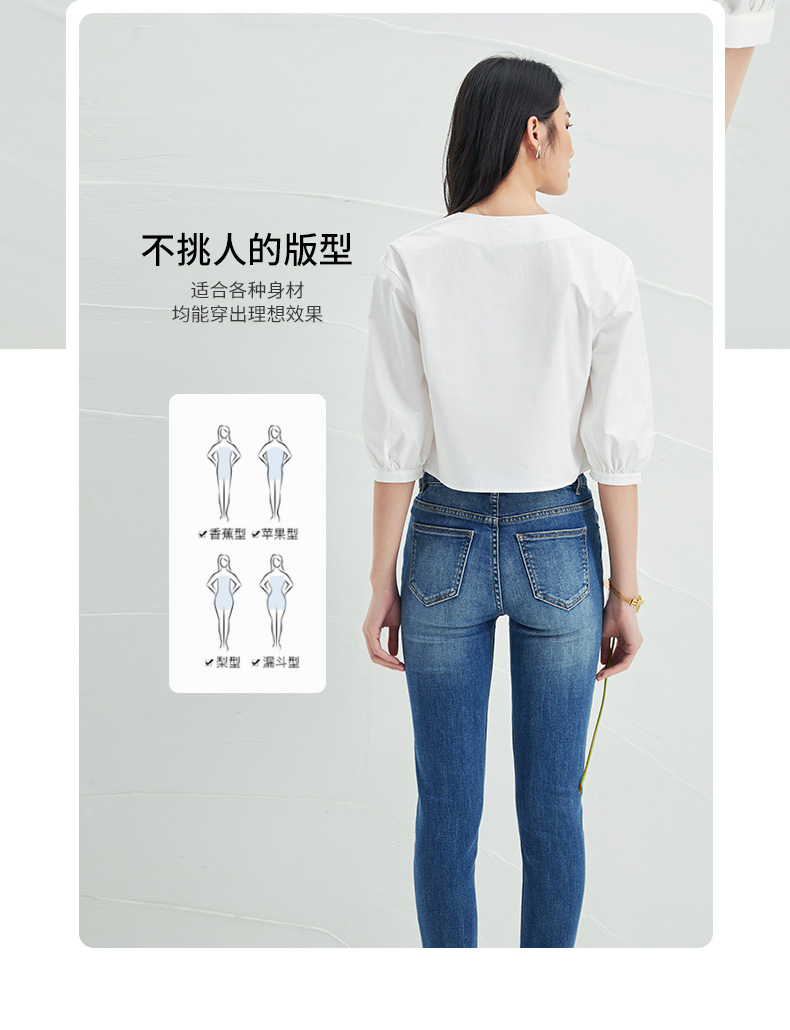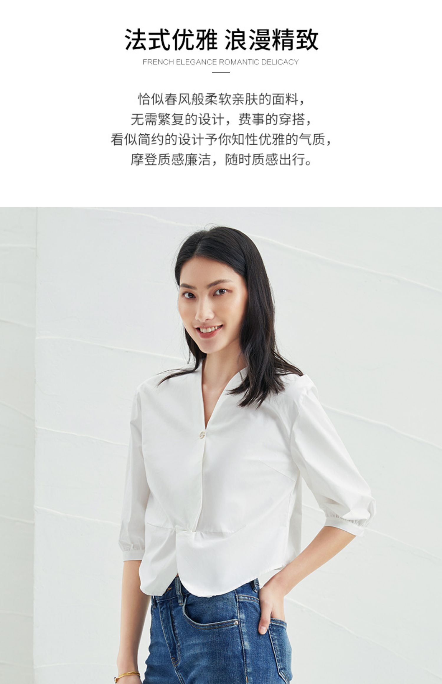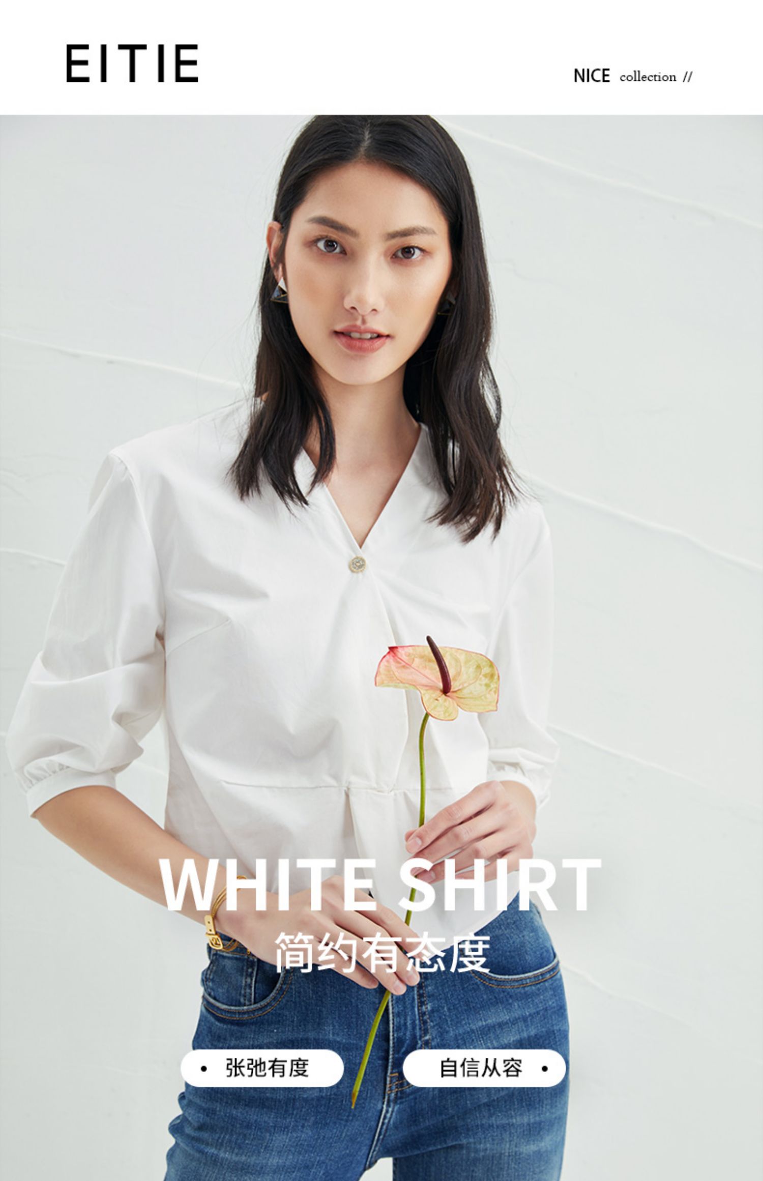 EITIE爱特爱夏季新款通勤显瘦百搭衬衫纯棉白色v领宽松短上衣B2213902