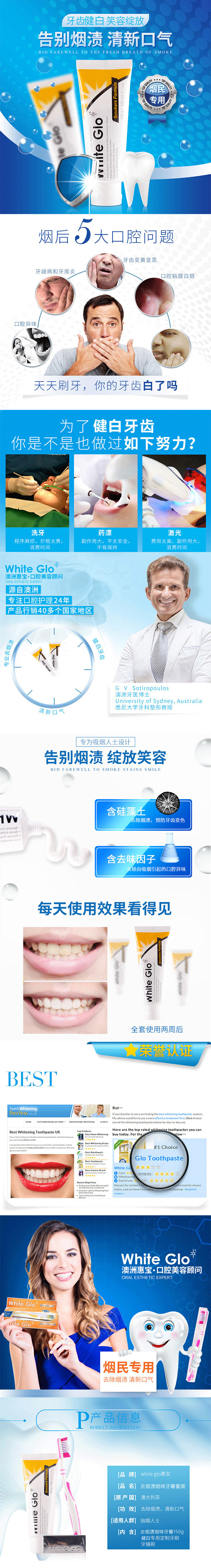 澳洲原装进口WhiteGlo惠宝去烟渍烟味牙膏套装专为吸烟人士设计