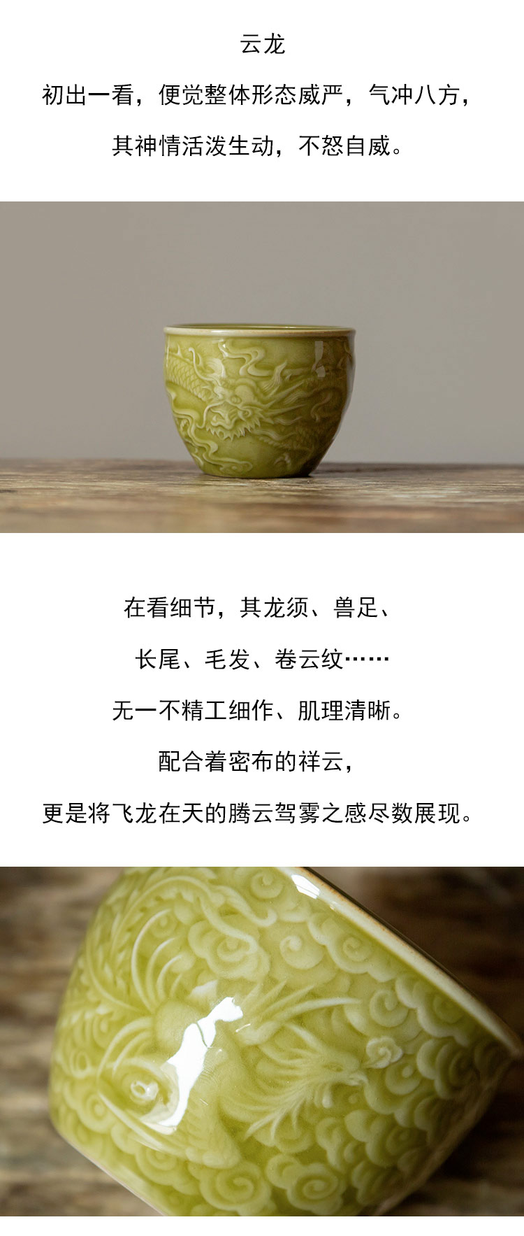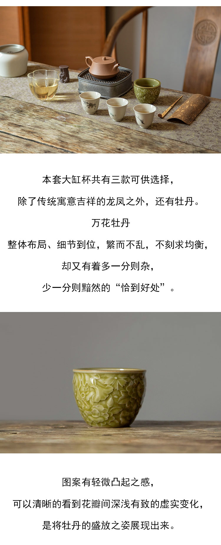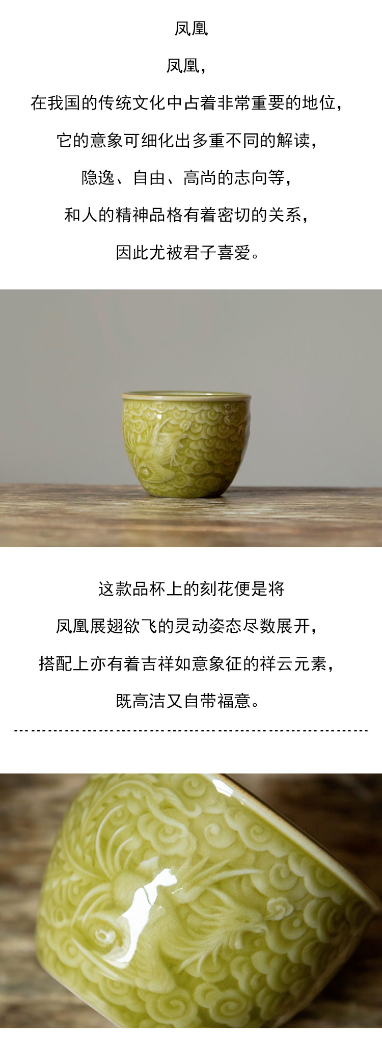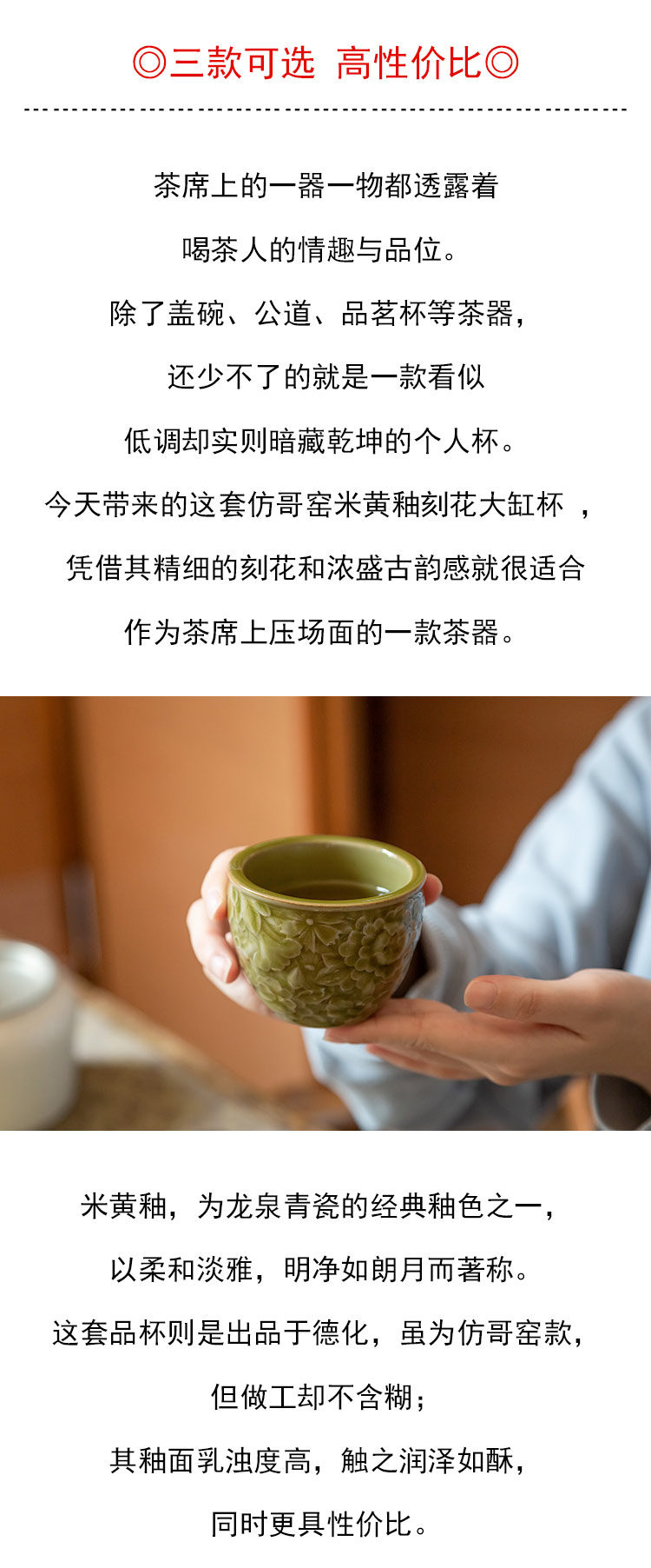 茶香记 仿哥窑米黄釉刻花大缸杯120ml高性价比品杯茶杯功夫茶具