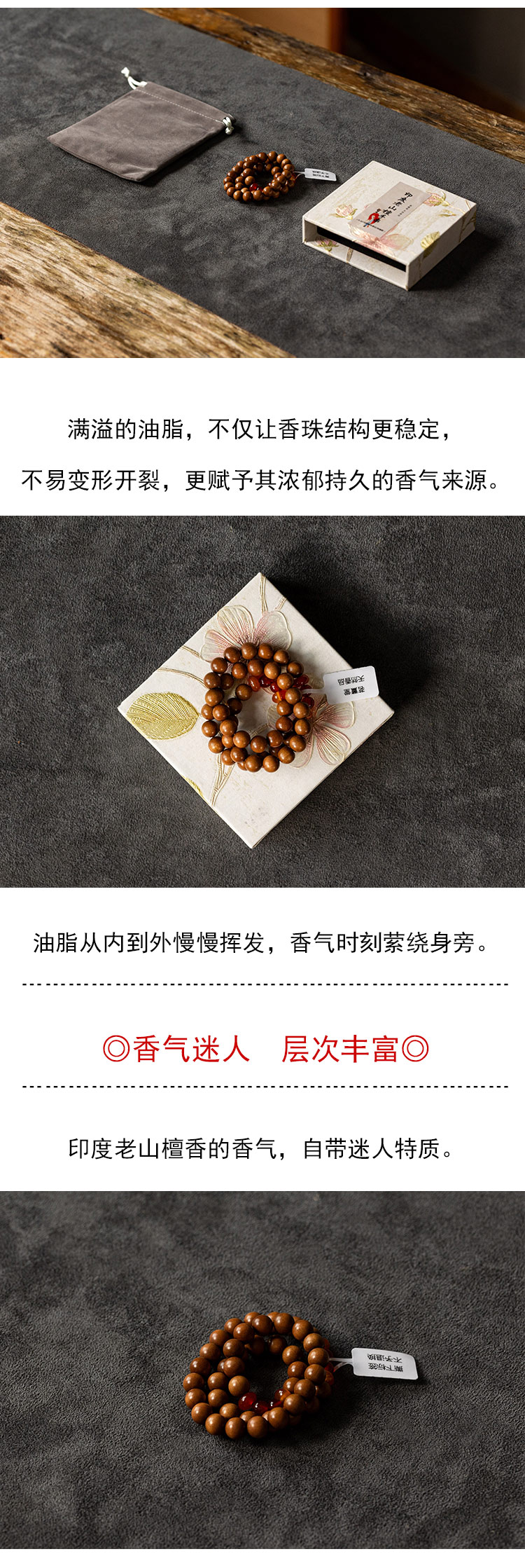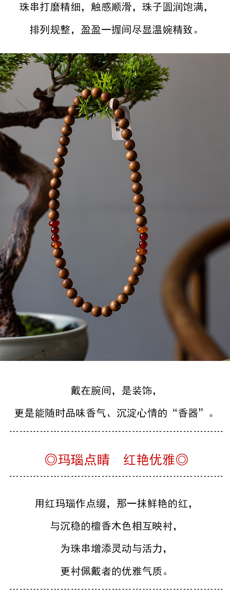 茶香记茗薰堂印度老山檀香珠串 0.8cm女款配玛瑙款手串饰品手链