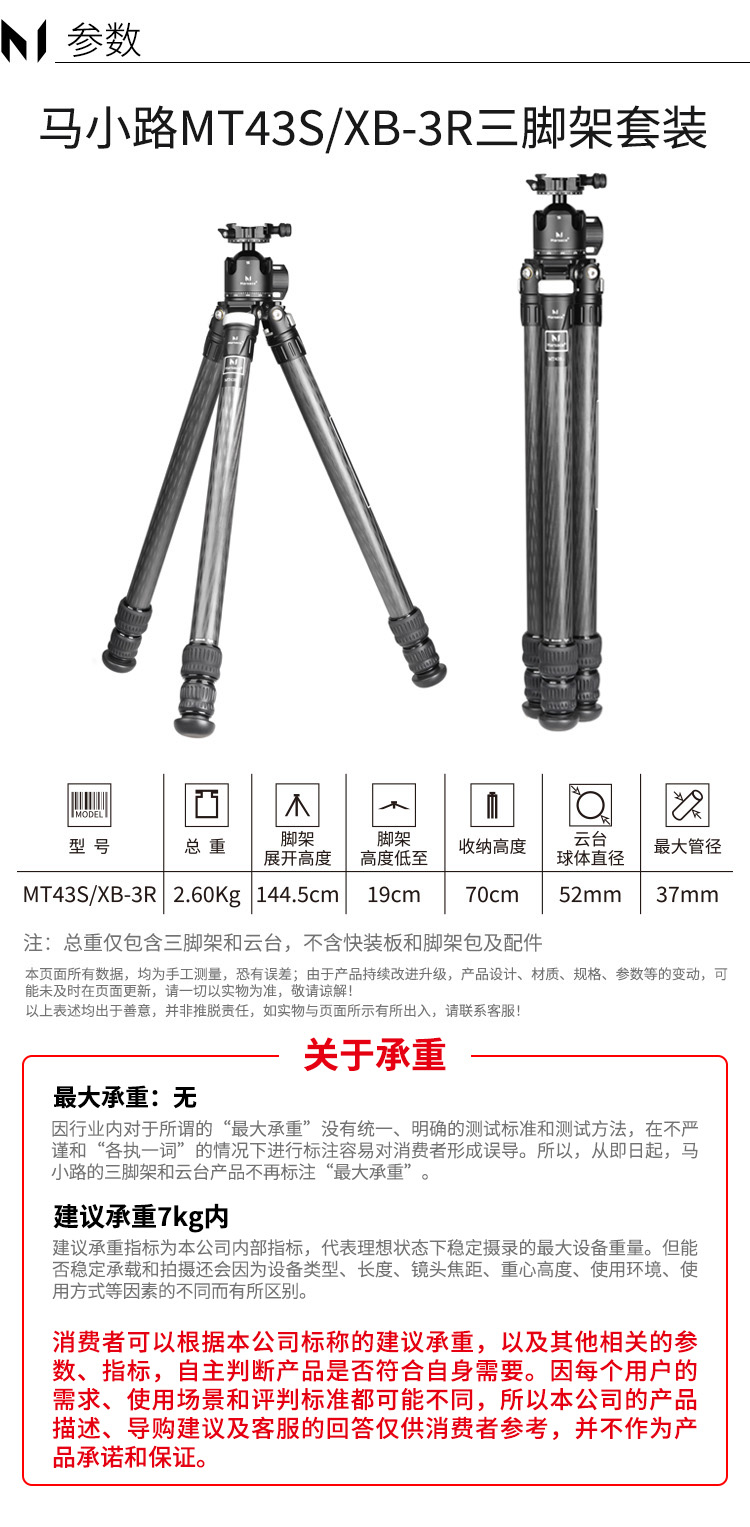 马小路Marsace MT43S XB-3R 无中轴三脚架云台套装